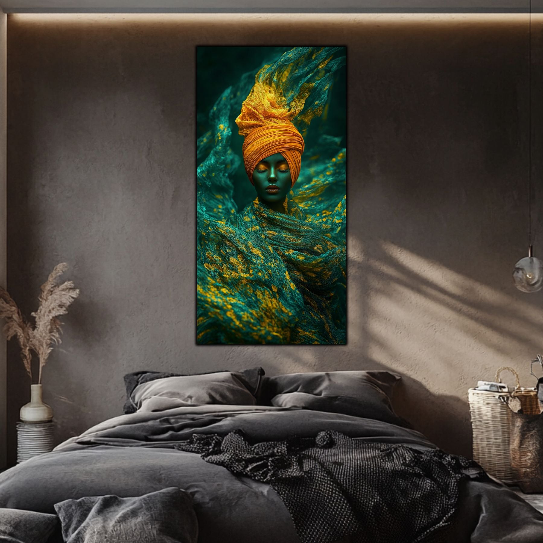 "Aura Abisului – Visul de Aur" este un tablou pe sticlă creat pentru a aduce o notă de rafinament și calm în: