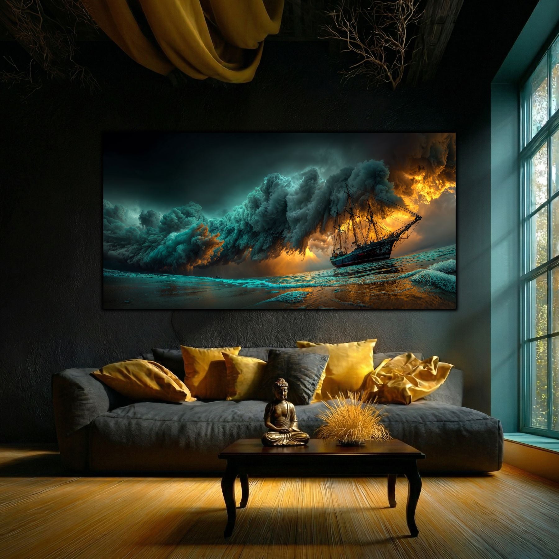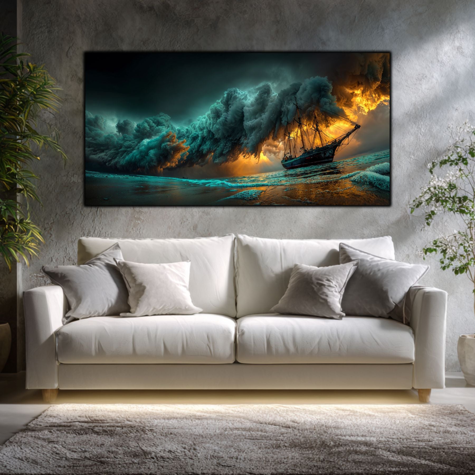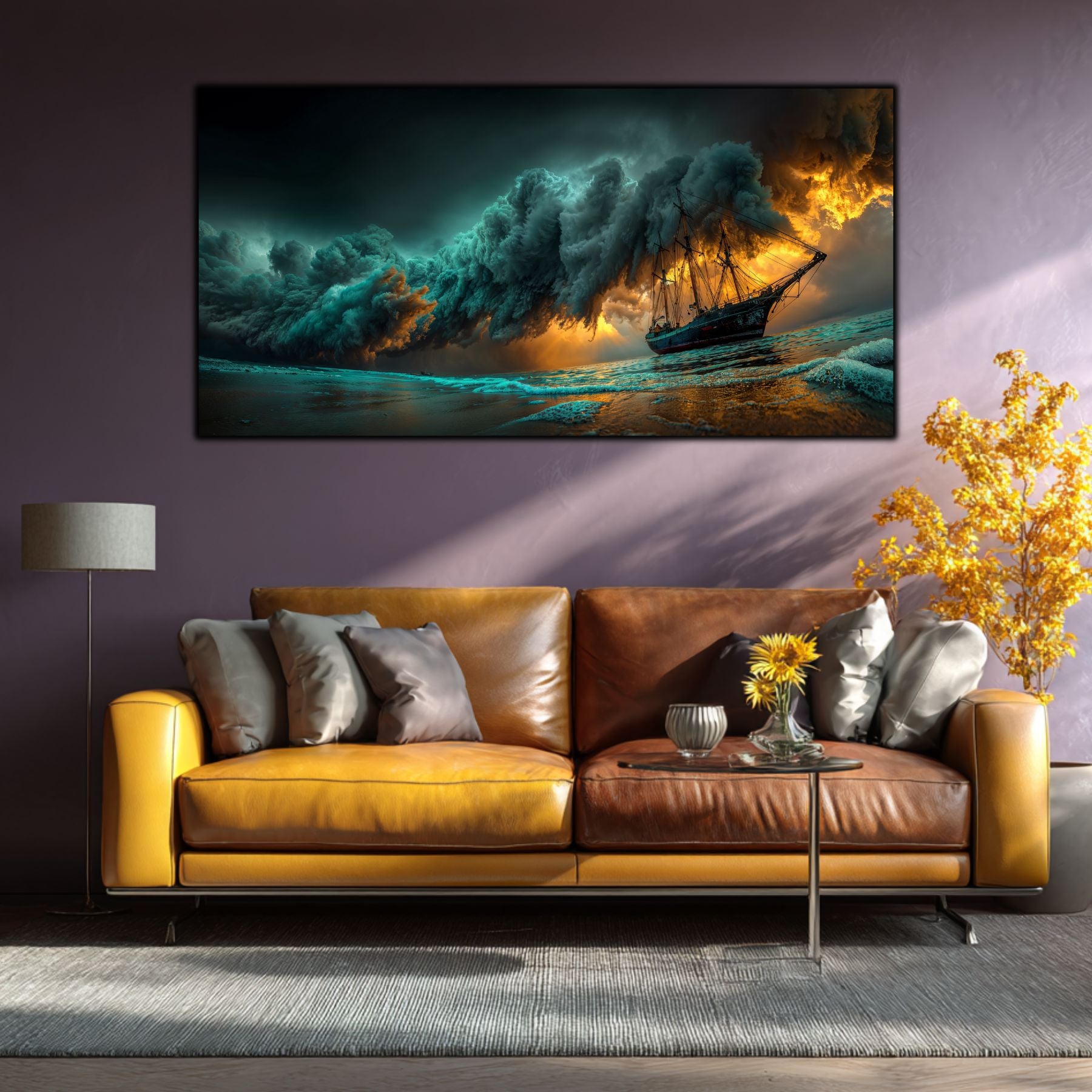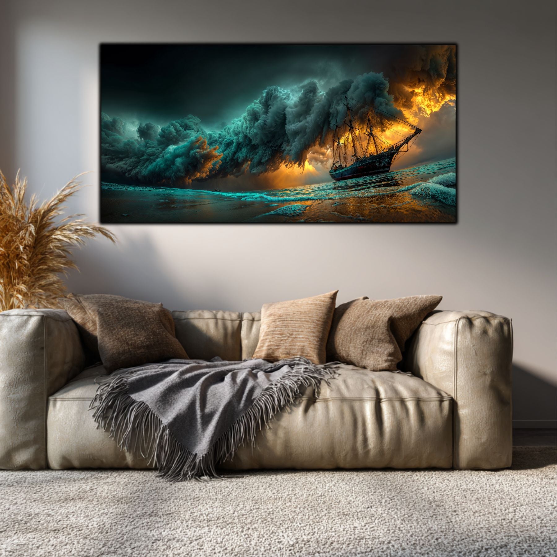 Durabilitate Extremă: Sticla securizată este rezistentă la șocuri, zgârieturi și umiditate. Spre deosebire de tablourile pe pânză, acesta nu se decolorează sub acțiunea razelor UV, păstrând "furtuna" intactă pentru totdeauna.