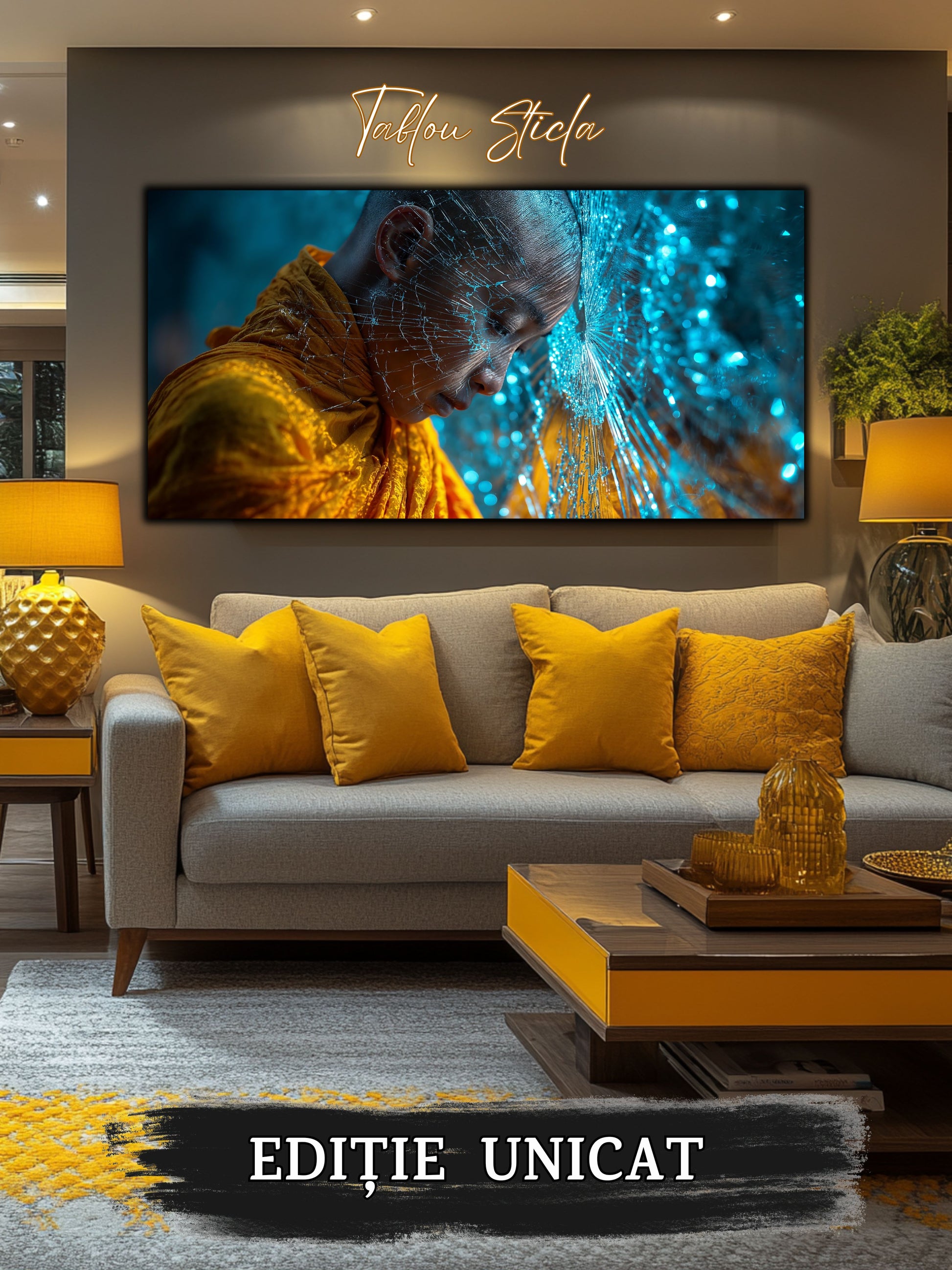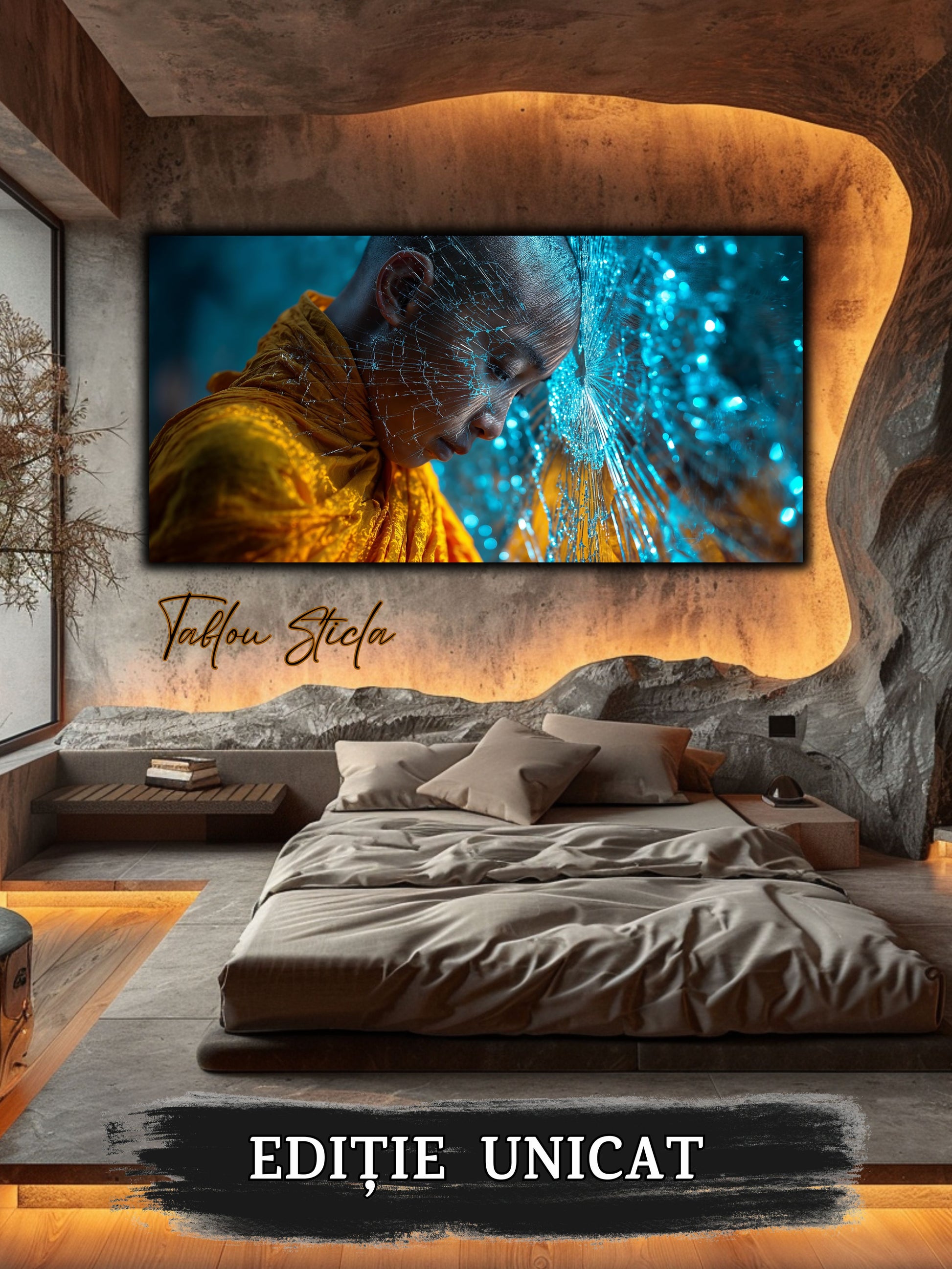 Tablou unicat imprimat pe sticlă securizată, cu efect vizual de sticlă crăpată artistic. Design modern, stil zen, perfect pentru spații contemporane. Livrare gratuită.