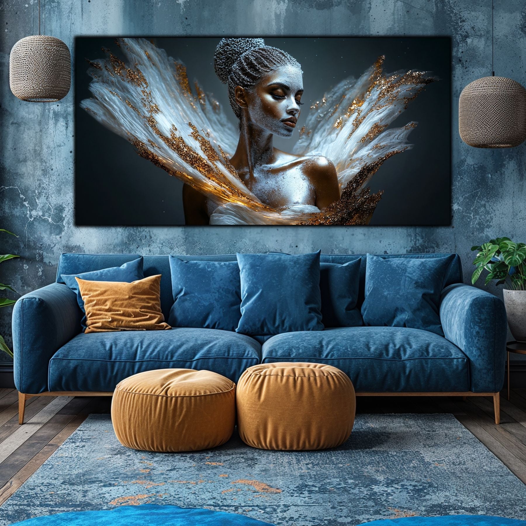 Imaginile prezentate sunt randari digitale realizate pentru a evidentia frumusetea tablourilor. Ele nu respecta proportiile reale in raport cu spatiul, fiind doar o interpretare artistica a modului in care acestea ar putea fi integrate intr-un decor. Va invit sa le „probati” mental pe peretii casei voastre si sa descoperiti cum isi gasesc locul in realitate.