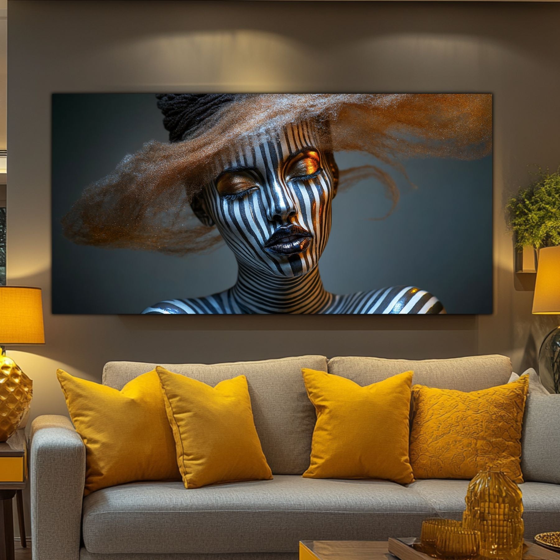 Imaginile prezentate sunt randari digitale realizate pentru a evidentia frumusetea tablourilor. Ele nu respecta proportiile reale in raport cu spatiul, fiind doar o interpretare artistica a modului in care acestea ar putea fi integrate intr-un decor. Va invit sa le „probati” mental pe peretii casei voastre si sa descoperiti cum isi gasesc locul in realitate.