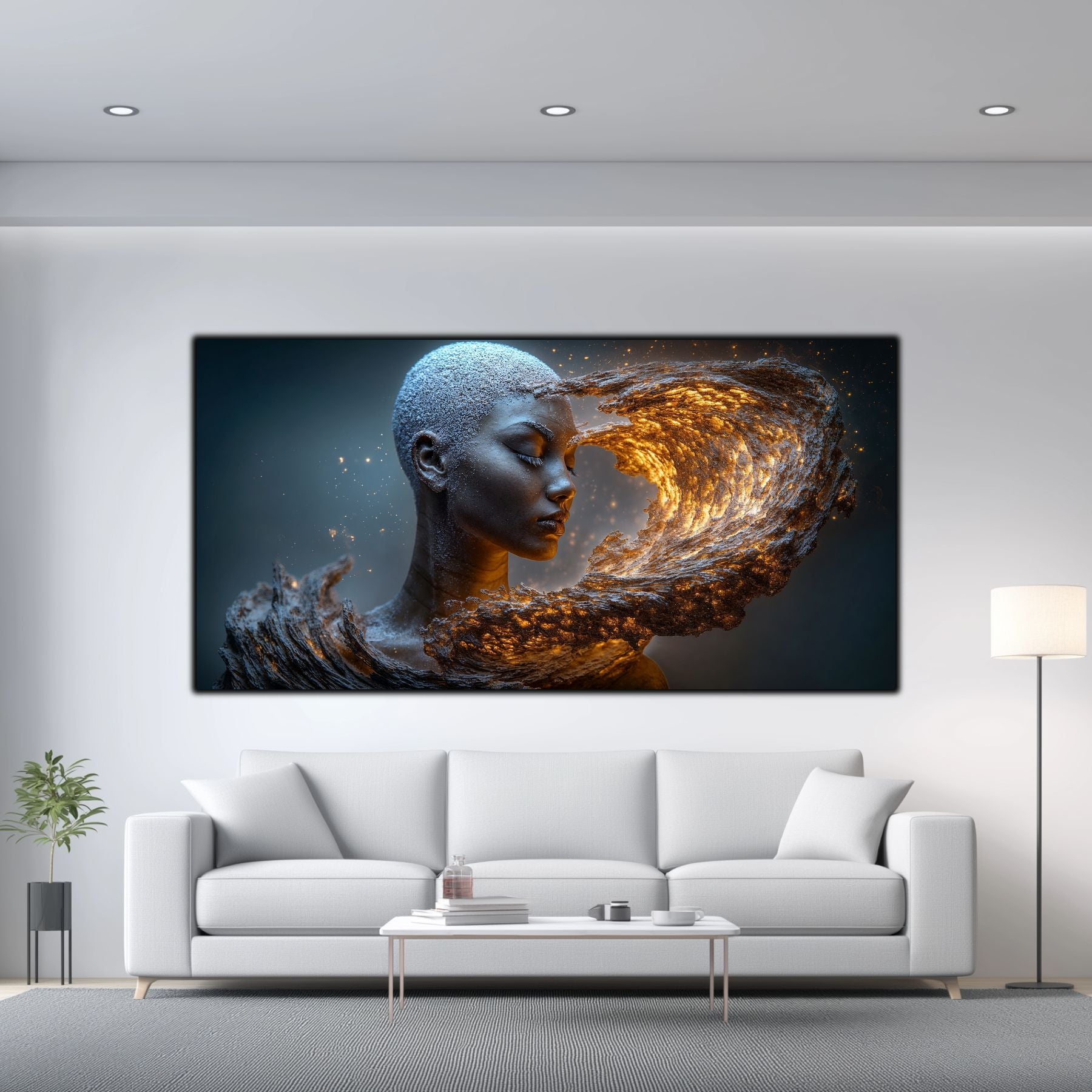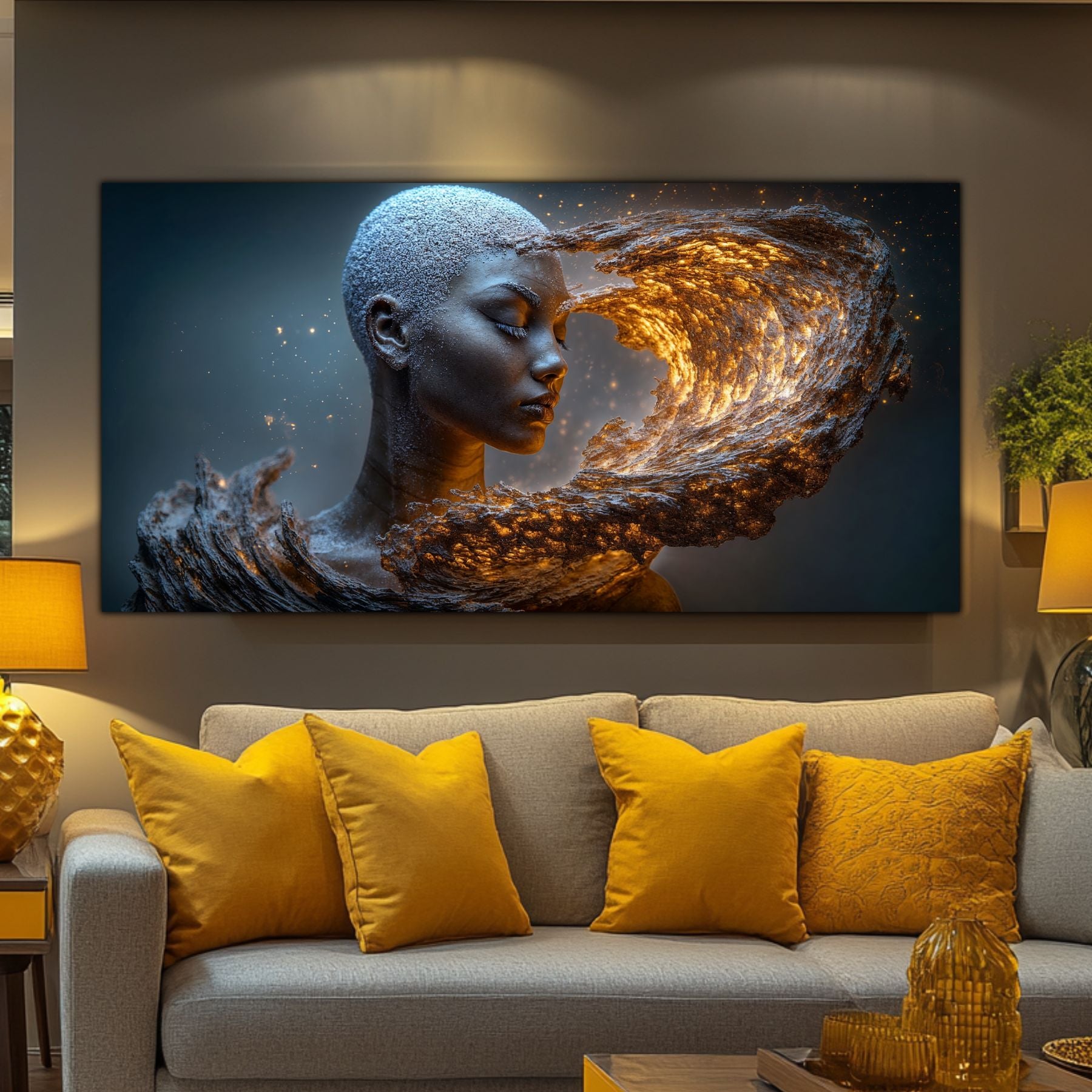 Imaginile prezentate sunt randari digitale realizate pentru a evidentia frumusetea tablourilor. Ele nu respecta proportiile reale in raport cu spatiul, fiind doar o interpretare artistica a modului in care acestea ar putea fi integrate intr-un decor. Va invit sa le „probati” mental pe peretii casei voastre si sa descoperiti cum isi gasesc locul in realitate.