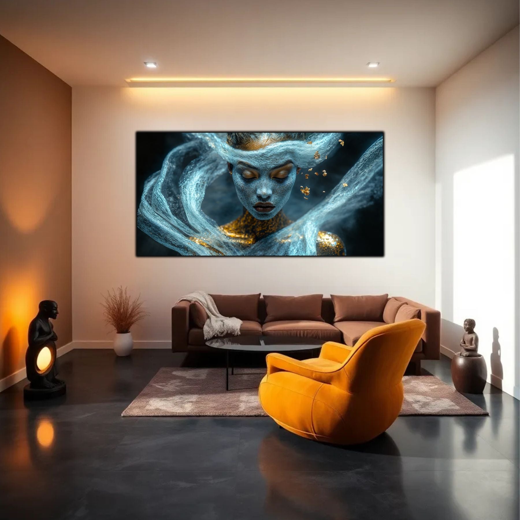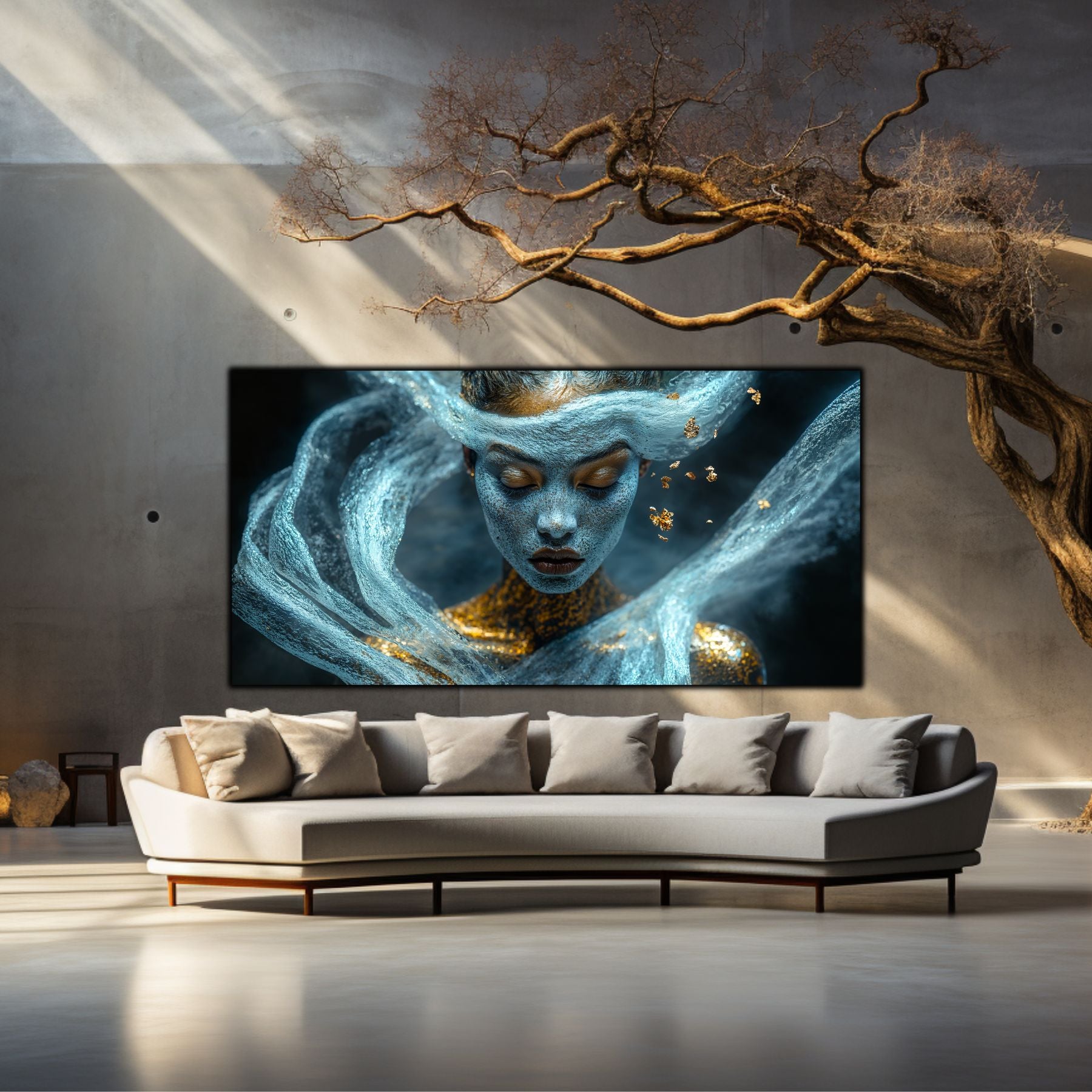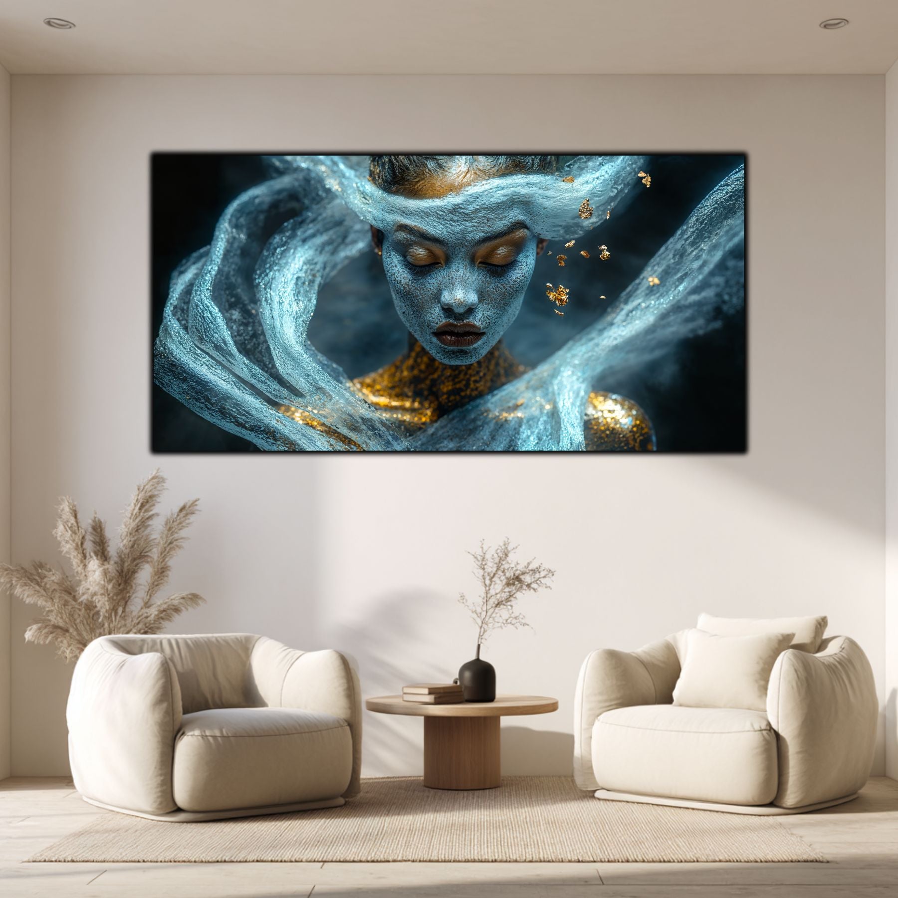 Imaginile prezentate sunt randari digitale realizate pentru a evidentia frumusetea tablourilor. Ele nu respecta proportiile reale in raport cu spatiul, fiind doar o interpretare artistica a modului in care acestea ar putea fi integrate intr-un decor. Va invit sa le „probati” mental pe peretii casei voastre si sa descoperiti cum isi gasesc locul in realitate.