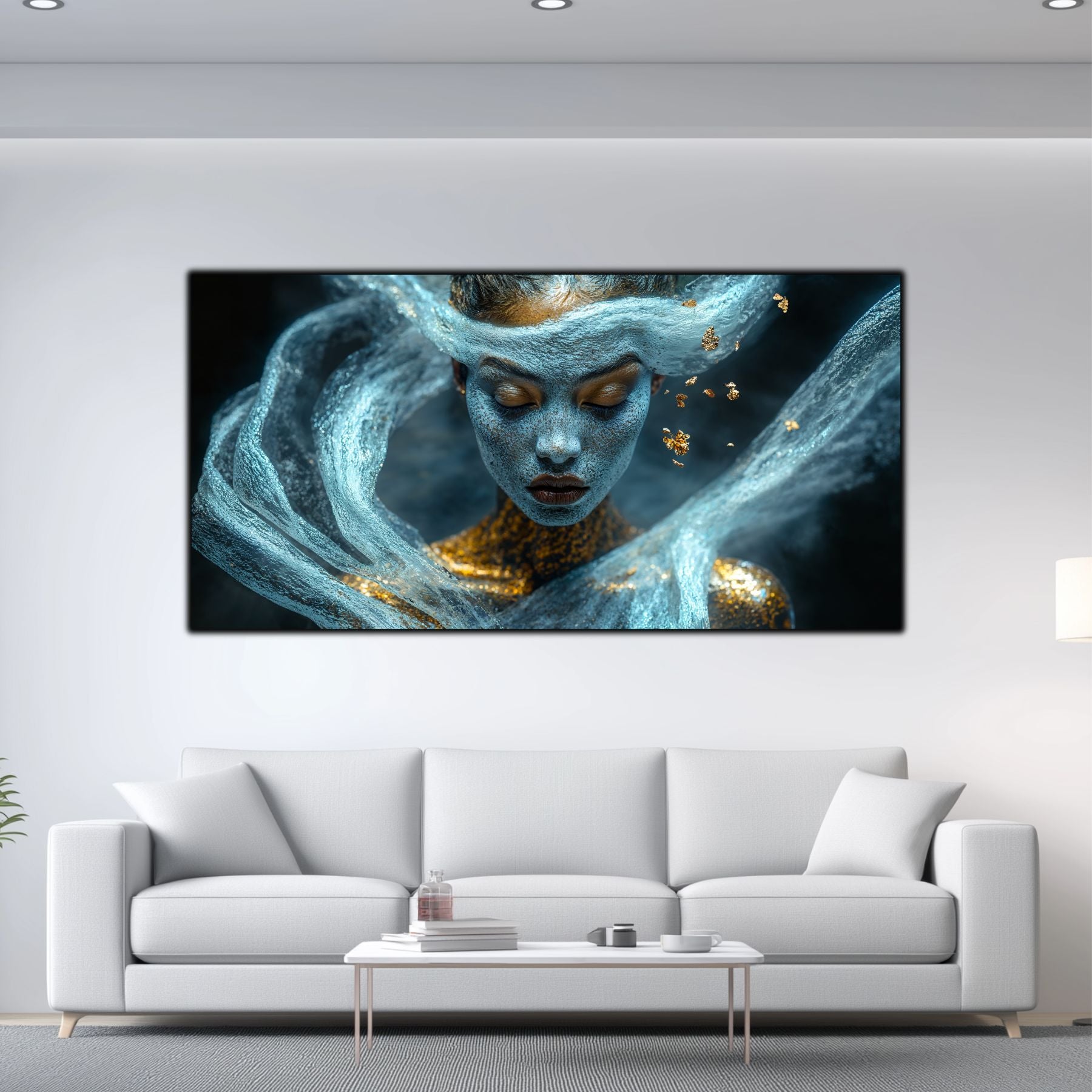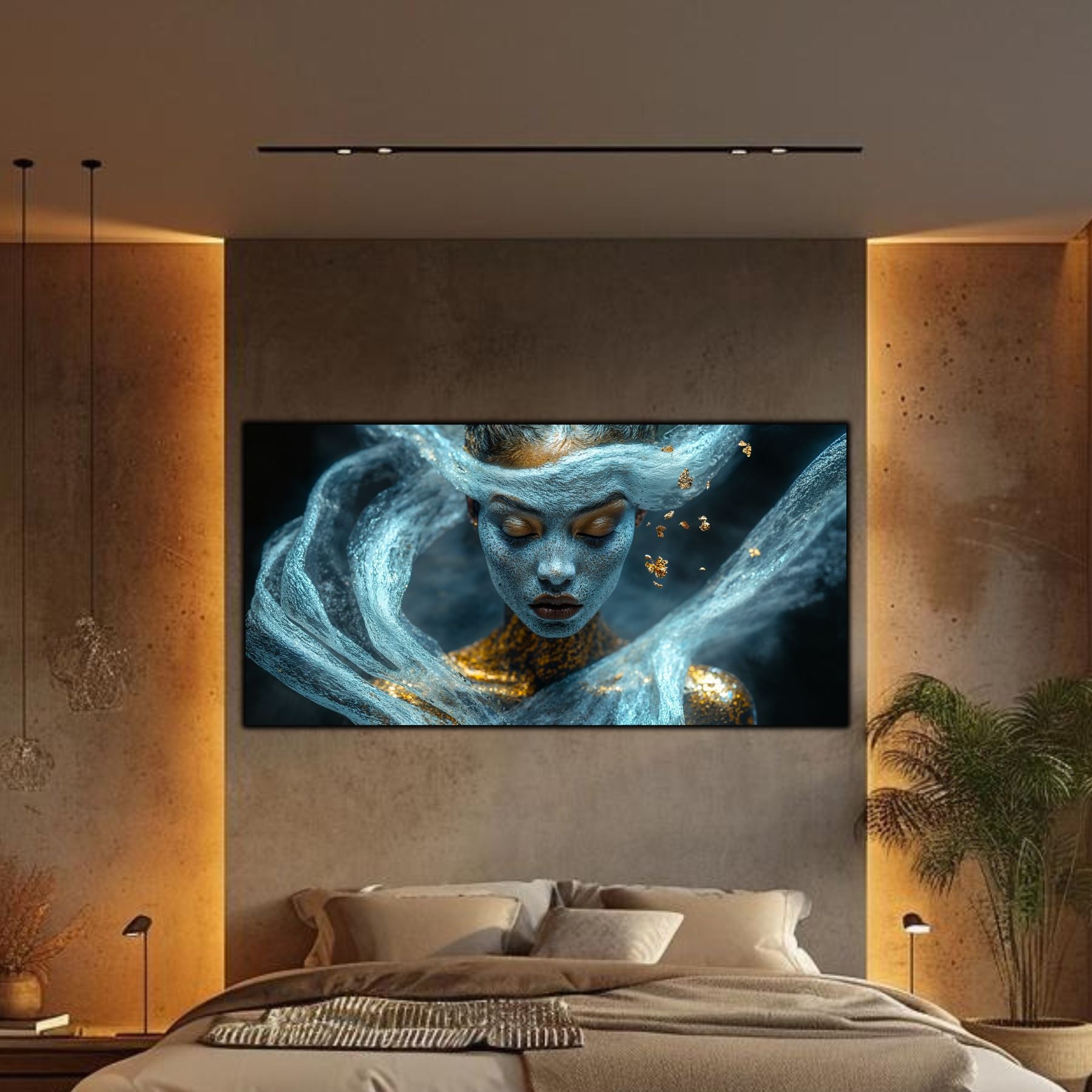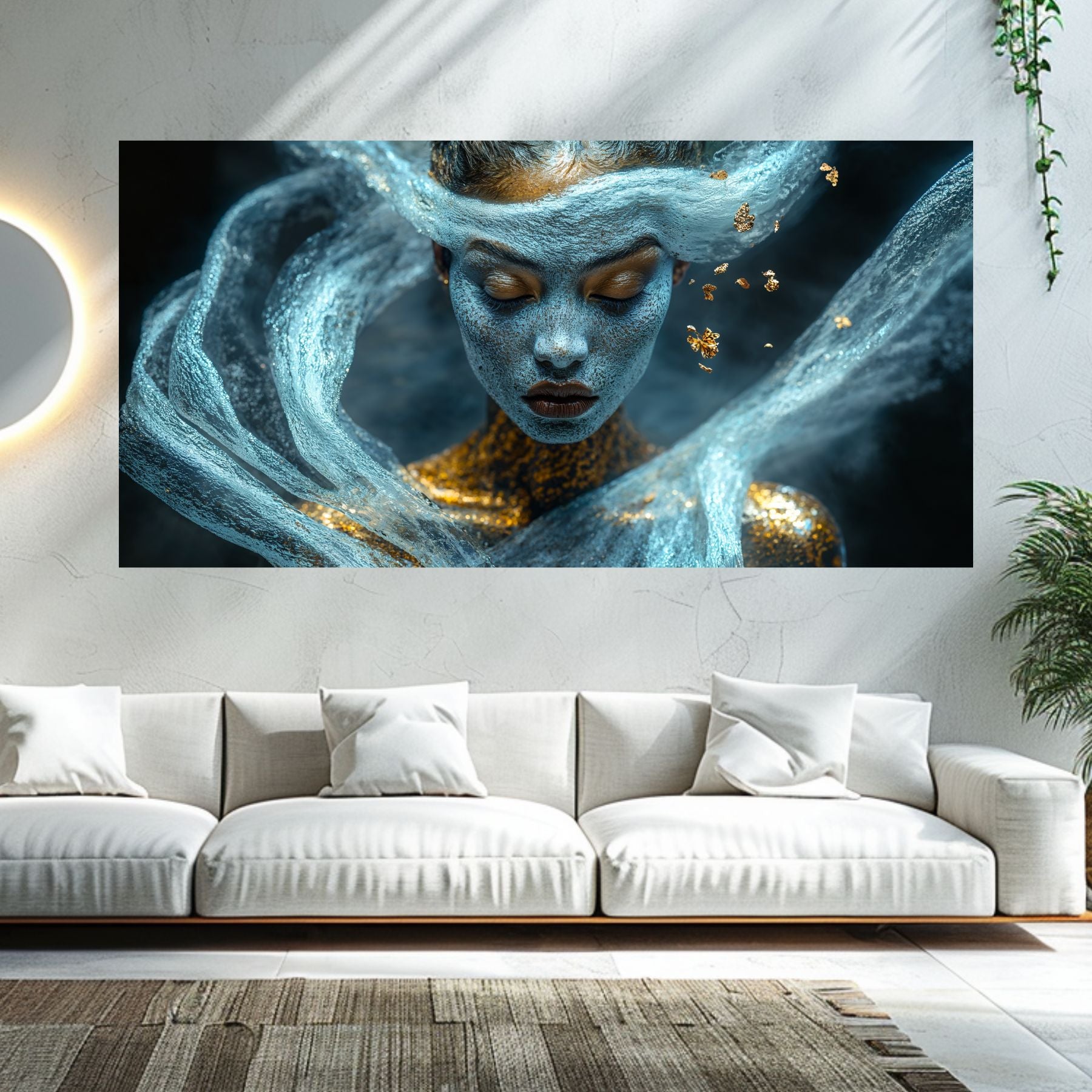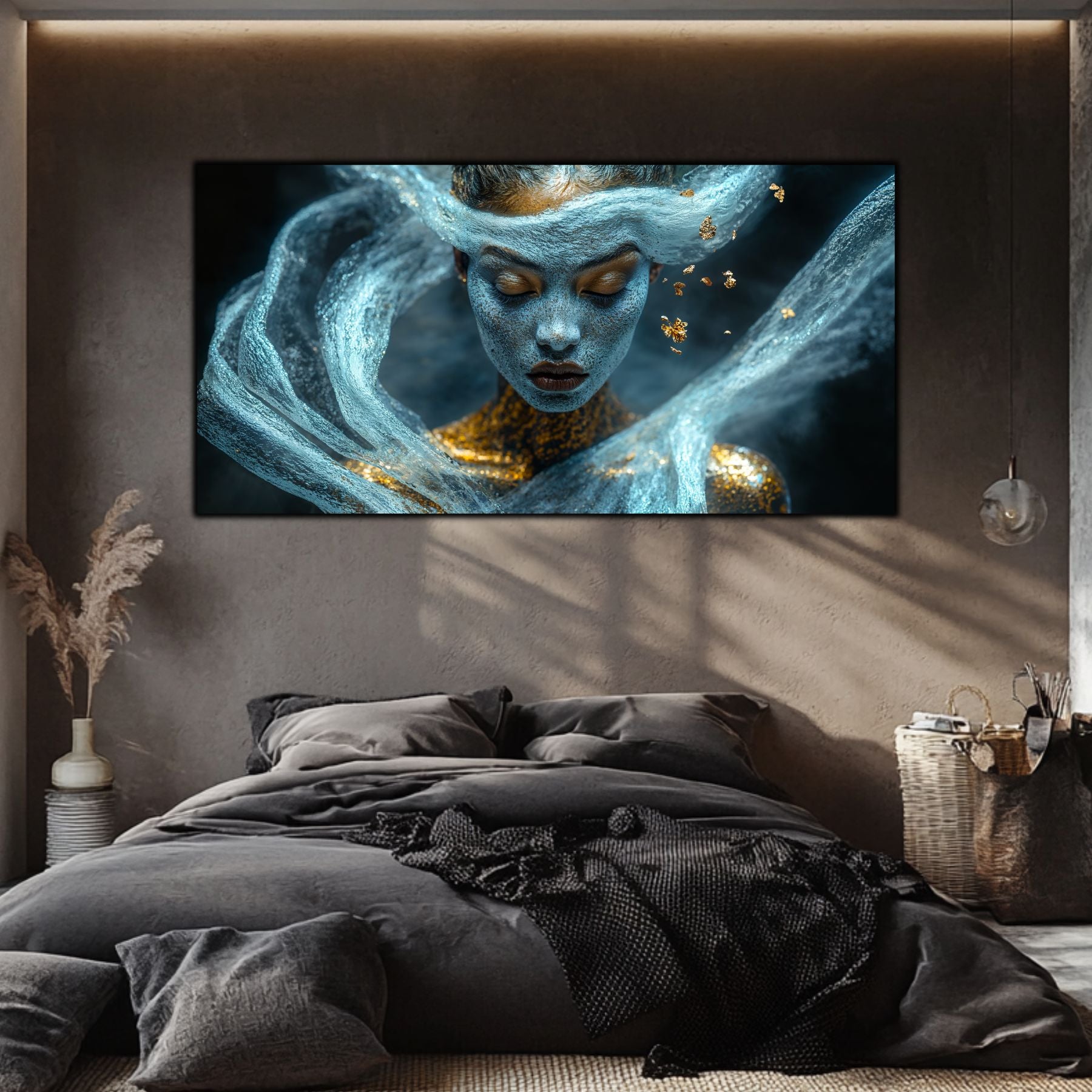 Imaginile prezentate sunt randari digitale realizate pentru a evidentia frumusetea tablourilor. Ele nu respecta proportiile reale in raport cu spatiul, fiind doar o interpretare artistica a modului in care acestea ar putea fi integrate intr-un decor. Va invit sa le „probati” mental pe peretii casei voastre si sa descoperiti cum isi gasesc locul in realitate.