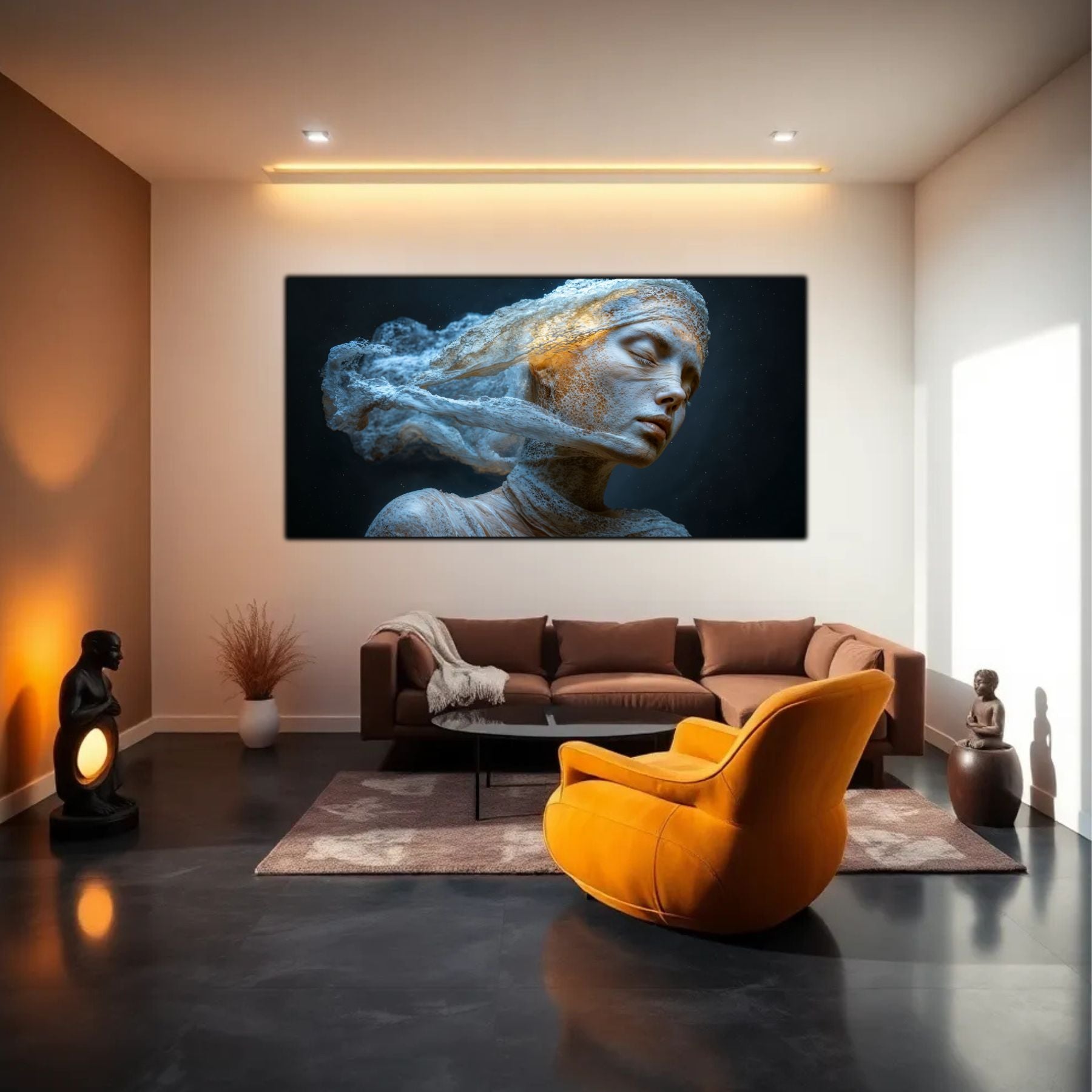 Imaginile prezentate sunt randari digitale realizate pentru a evidentia frumusetea tablourilor. Ele nu respecta proportiile reale in raport cu spatiul, fiind doar o interpretare artistica a modului in care acestea ar putea fi integrate intr-un decor. Va invit sa le „probati” mental pe peretii casei voastre si sa descoperiti cum isi gasesc locul in realitate.