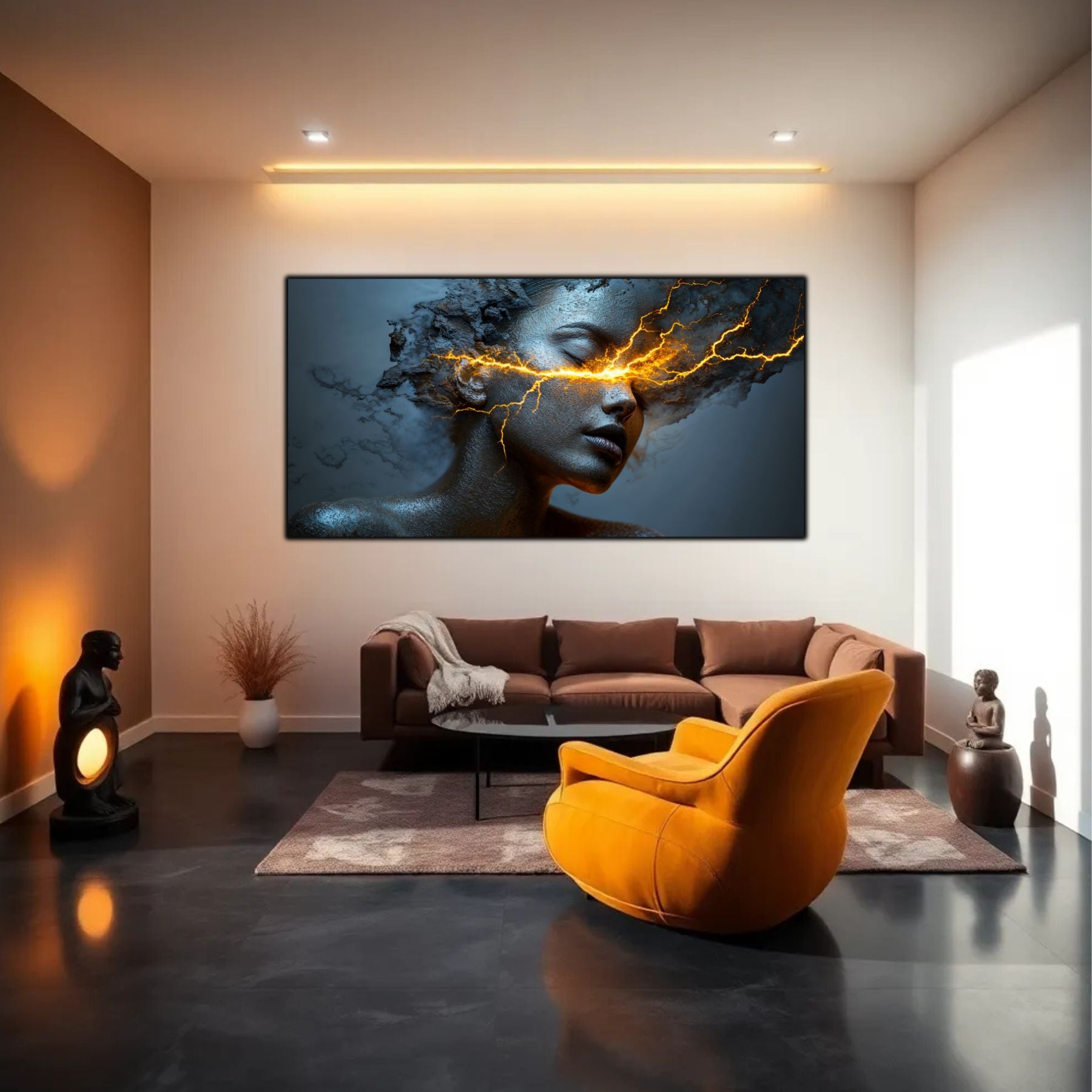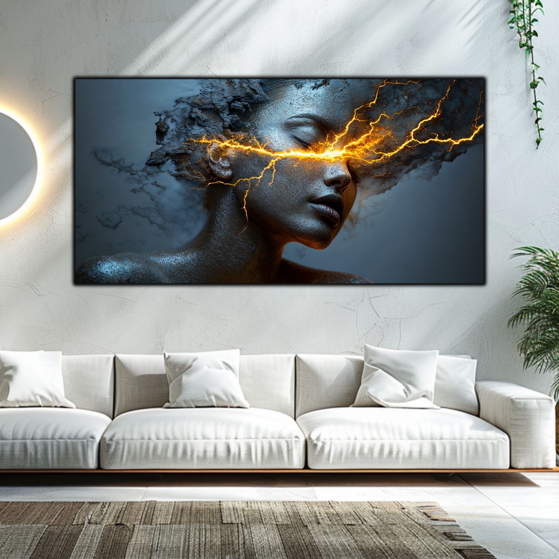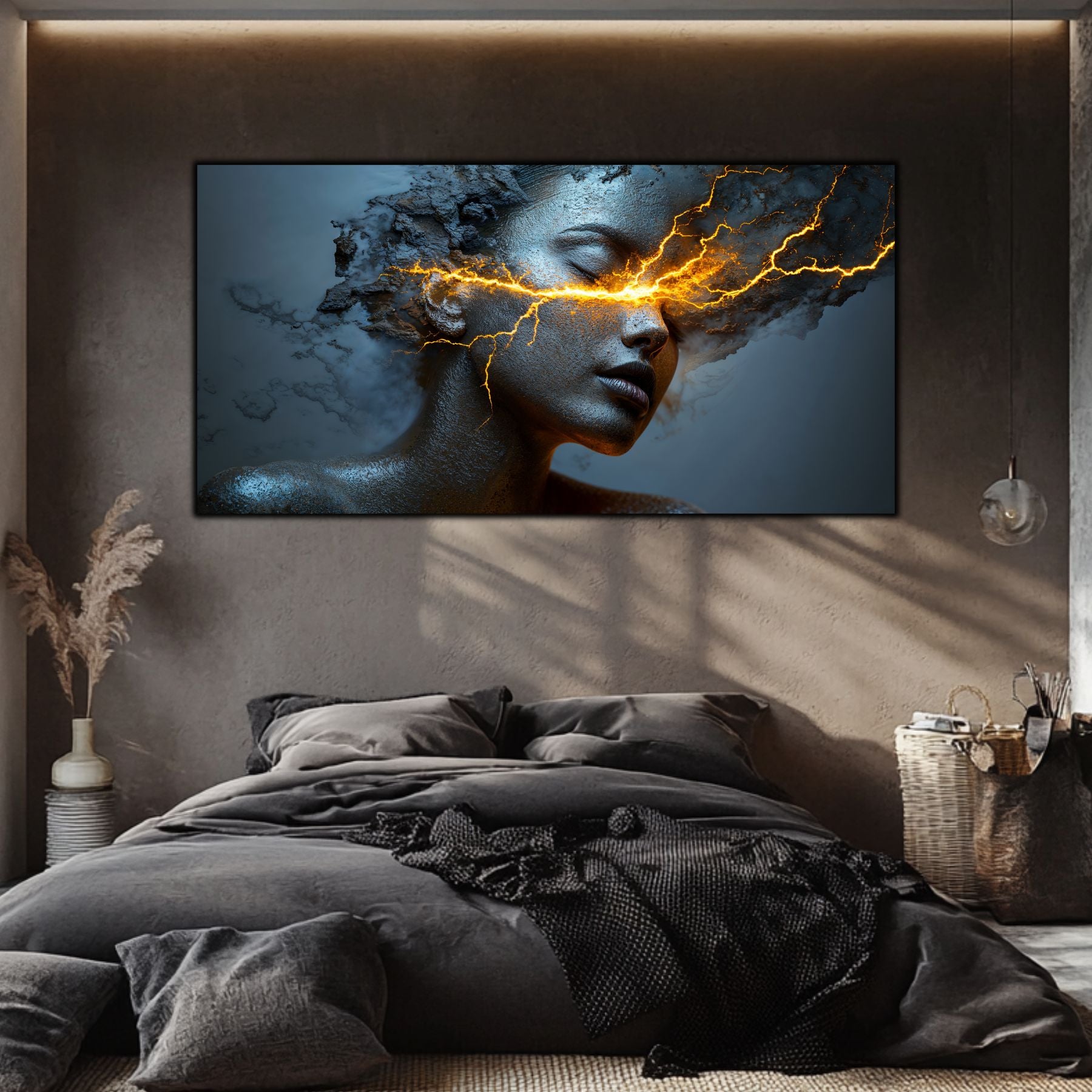 Imaginile prezentate sunt randari digitale realizate pentru a evidentia frumusetea tablourilor. Ele nu respecta proportiile reale in raport cu spatiul, fiind doar o interpretare artistica a modului in care acestea ar putea fi integrate intr-un decor. Va invit sa le „probati” mental pe peretii casei voastre si sa descoperiti cum isi gasesc locul in realitate.