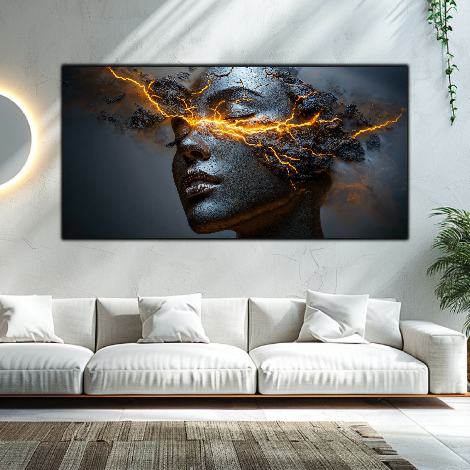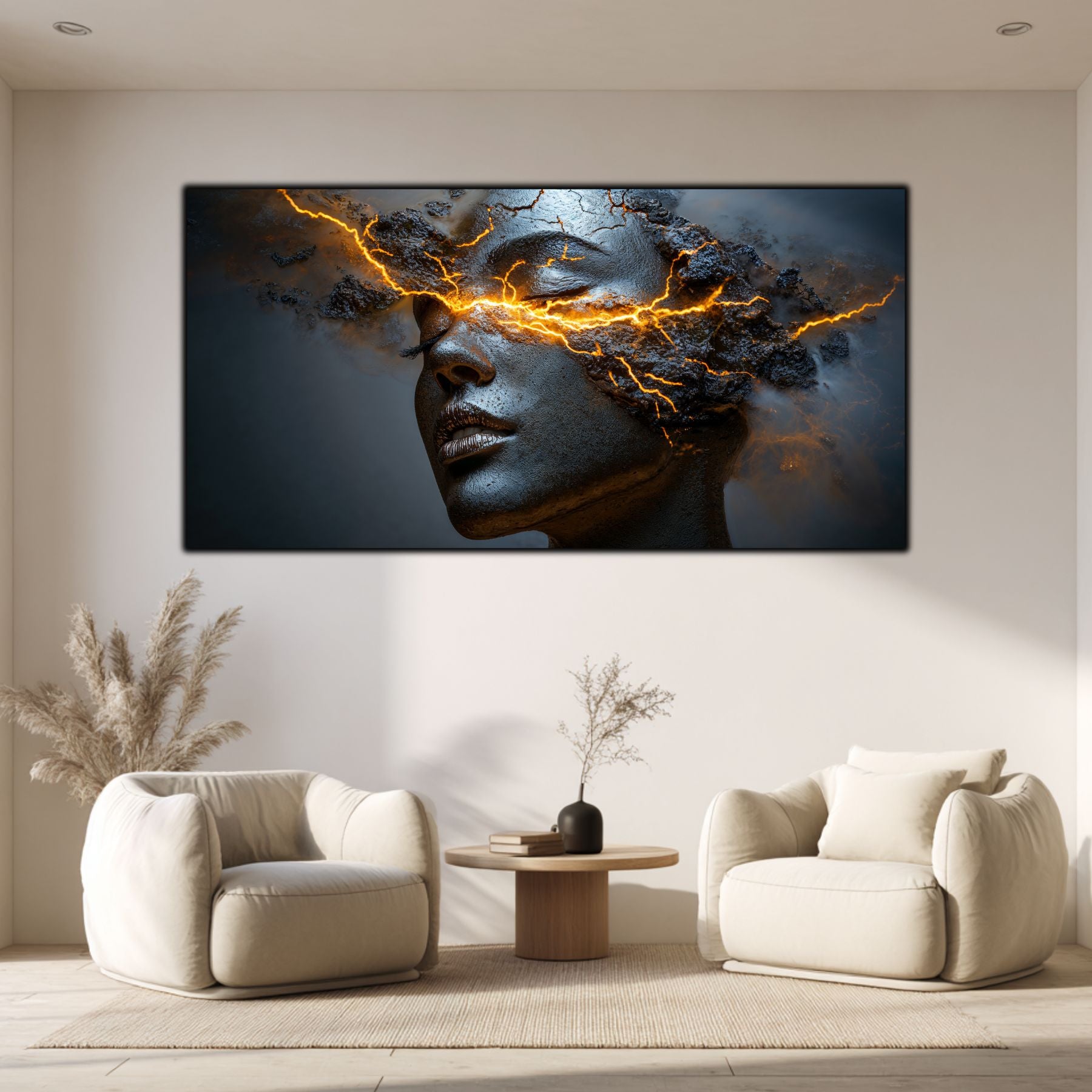 Imaginile prezentate sunt randari digitale realizate pentru a evidentia frumusetea tablourilor. Ele nu respecta proportiile reale in raport cu spatiul, fiind doar o interpretare artistica a modului in care acestea ar putea fi integrate intr-un decor. Va invit sa le „probati” mental pe peretii casei voastre si sa descoperiti cum isi gasesc locul in realitate.
