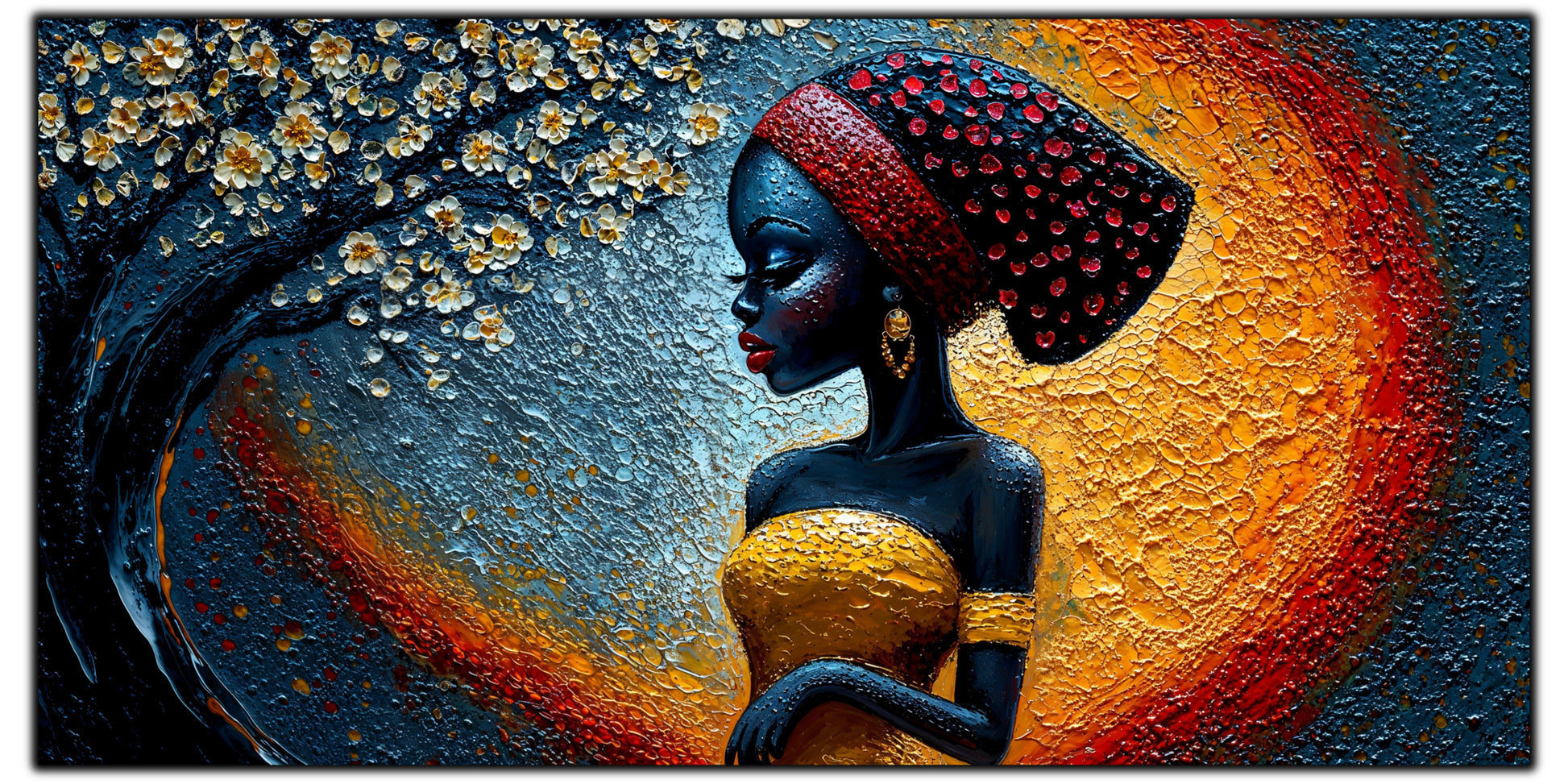 Tablou unicat din sticla securizata — printat UV la cea mai inalta calitate Colectie exclusiva ART-ZEN cu portrete africane, dimensiune remarcabila: 120x60 cm