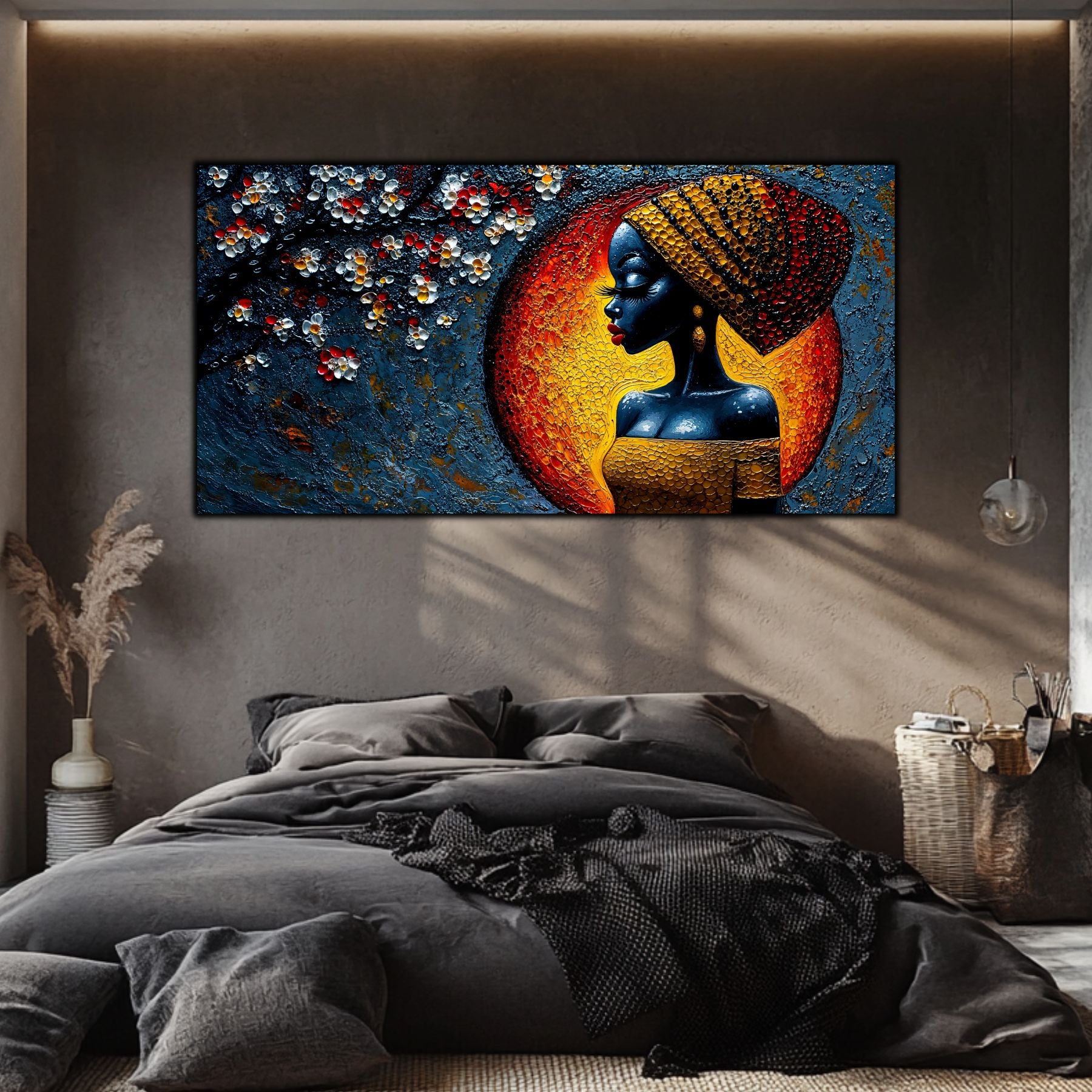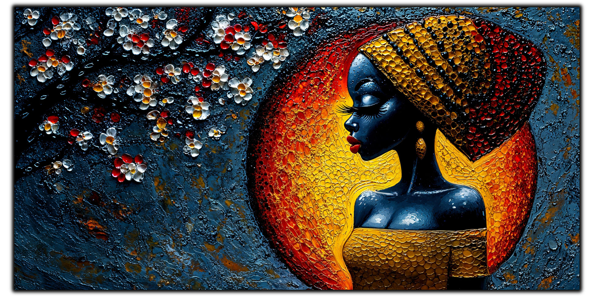 Tablou unicat din sticla securizata — printat UV la cea mai inalta calitate Colectie exclusiva ART-ZEN cu portrete africane, dimensiune remarcabila: 120x60 cm