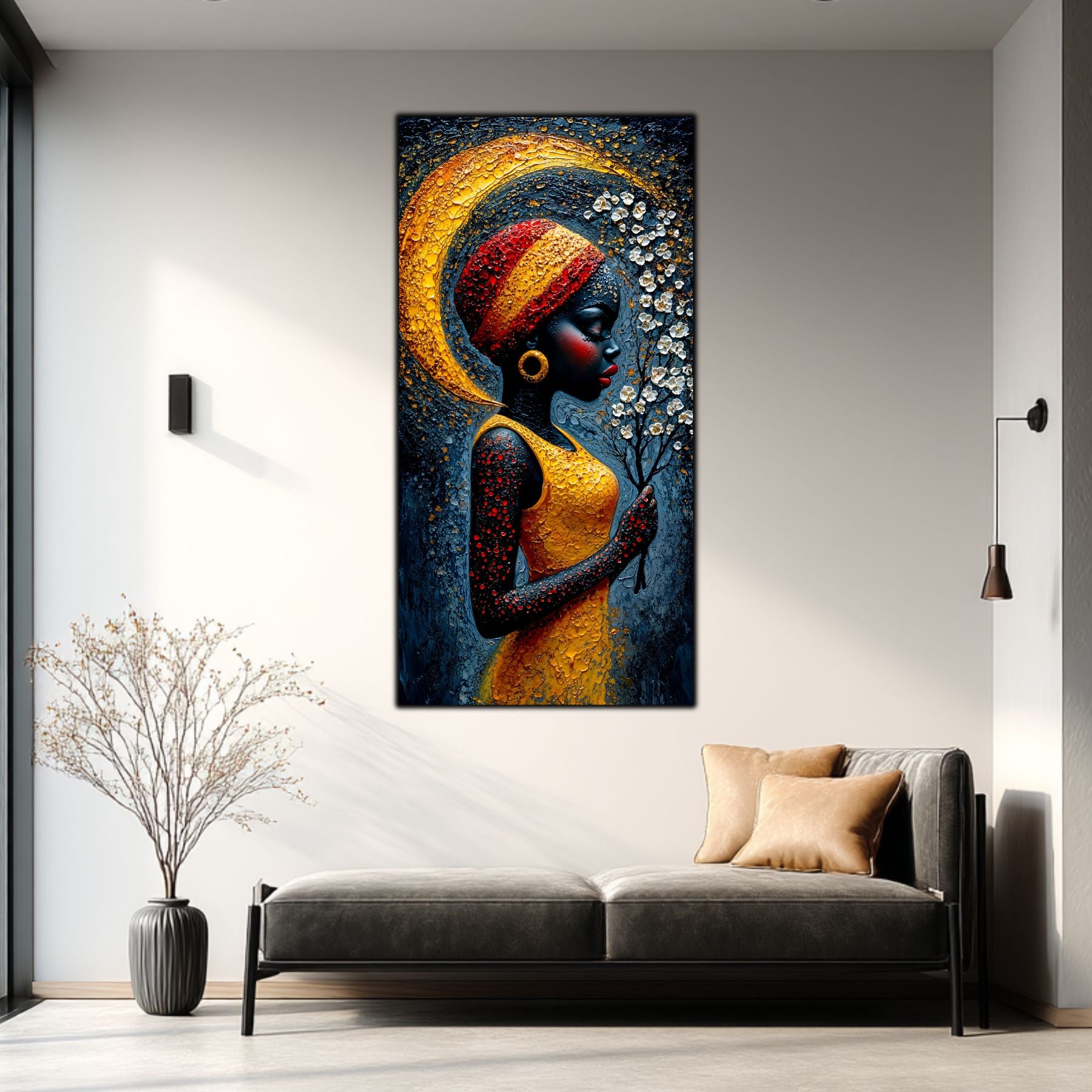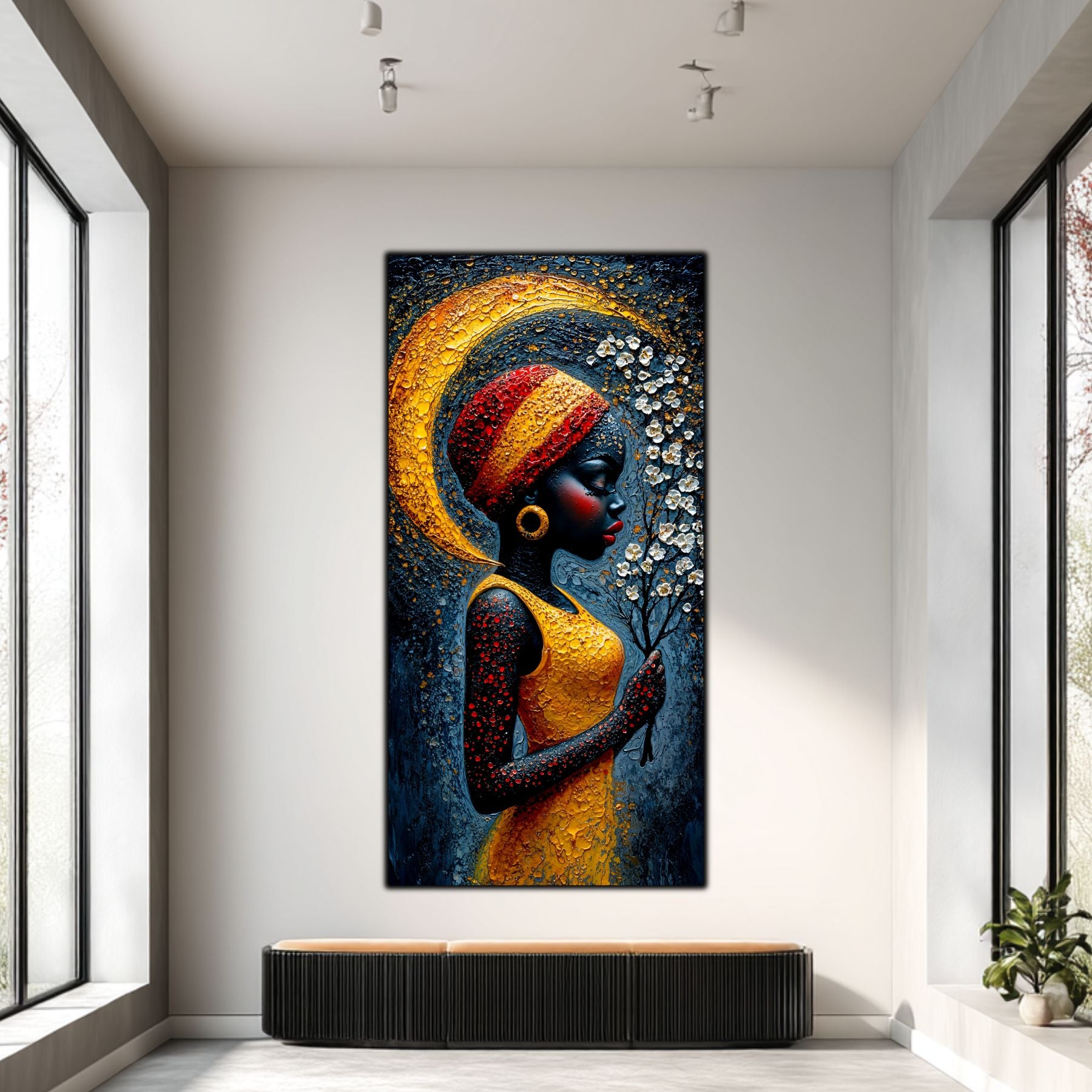 Tablou unicat din sticla securizata — printat UV la cea mai inalta calitate Colectie exclusiva ART-ZEN cu portrete africane, dimensiune remarcabila: 120x60 cm