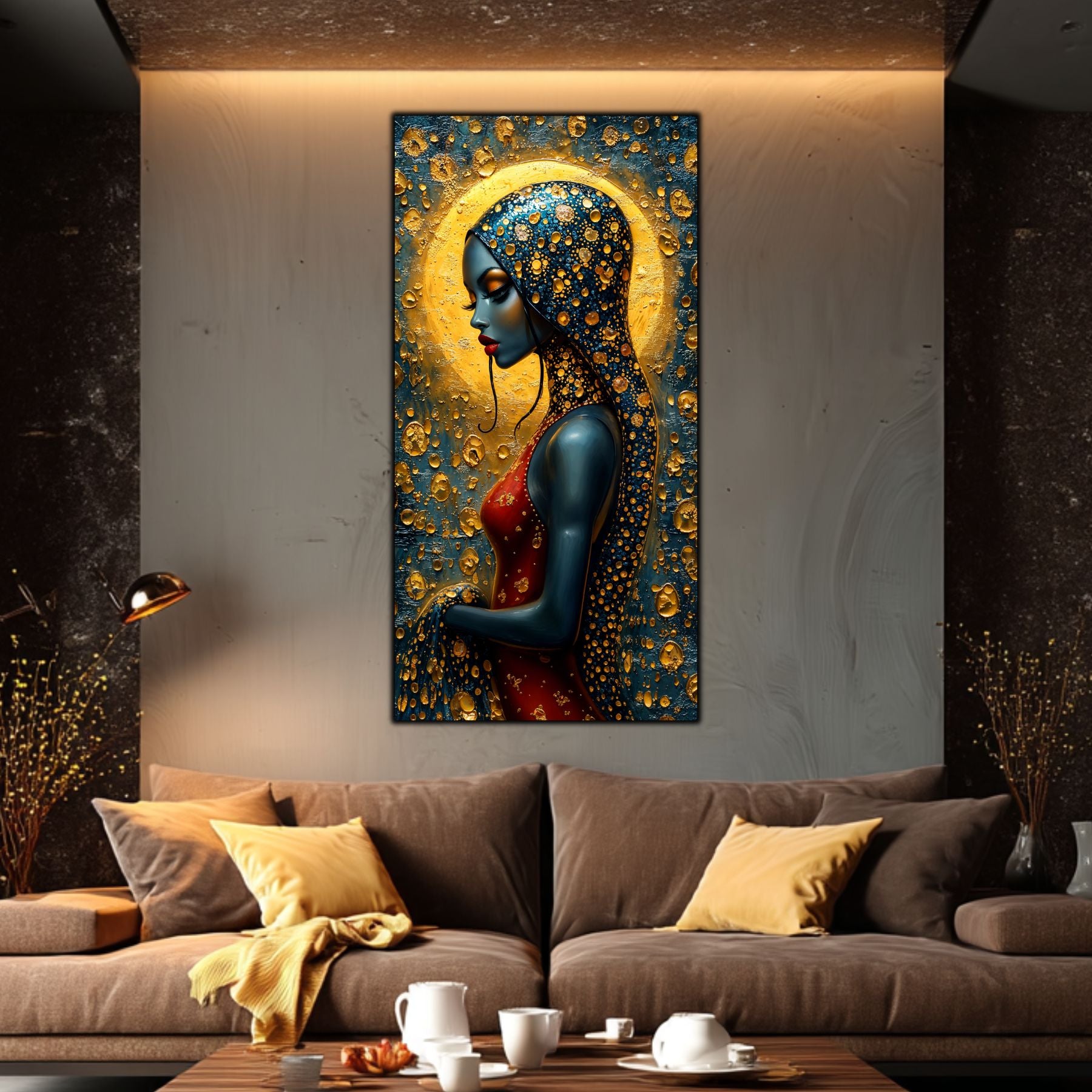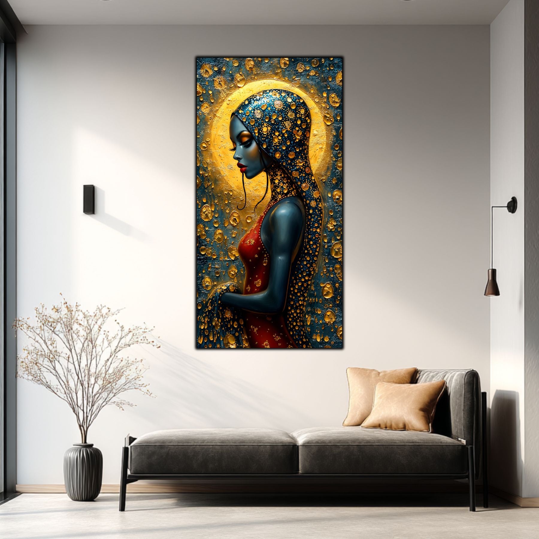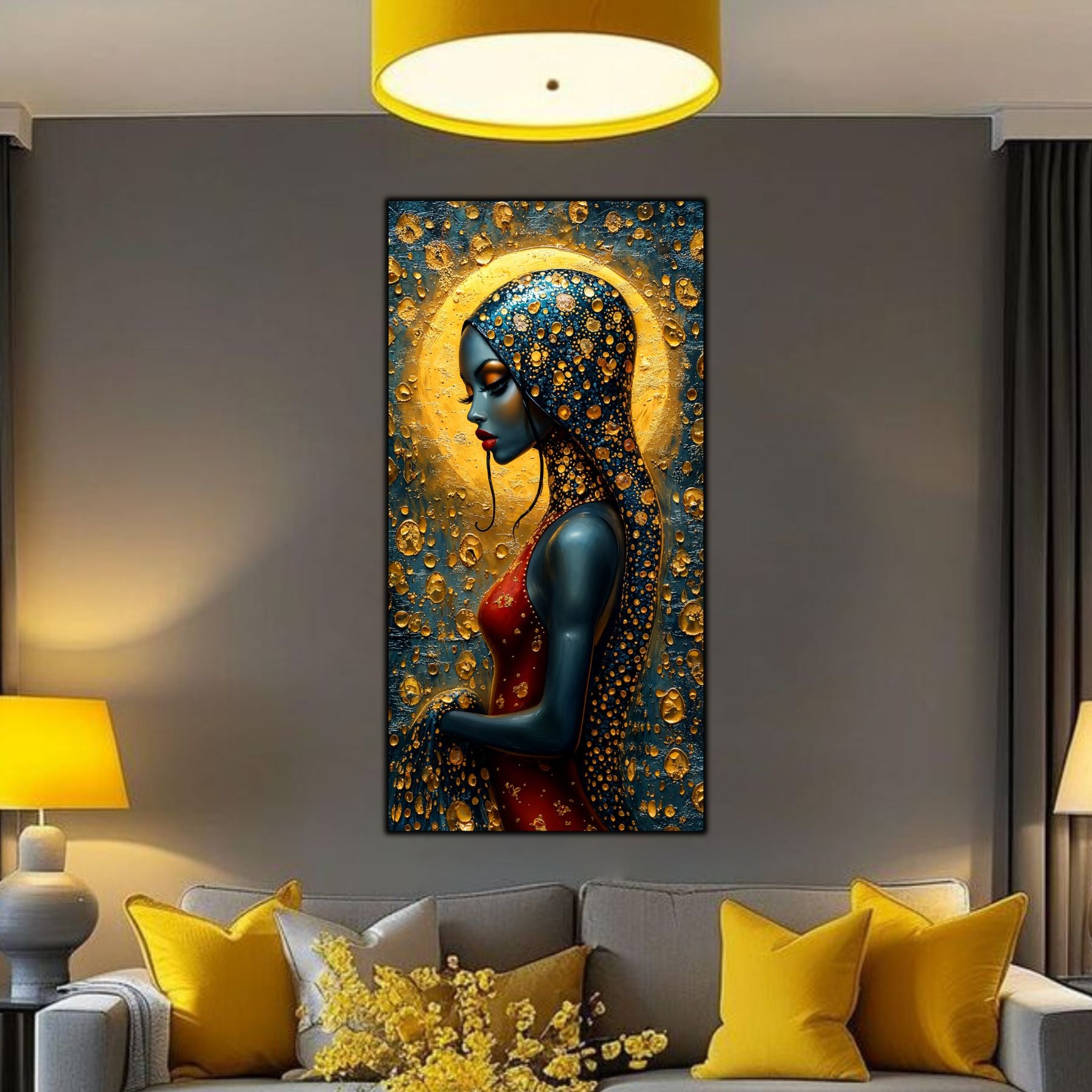 Imaginile prezentate sunt randari digitale realizate pentru a evidentia frumusetea tablourilor. Ele nu respecta proportiile reale in raport cu spatiul, fiind doar o interpretare artistica a modului in care acestea ar putea fi integrate intr-un decor. Va invit sa le „probati” mental pe peretii casei voastre si sa descoperiti cum isi gasesc locul in realitate.