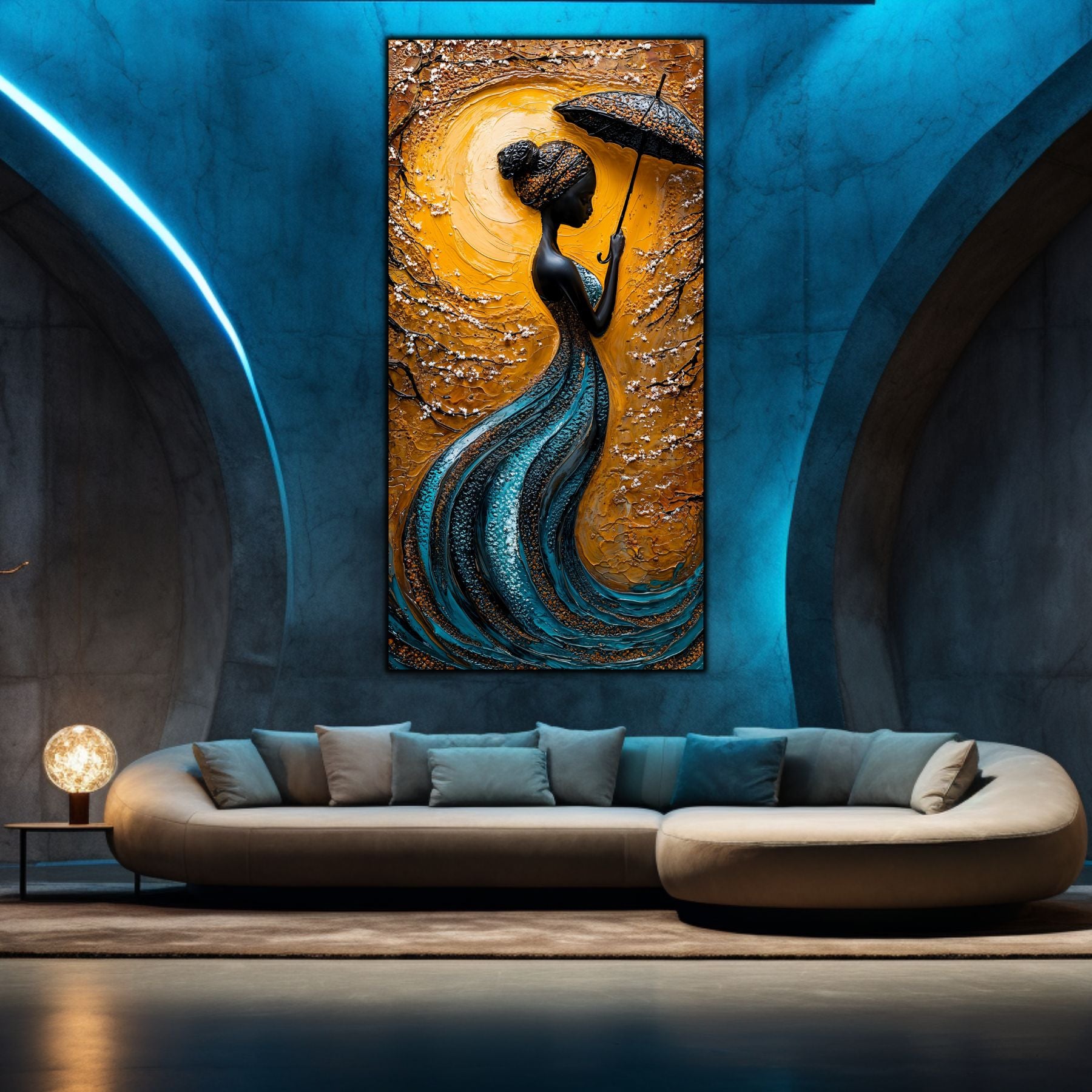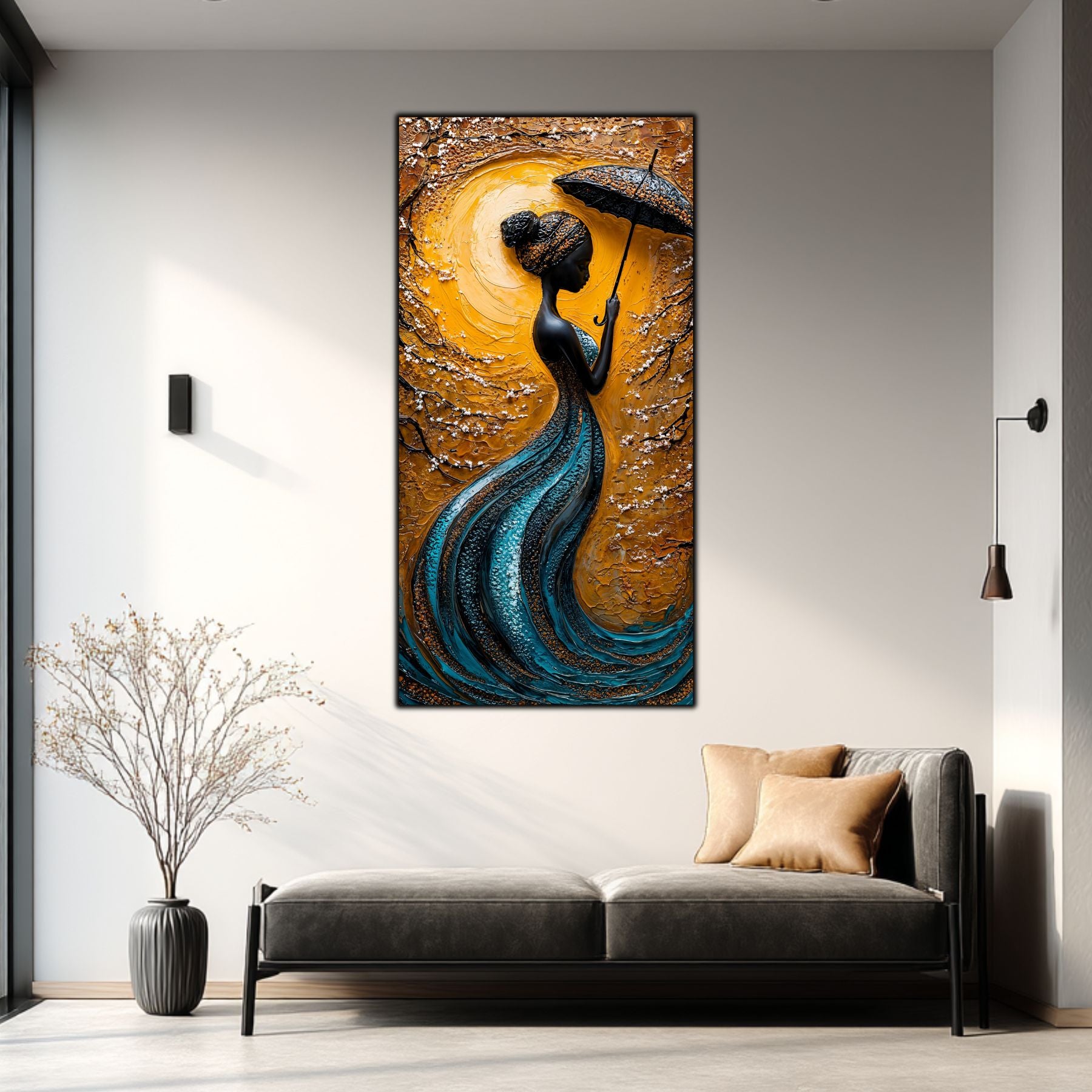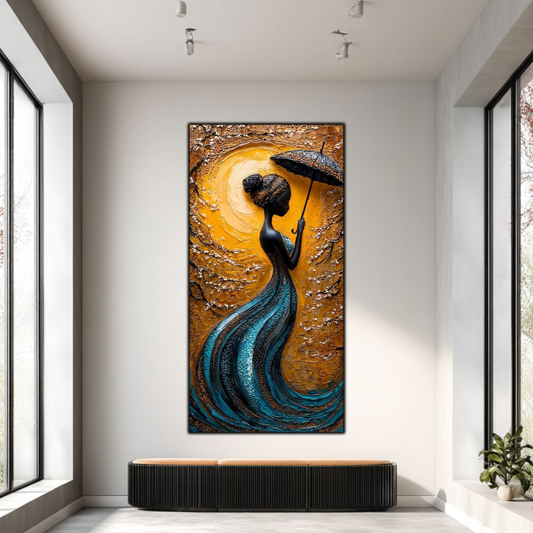 Imaginile prezentate sunt randari digitale realizate pentru a evidentia frumusetea tablourilor. Ele nu respecta proportiile reale in raport cu spatiul, fiind doar o interpretare artistica a modului in care acestea ar putea fi integrate intr-un decor. Va invit sa le „probati” mental pe peretii casei voastre si sa descoperiti cum isi gasesc locul in realitate.
