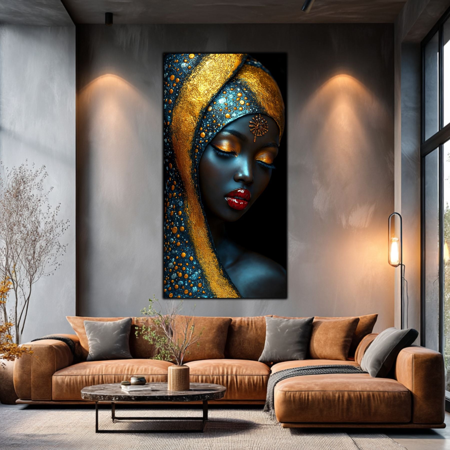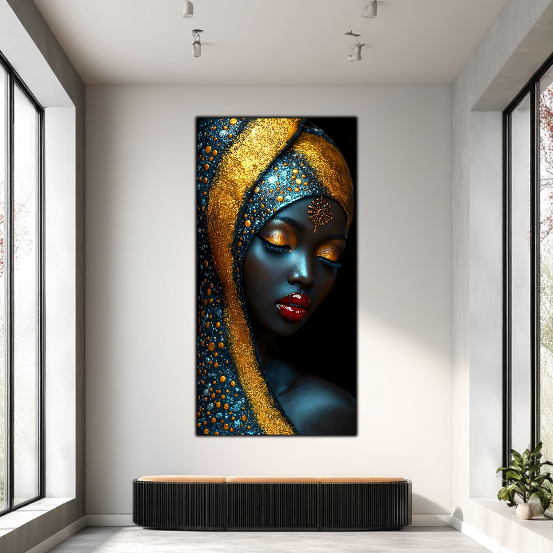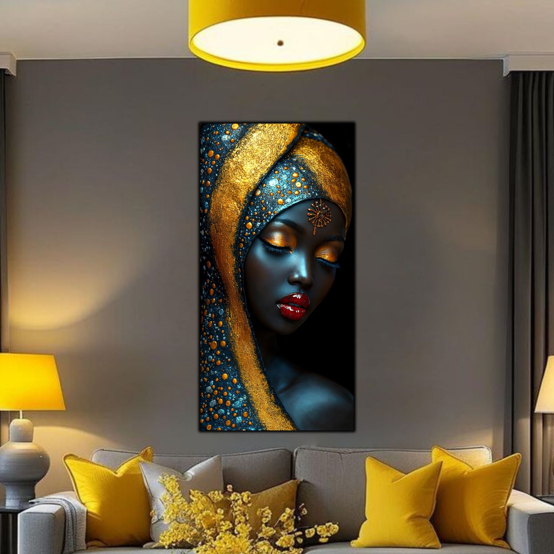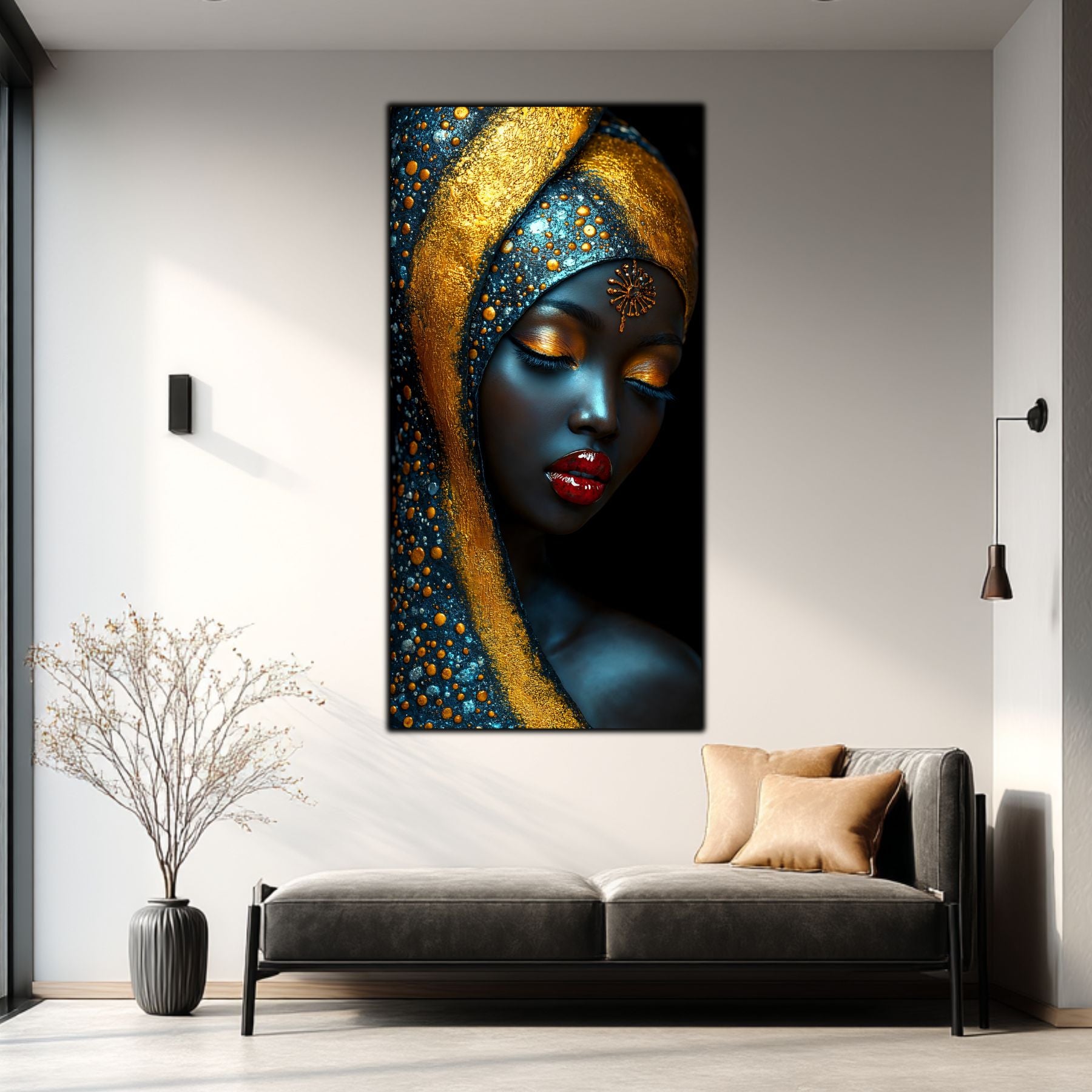 Tablou unicat din sticla securizata — printat UV la cea mai inalta calitate Colectie exclusiva ART-ZEN cu portrete africane, dimensiune remarcabila: 60x120 cm sau 80x120 cm