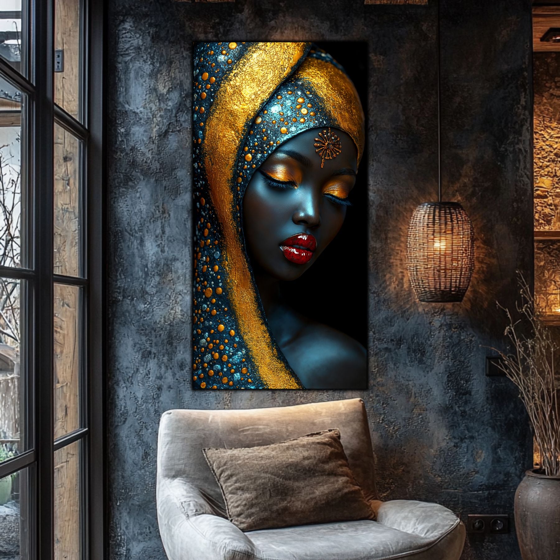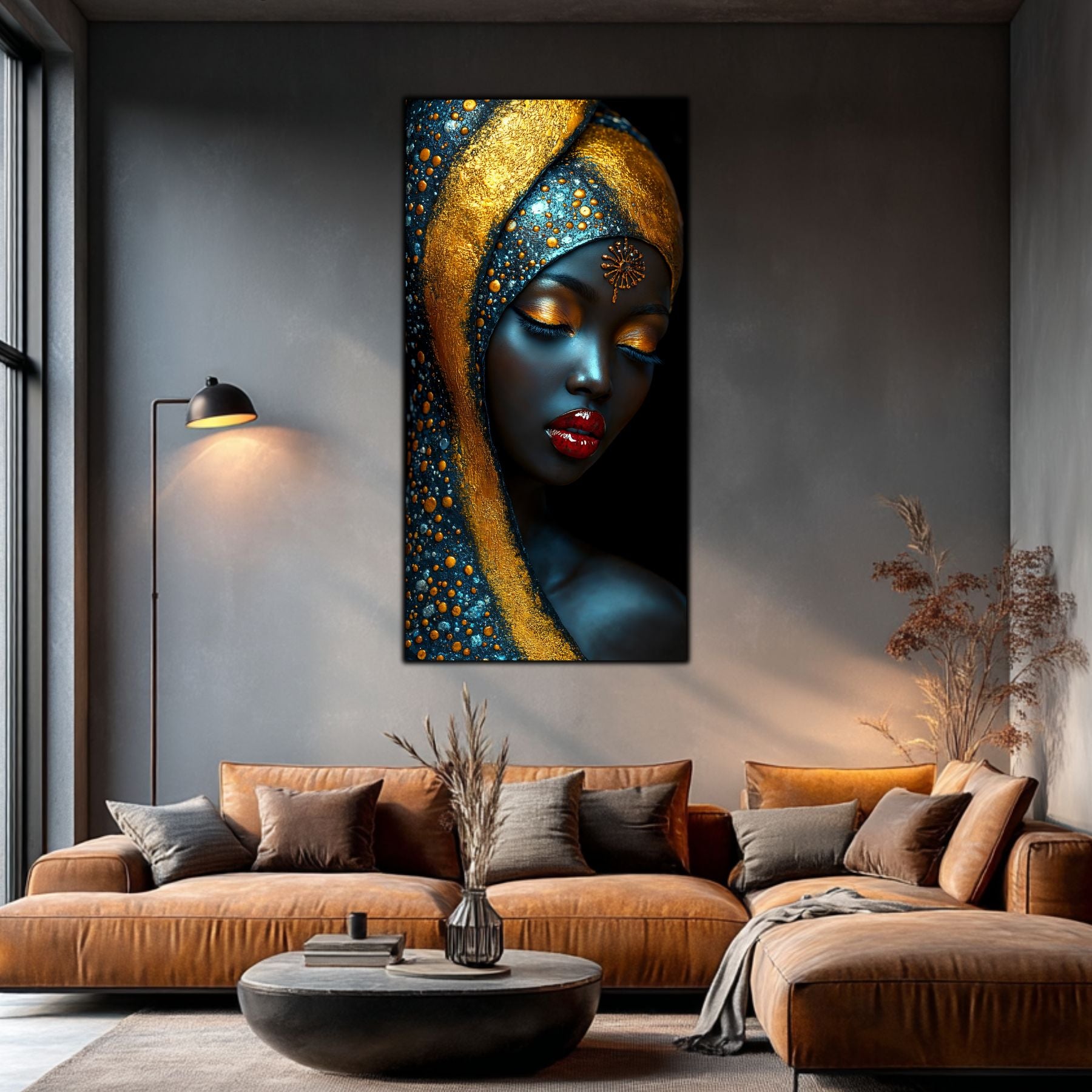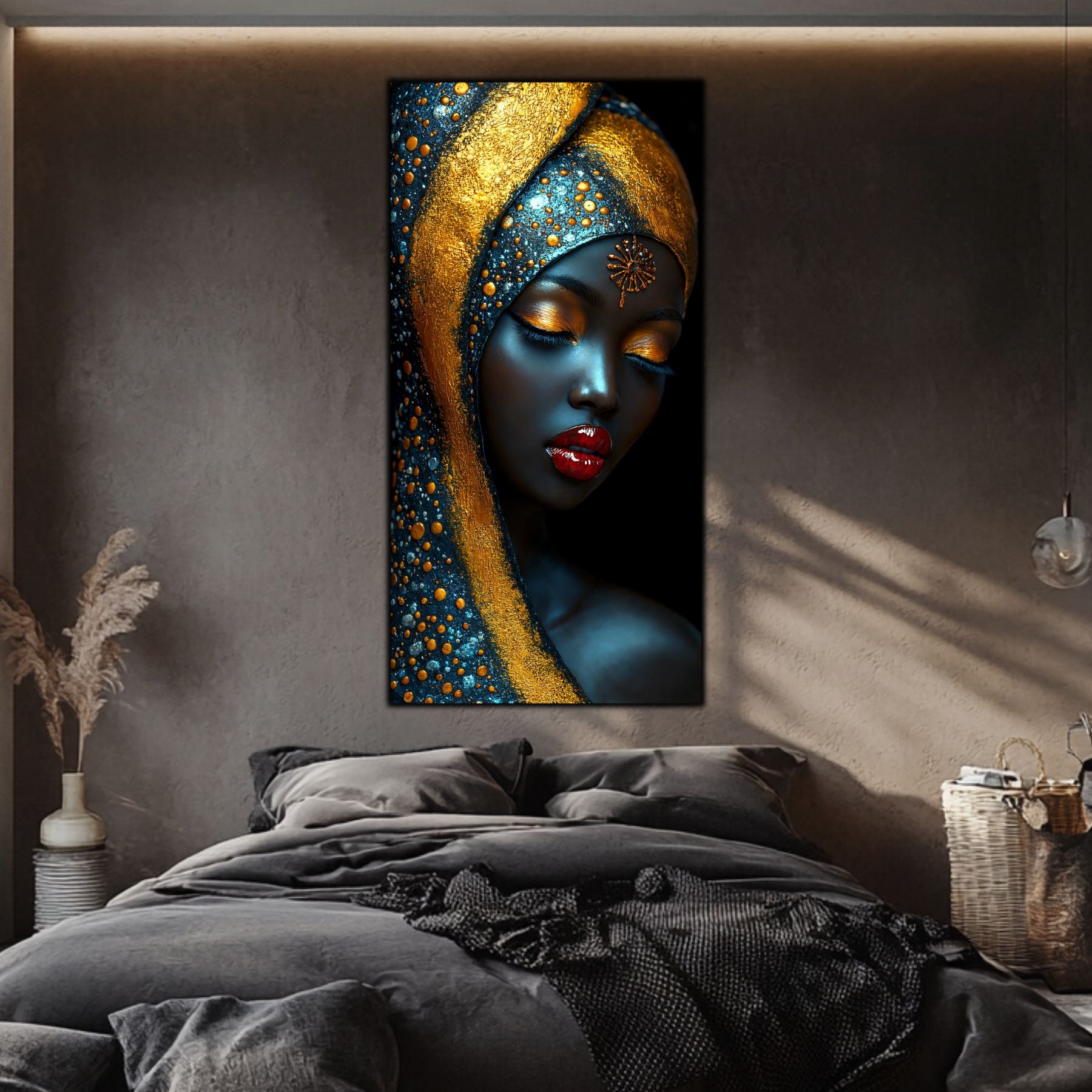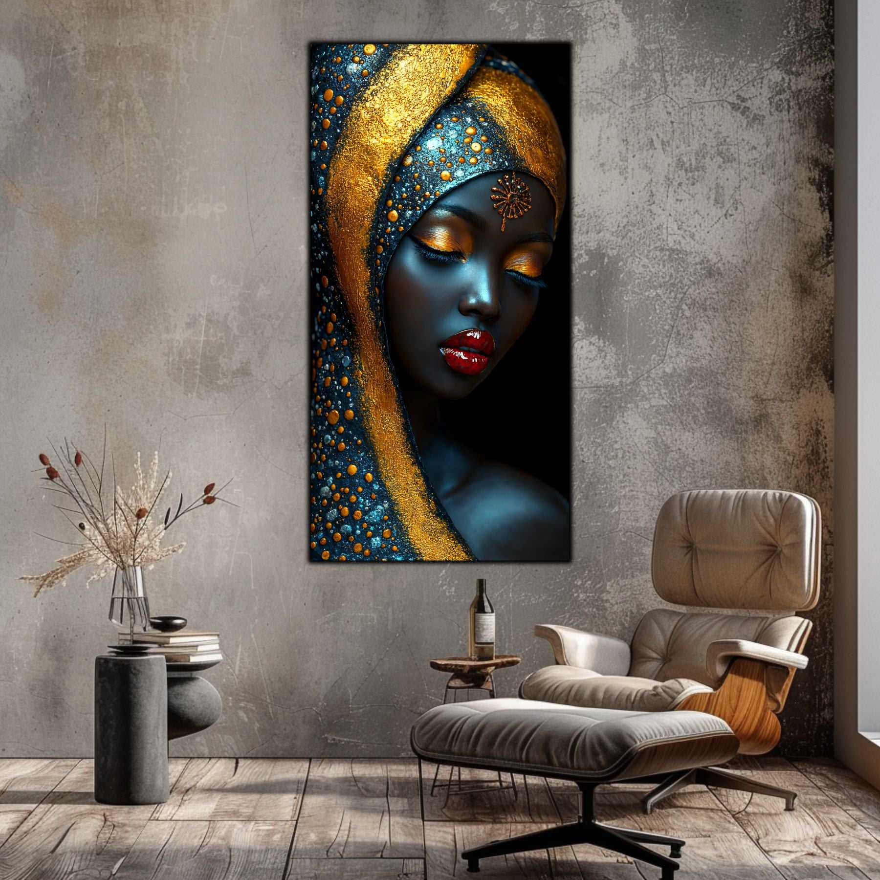 Tablou unicat din sticla securizata — printat UV la cea mai inalta calitate Colectie exclusiva ART-ZEN cu portrete africane, dimensiune remarcabila: 60x120 cm sau 80x120 cm