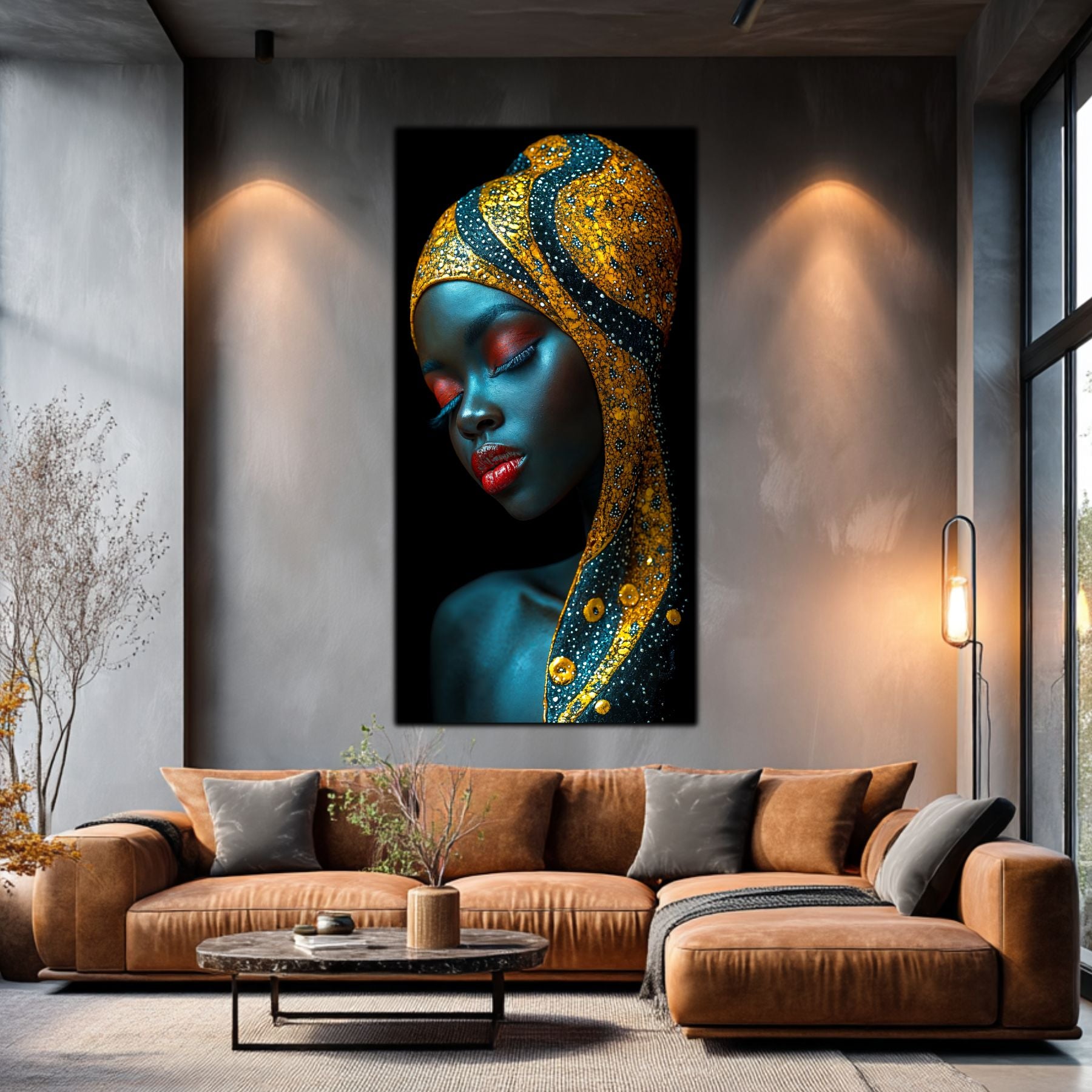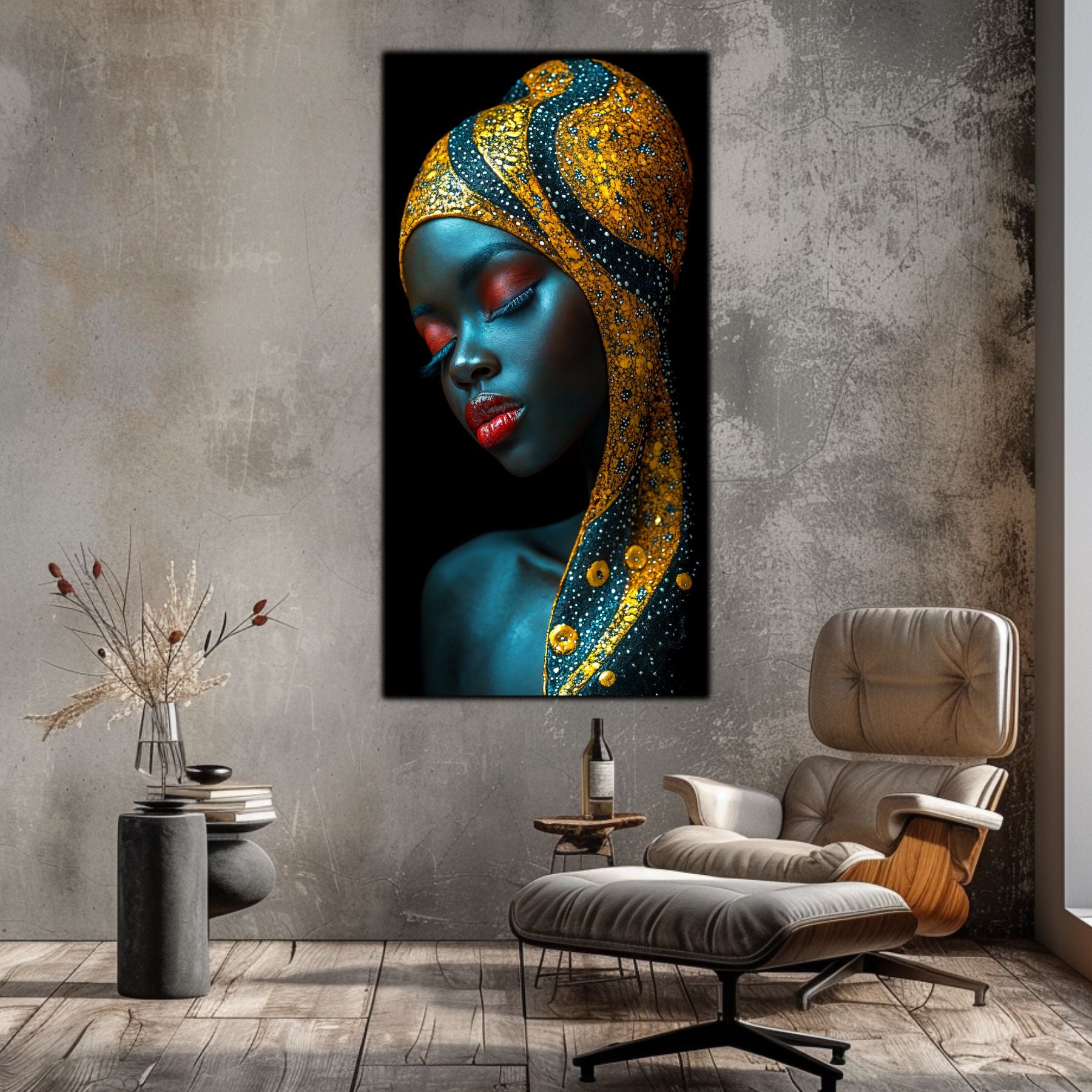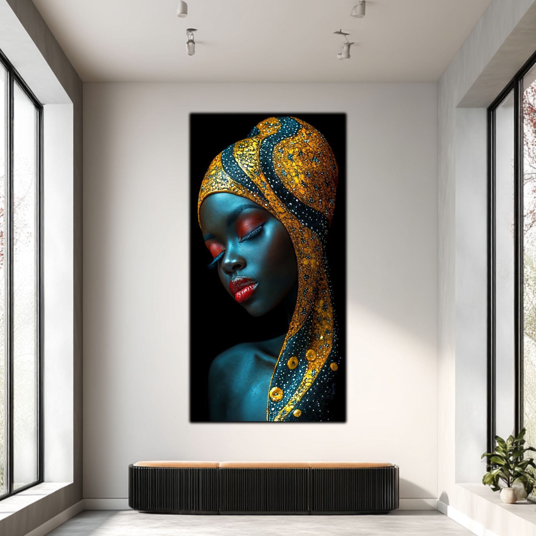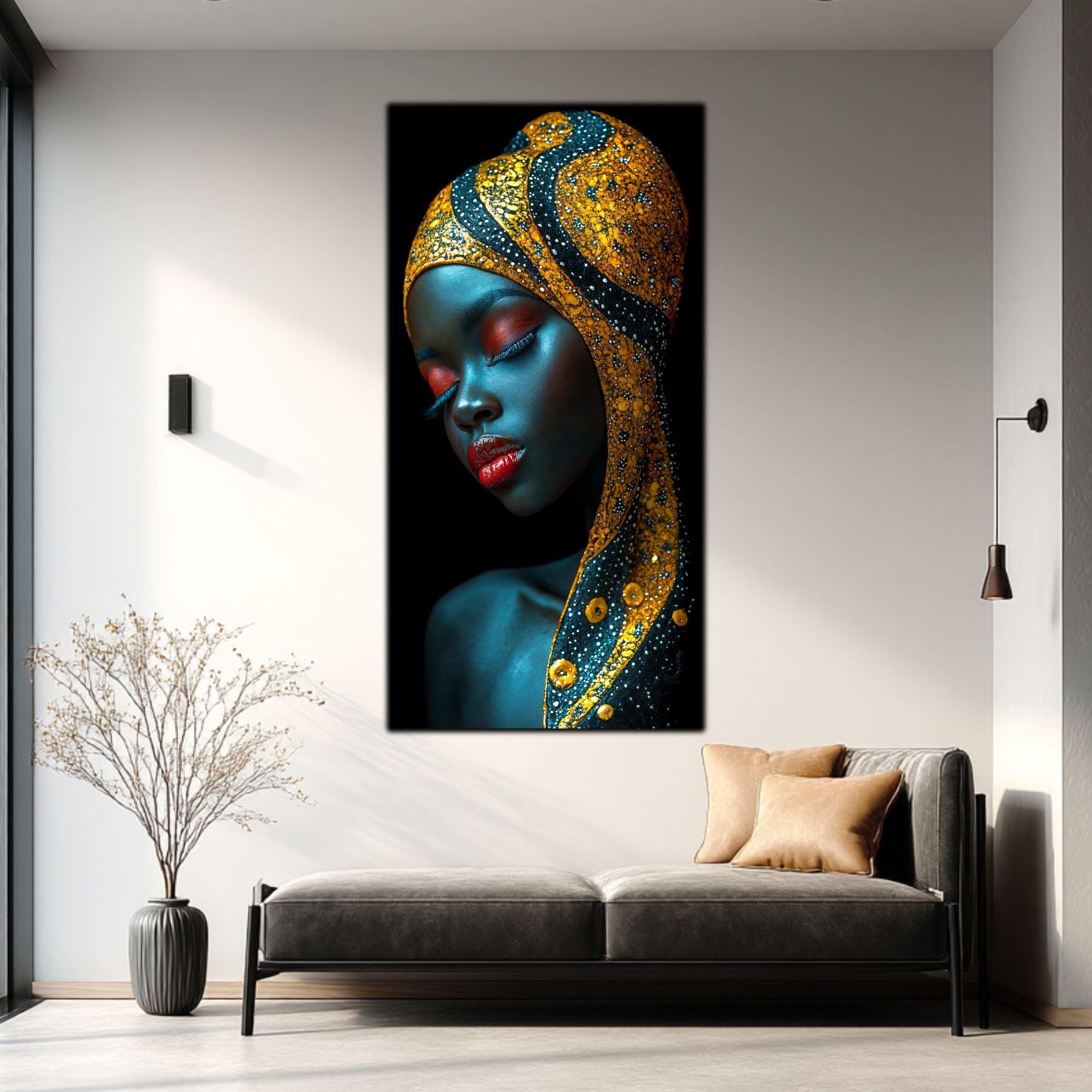 Tablou unicat din sticla securizata — printat UV la cea mai inalta calitate Colectie exclusiva ART-ZEN cu portrete africane, dimensiune remarcabila: 60x120 cm sau 80x120 cm