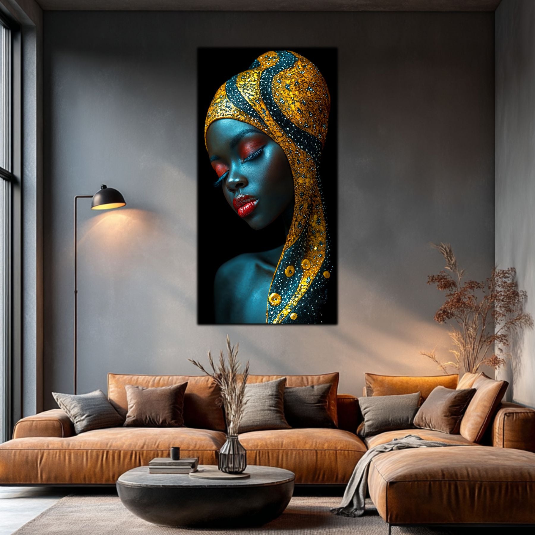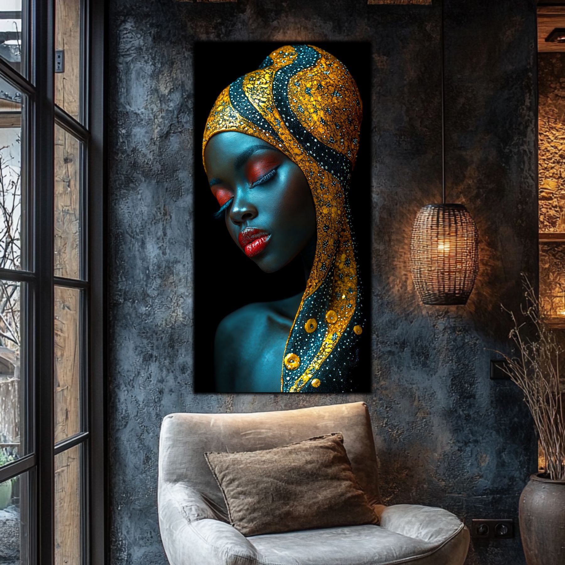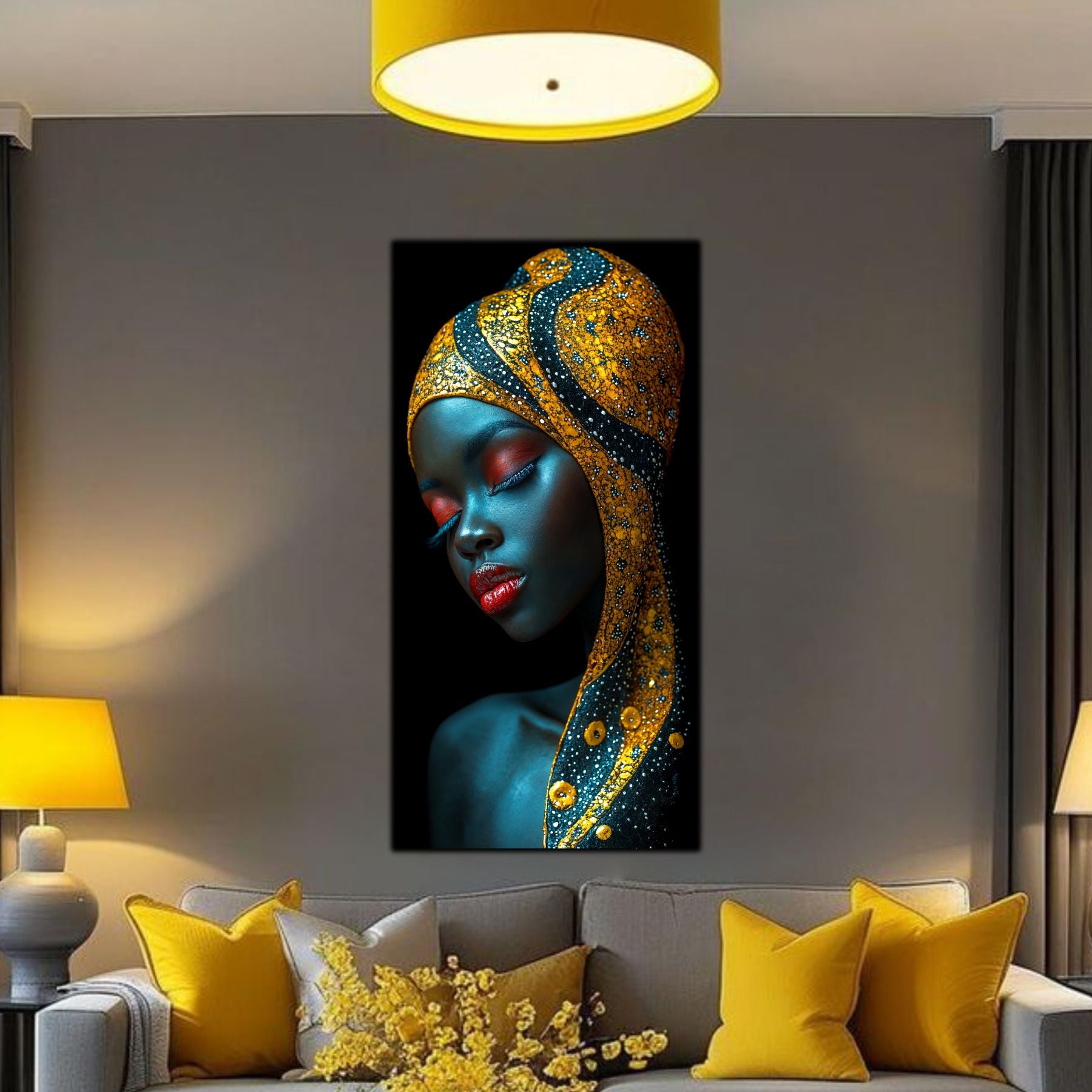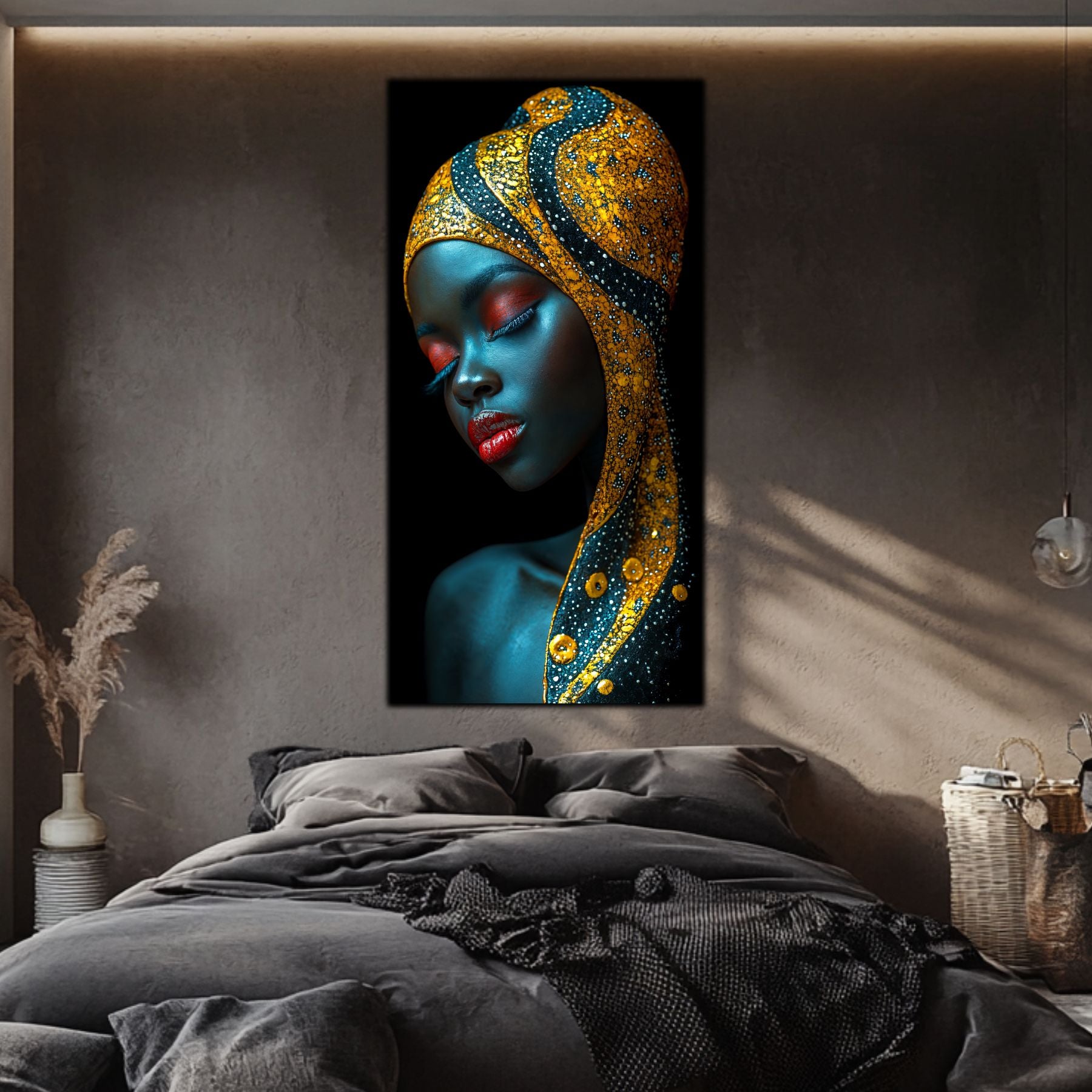 Tablou unicat din sticla securizata — printat UV la cea mai inalta calitate Colectie exclusiva ART-ZEN cu portrete africane, dimensiune remarcabila: 60x120 cm sau 80x120 cm