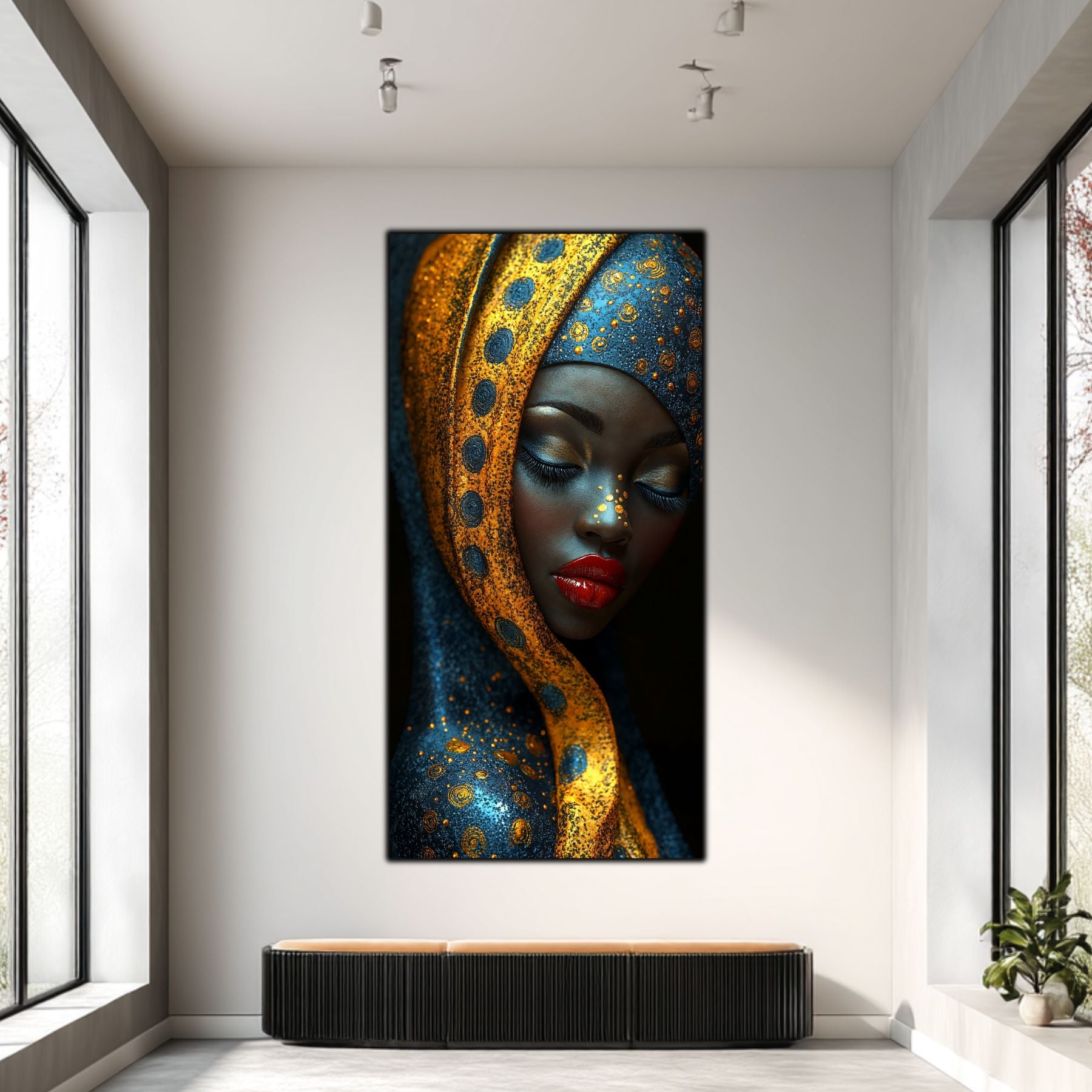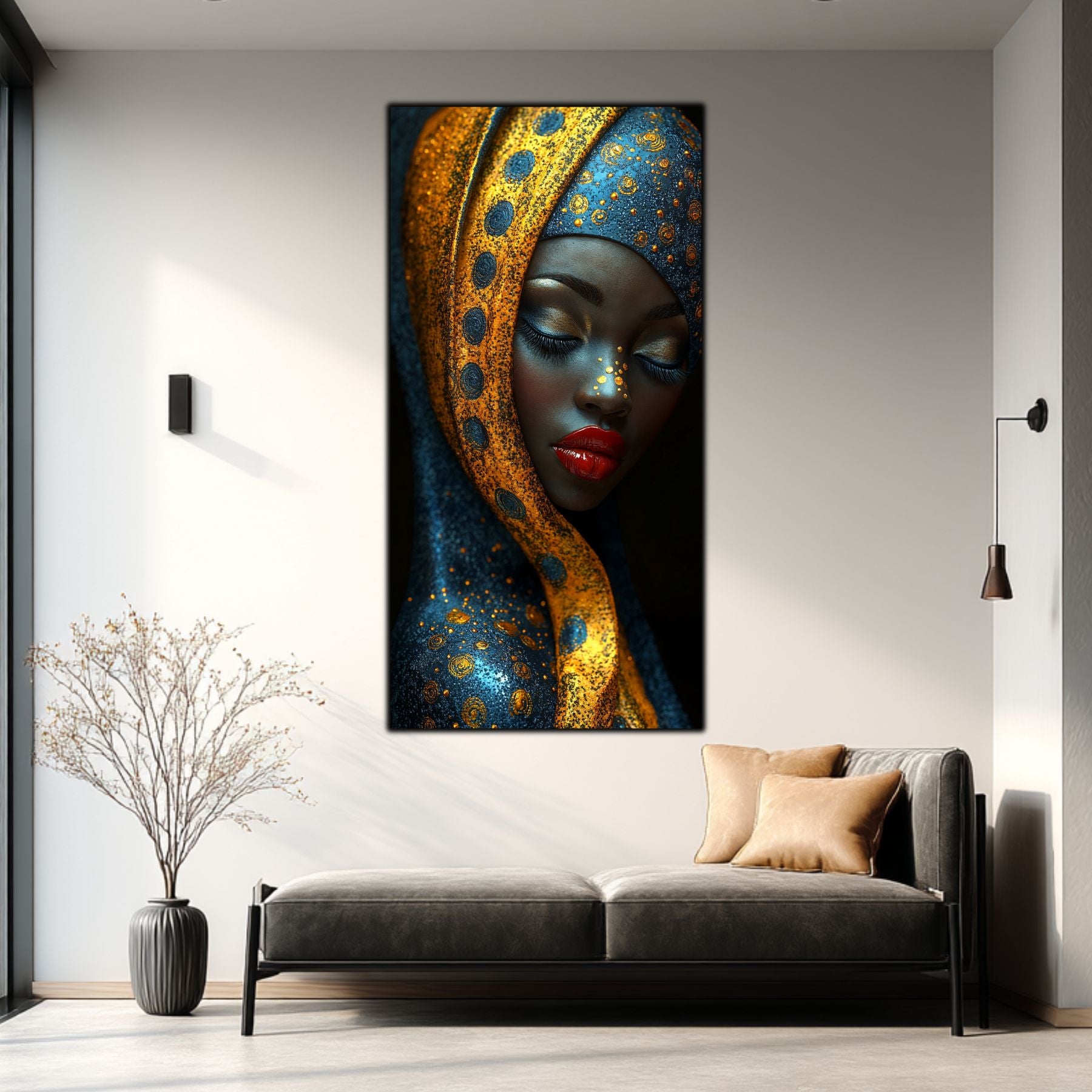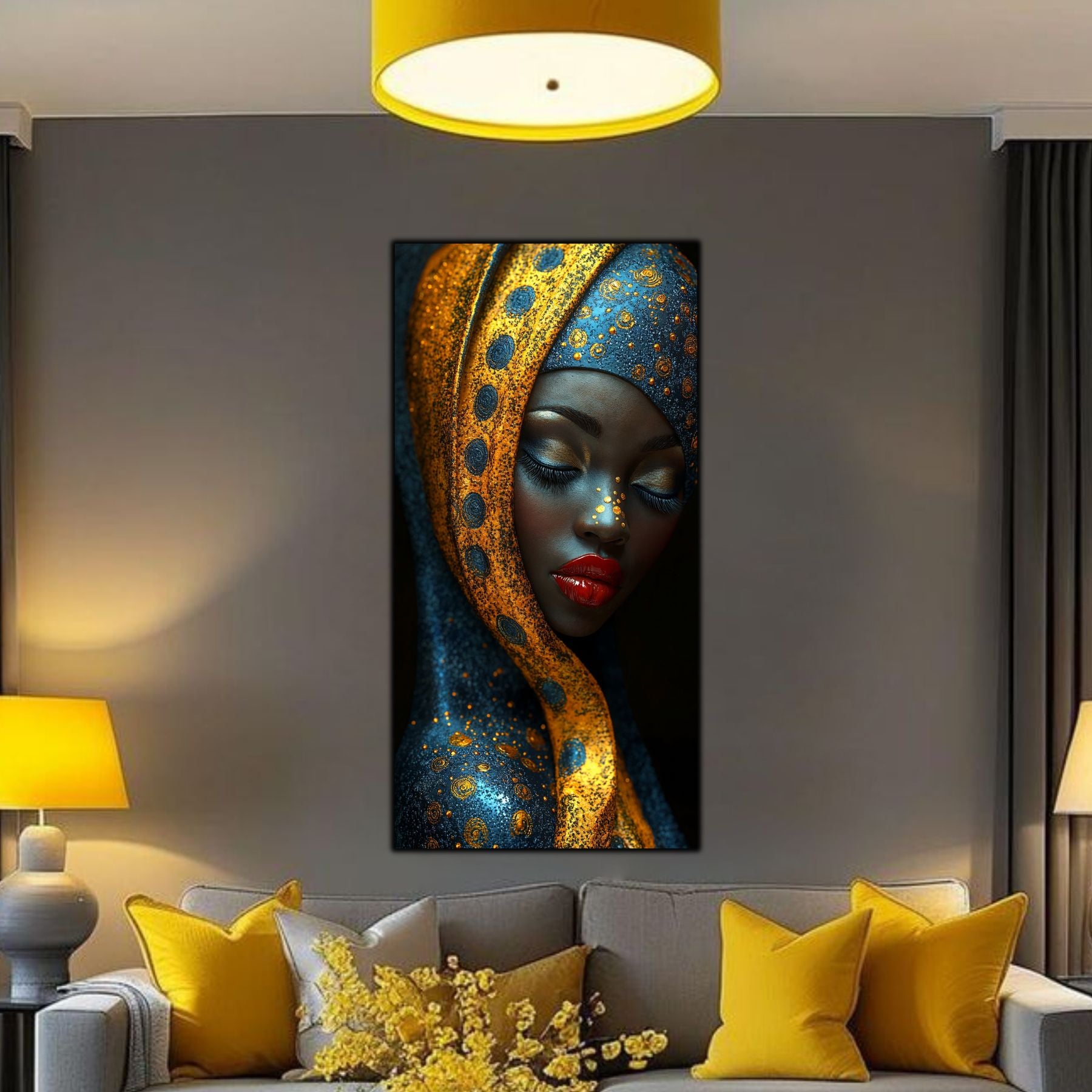 Tablou unicat din sticla securizata — printat UV la cea mai inalta calitate Colectie exclusiva ART-ZEN cu portrete africane, dimensiune remarcabila: 60x120 cm sau 80x120 cm