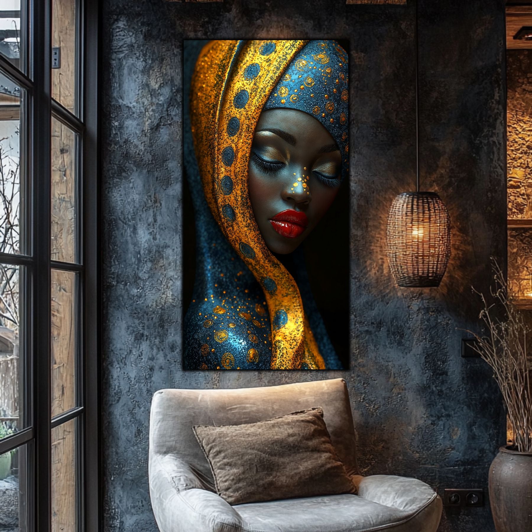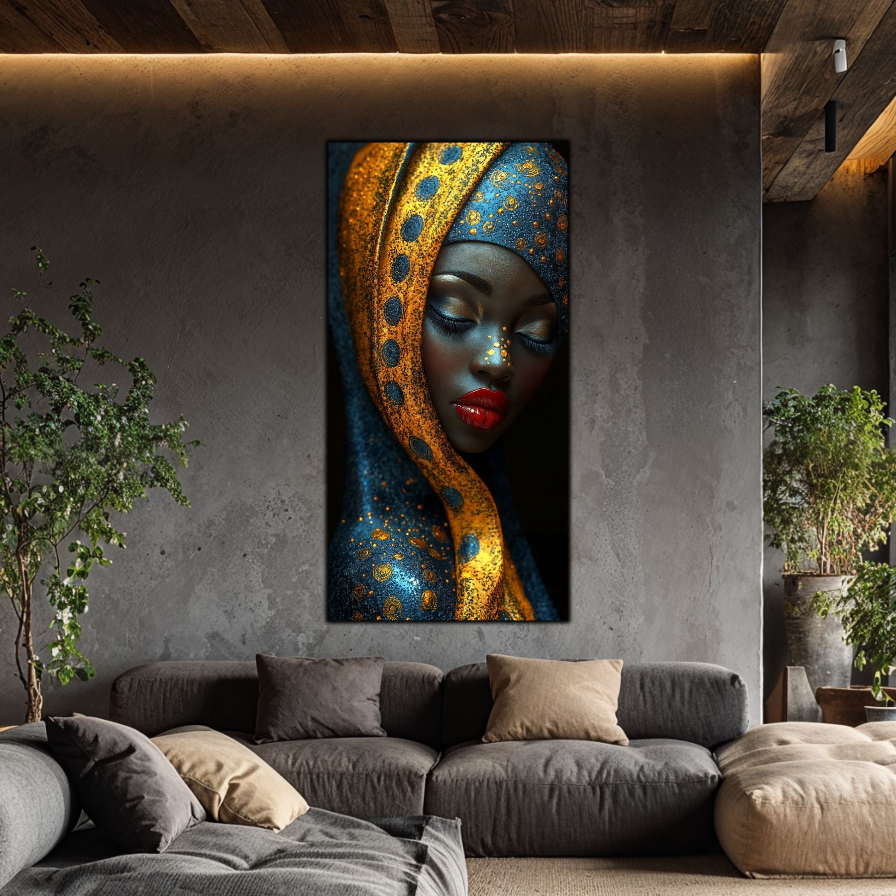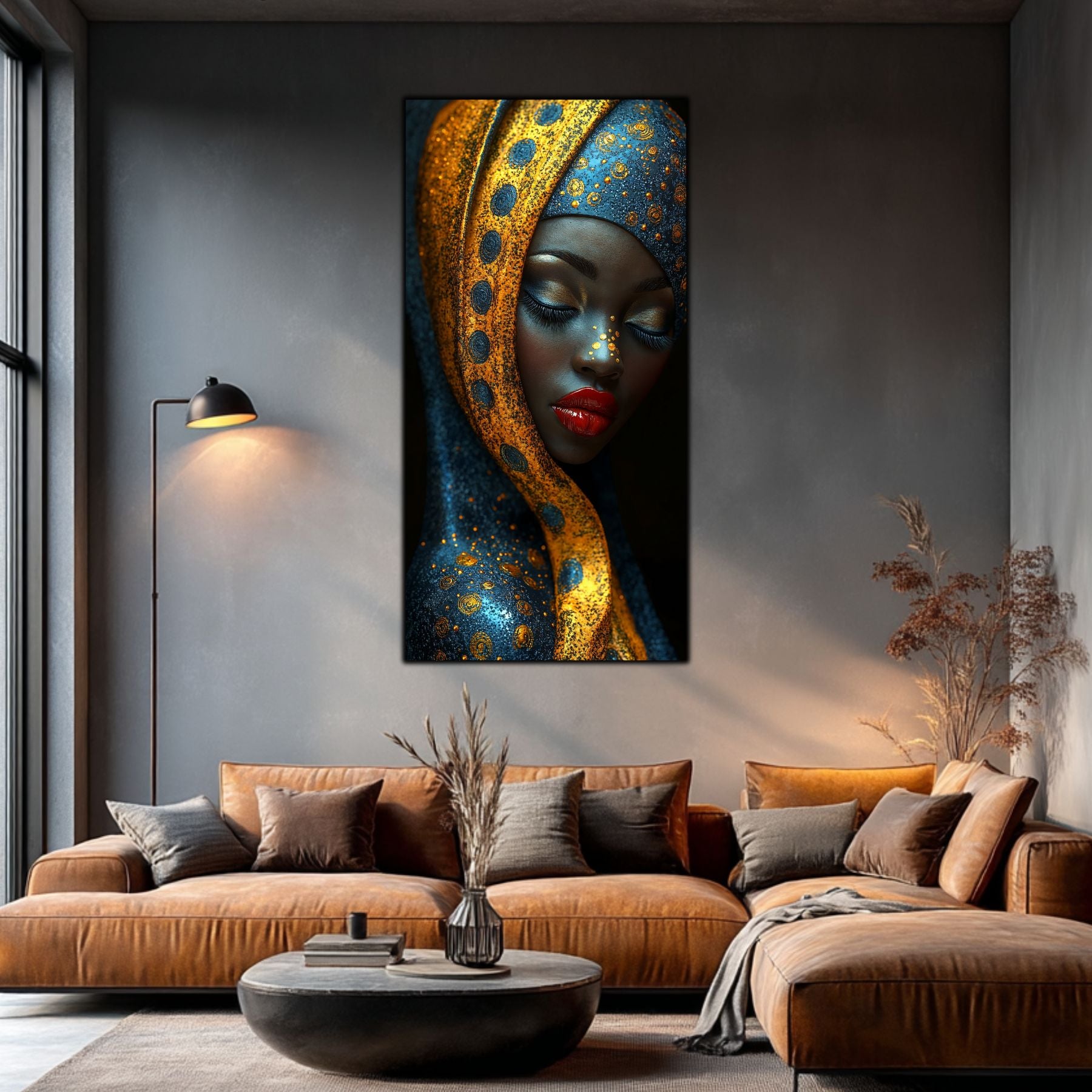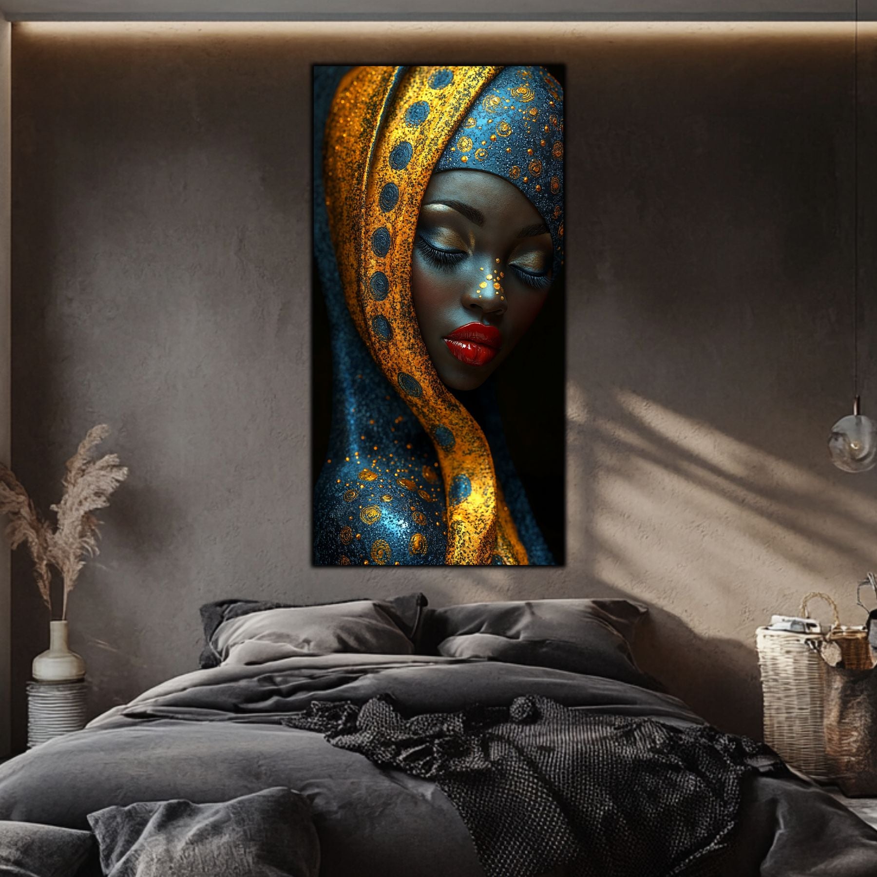 Tablou unicat din sticla securizata — printat UV la cea mai inalta calitate Colectie exclusiva ART-ZEN cu portrete africane, dimensiune remarcabila: 60x120 cm sau 80x120 cm