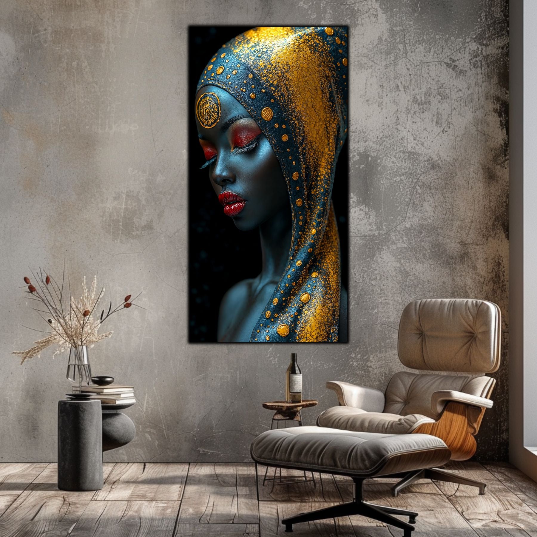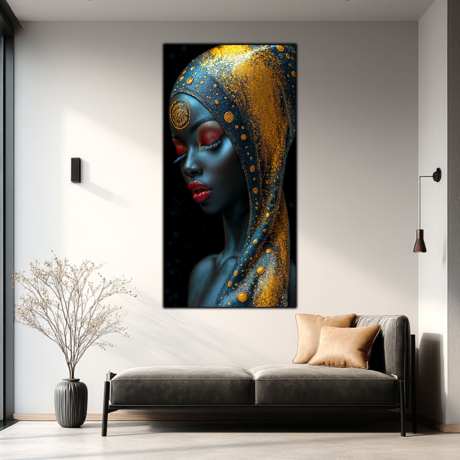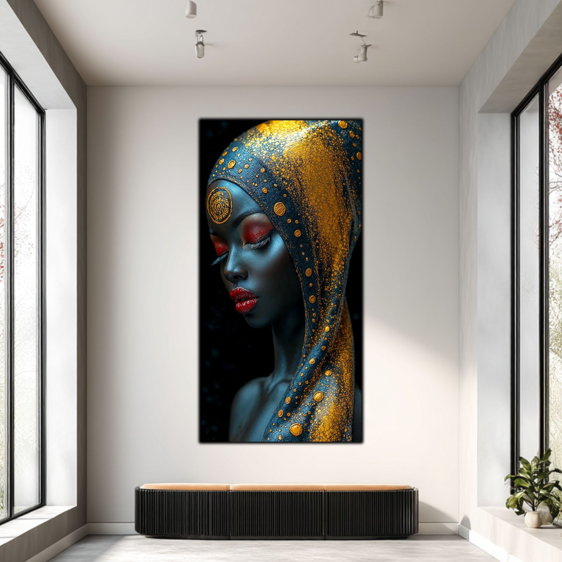 Tablou unicat din sticla securizata — printat UV la cea mai inalta calitate Colectie exclusiva ART-ZEN cu portrete africane, dimensiune remarcabila: 60x120 cm sau 80x120 cm
