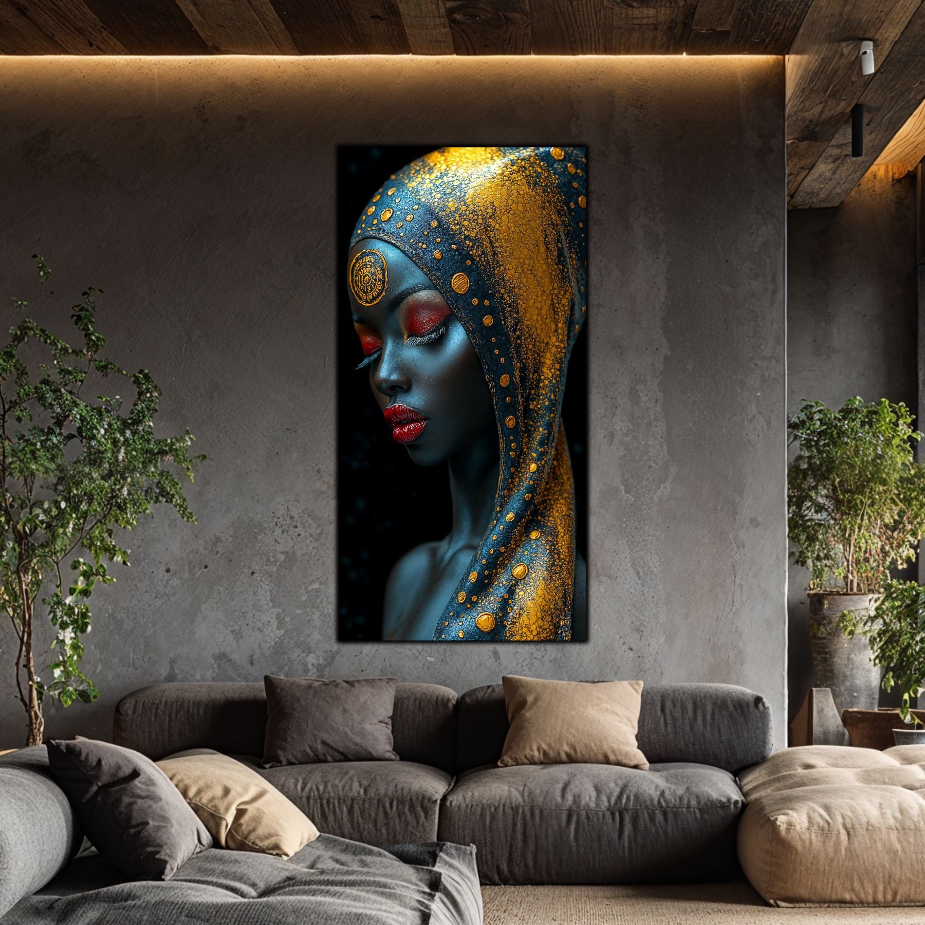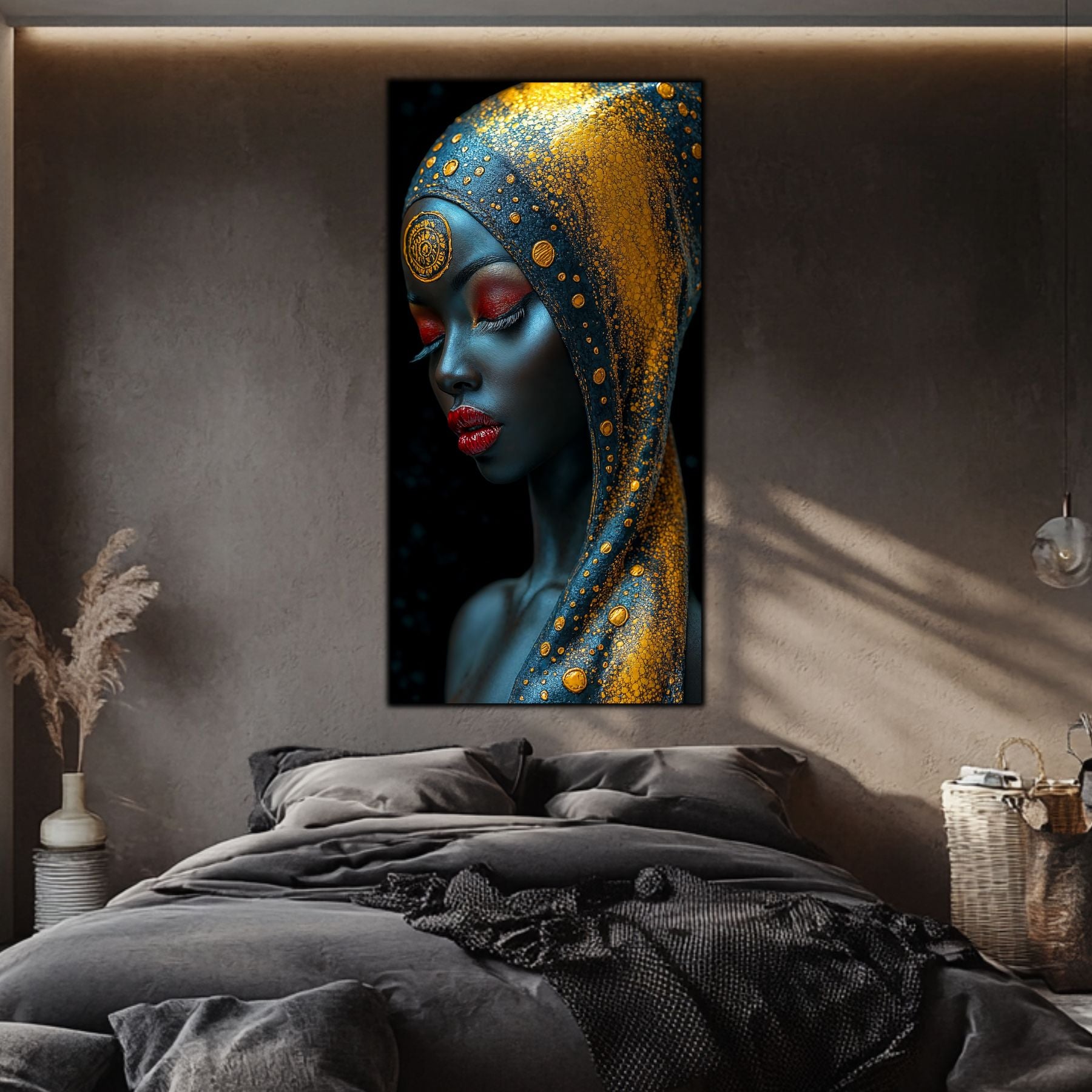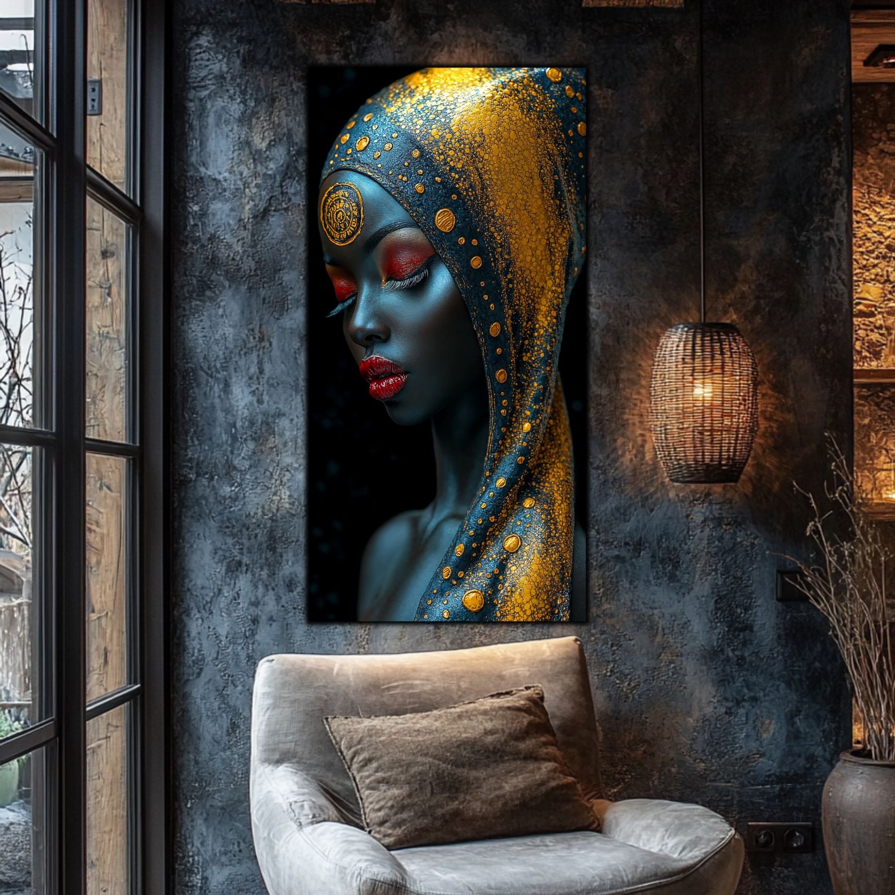 Tablou unicat din sticla securizata — printat UV la cea mai inalta calitate Colectie exclusiva ART-ZEN cu portrete africane, dimensiune remarcabila: 60x120 cm sau 80x120 cm