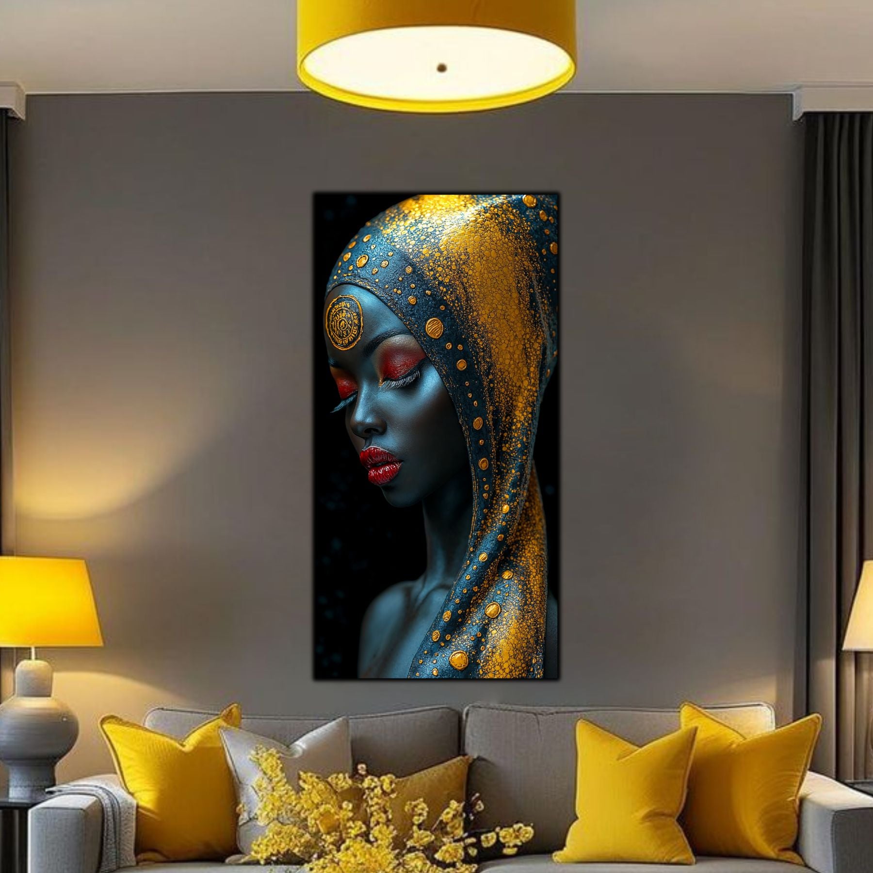 Imaginile prezentate sunt randari digitale realizate pentru a evidentia frumusetea tablourilor. Ele nu respecta proportiile reale in raport cu spatiul, fiind doar o interpretare artistica a modului in care acestea ar putea fi integrate intr-un decor. Va invit sa le „probati” mental pe peretii casei voastre si sa descoperiti cum isi gasesc locul in realitate.