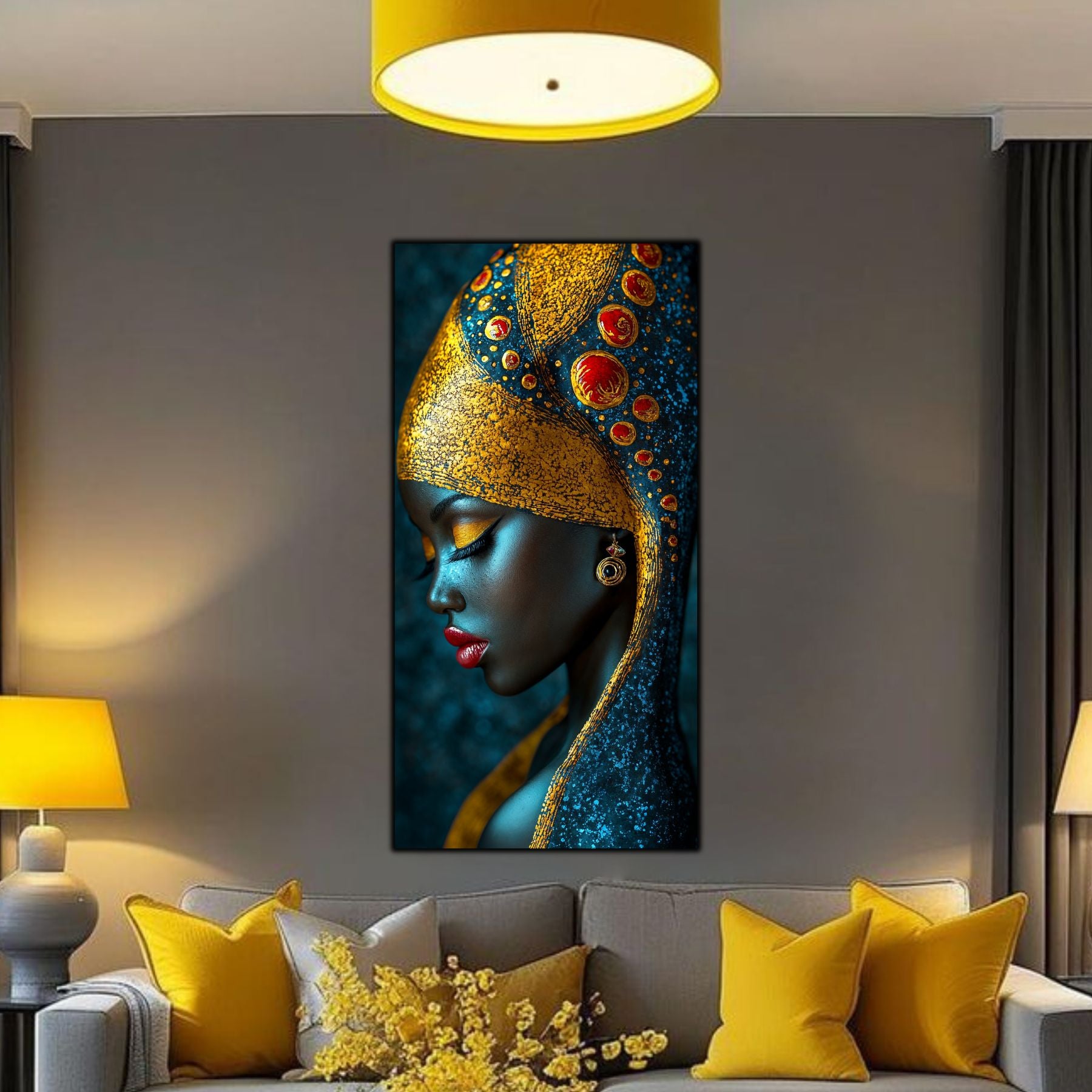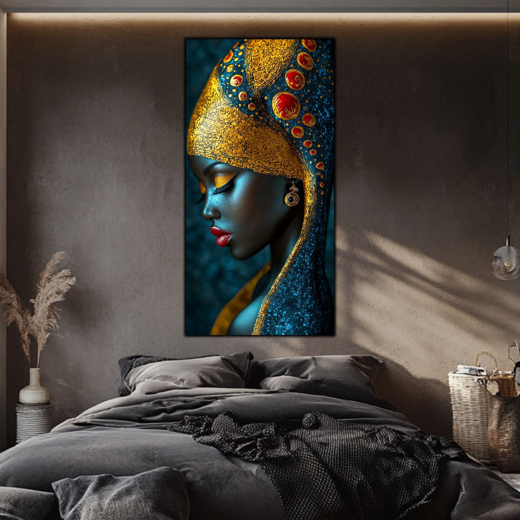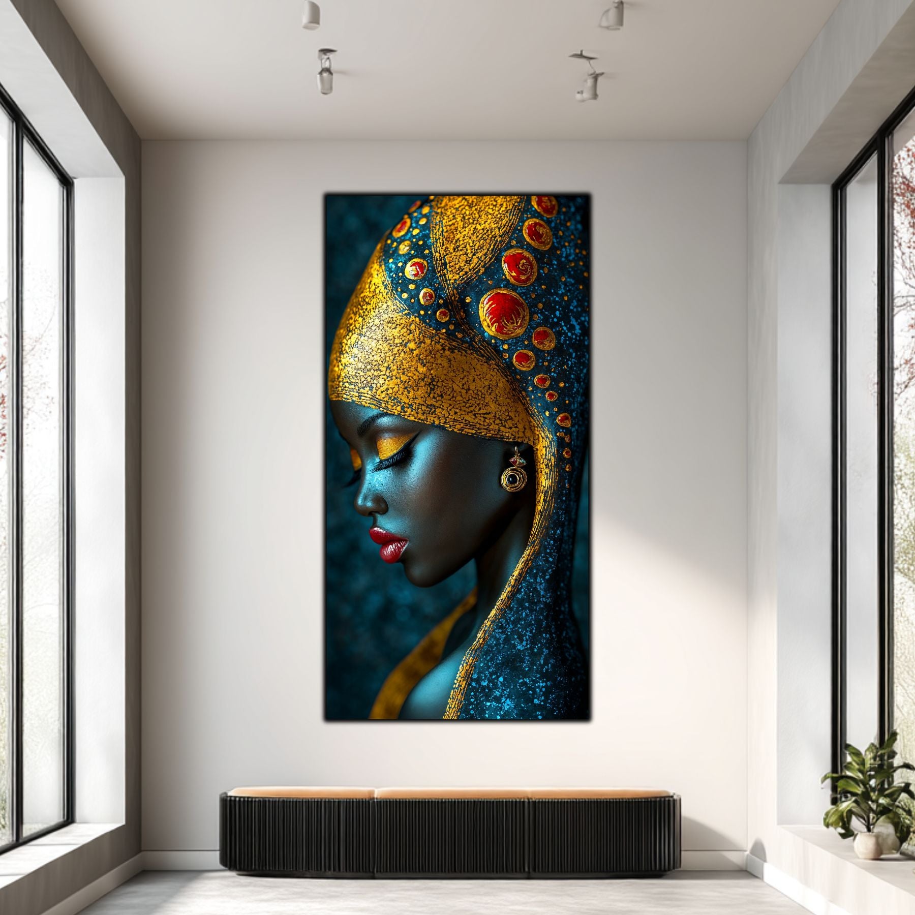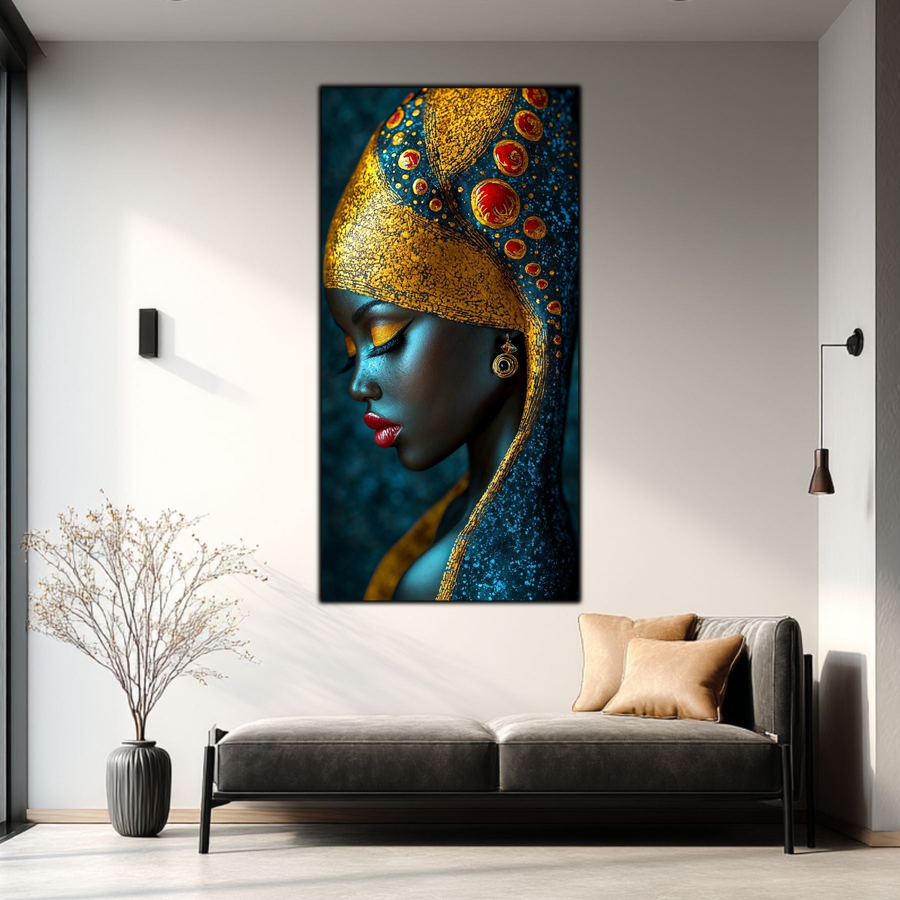 Tablou unicat din sticla securizata — printat UV la cea mai inalta calitate Colectie exclusiva ART-ZEN cu portrete africane, dimensiune remarcabila: 60x120 cm sau 80x120 cm