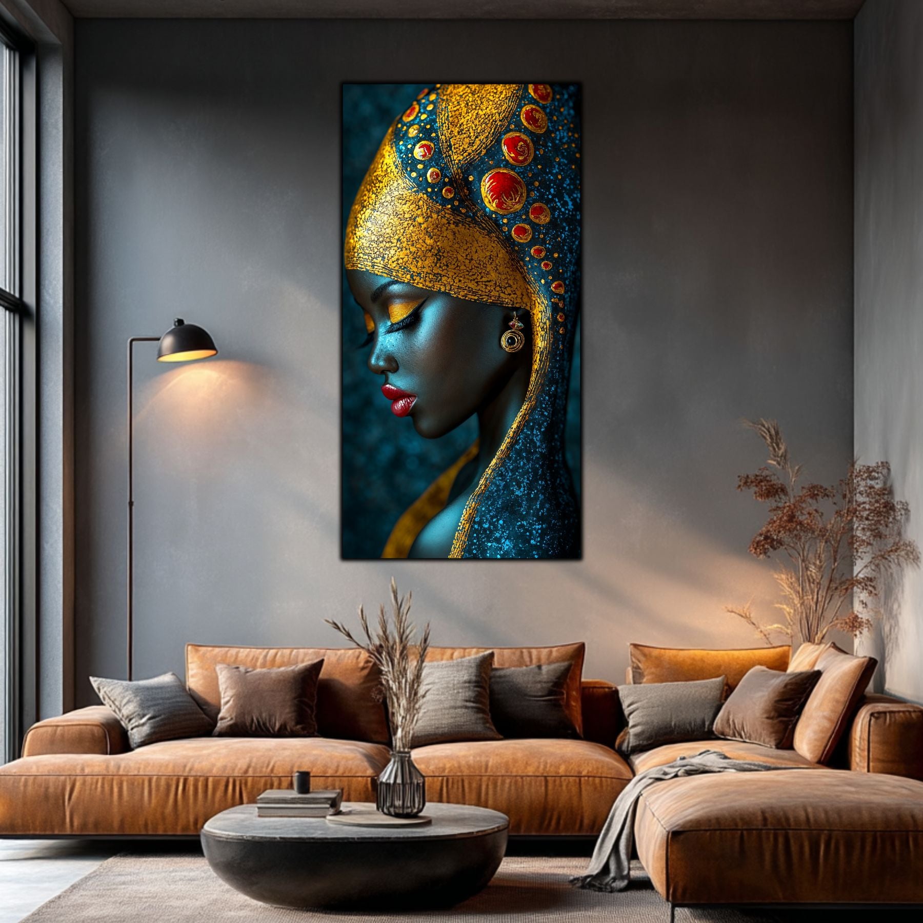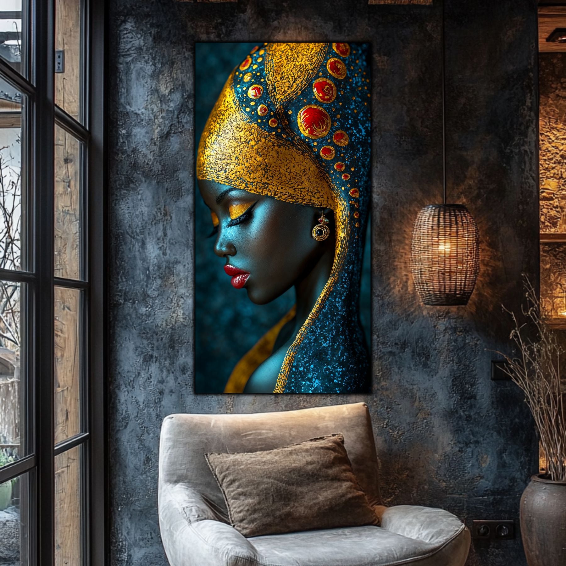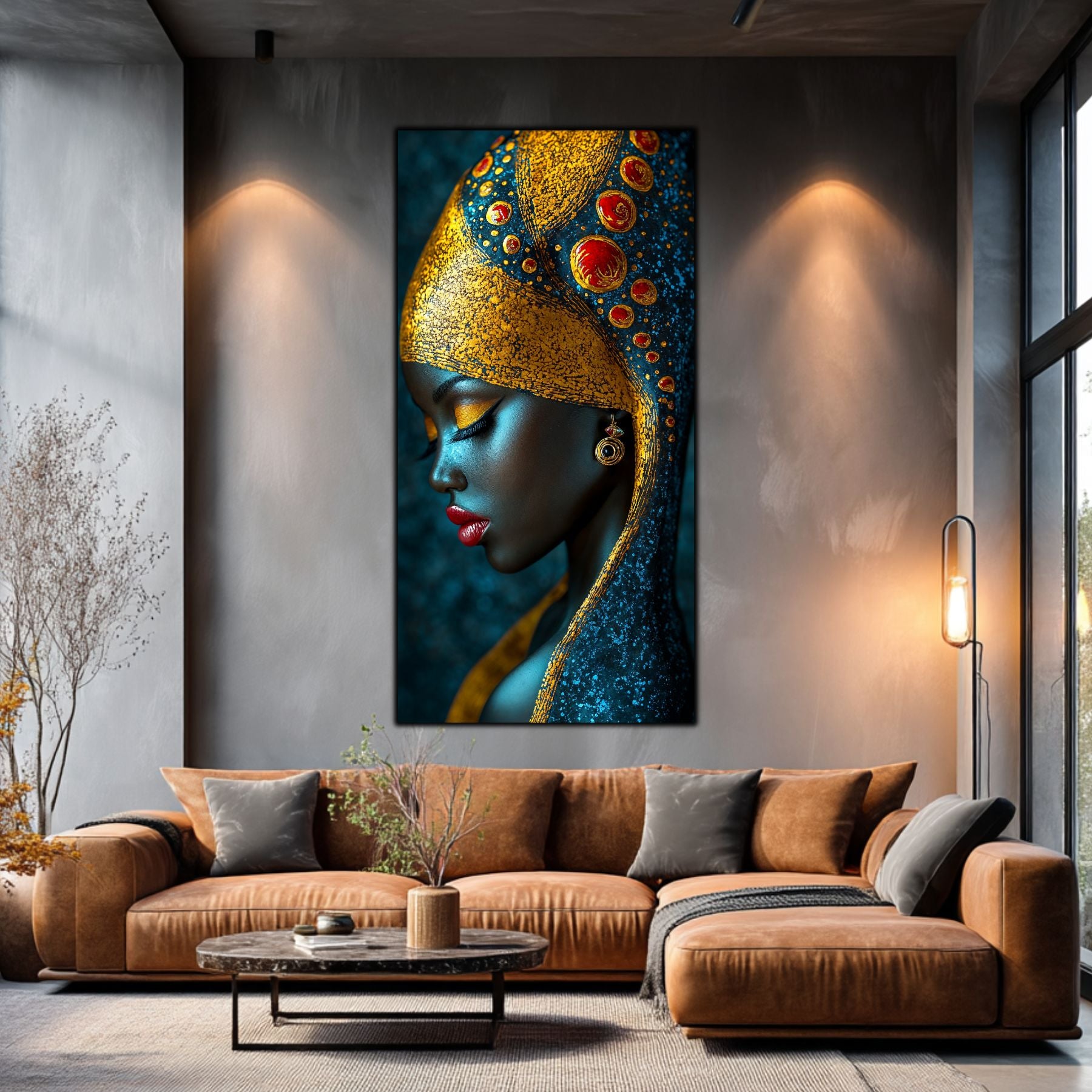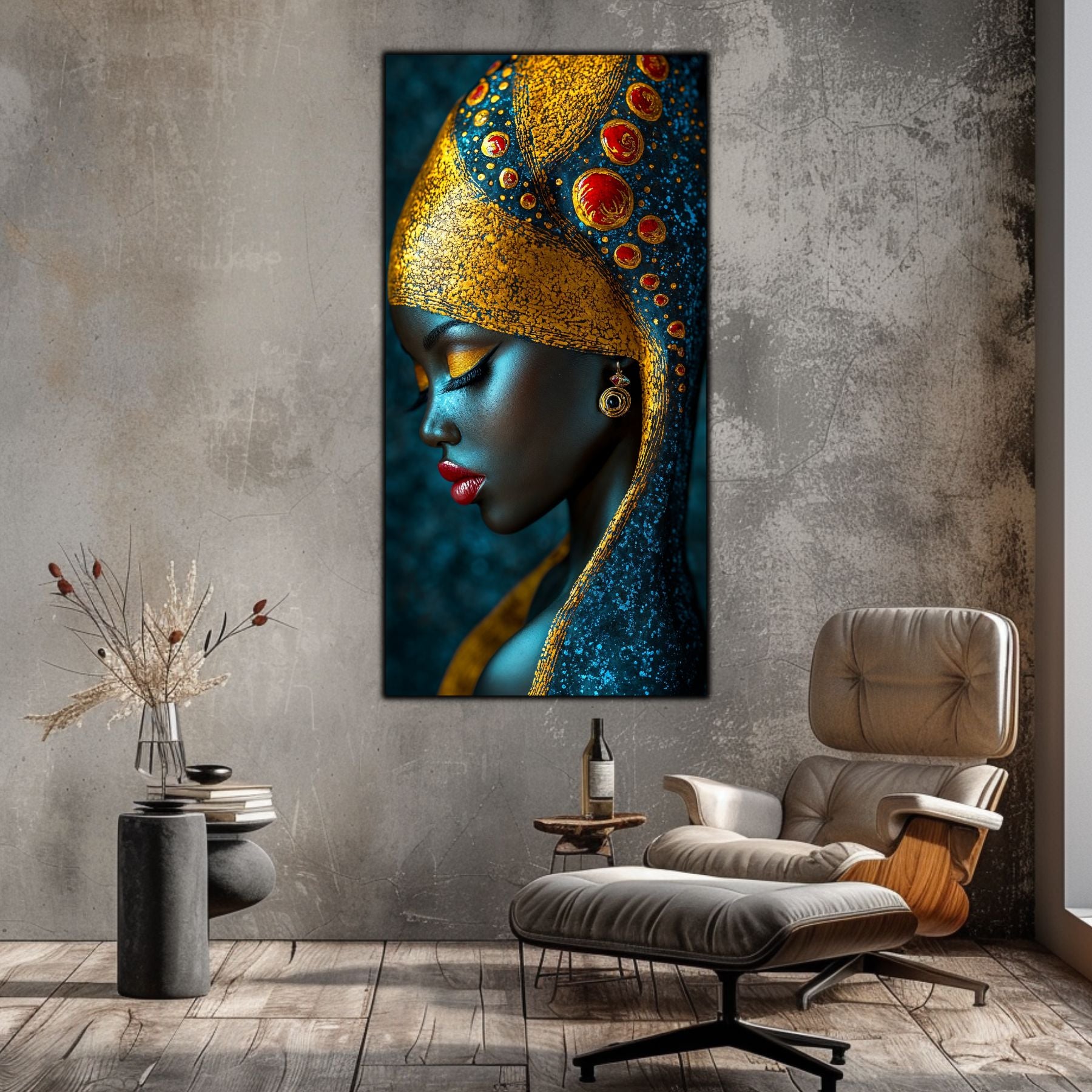 Tablou unicat din sticla securizata — printat UV la cea mai inalta calitate Colectie exclusiva ART-ZEN cu portrete africane, dimensiune remarcabila: 60x120 cm sau 80x120 cm
