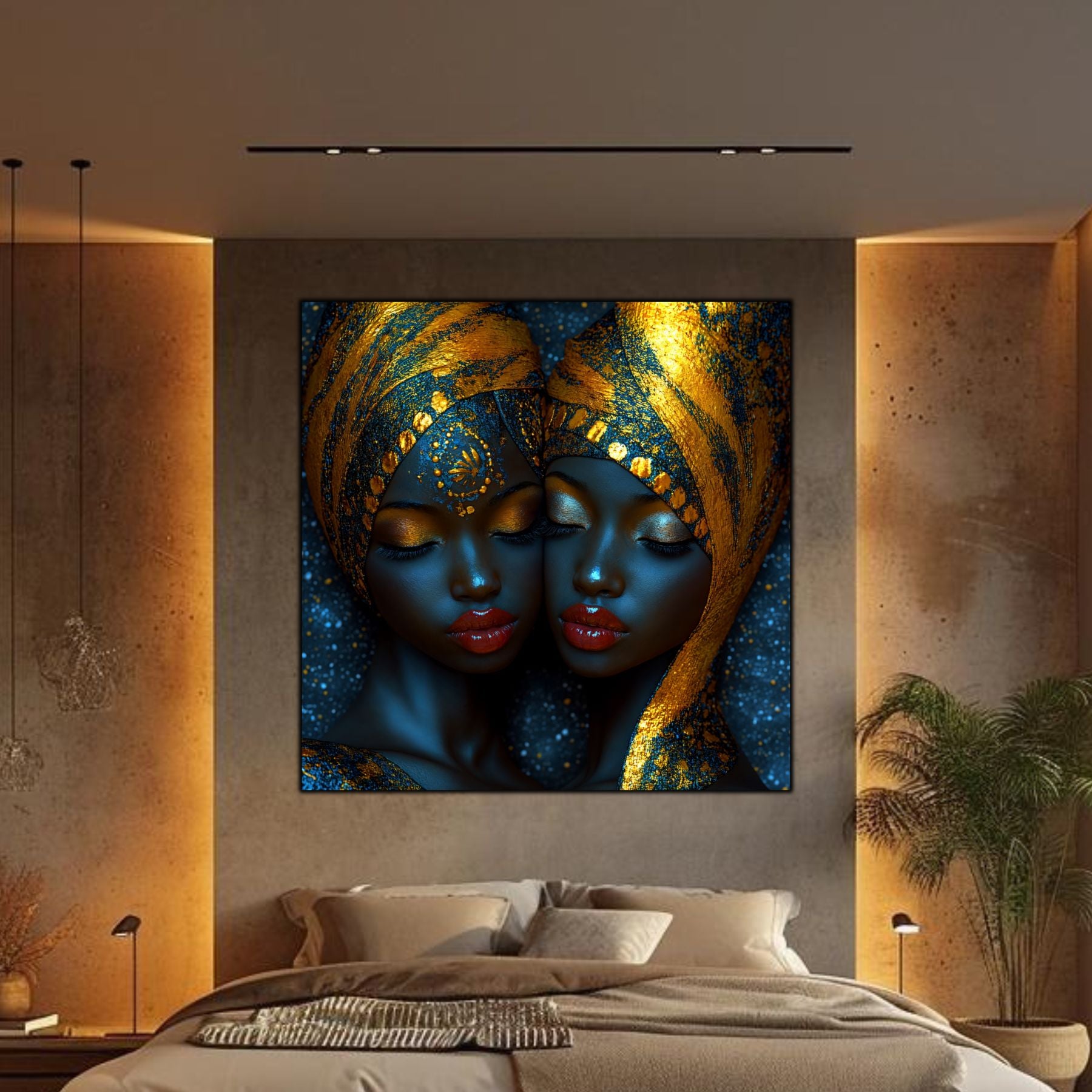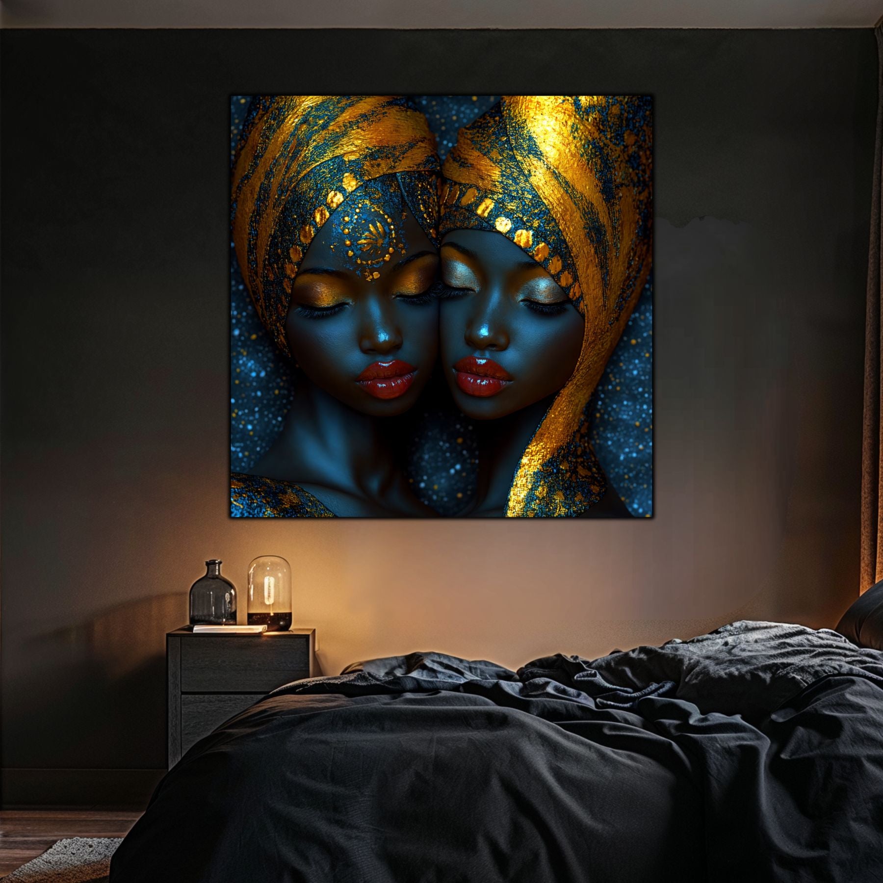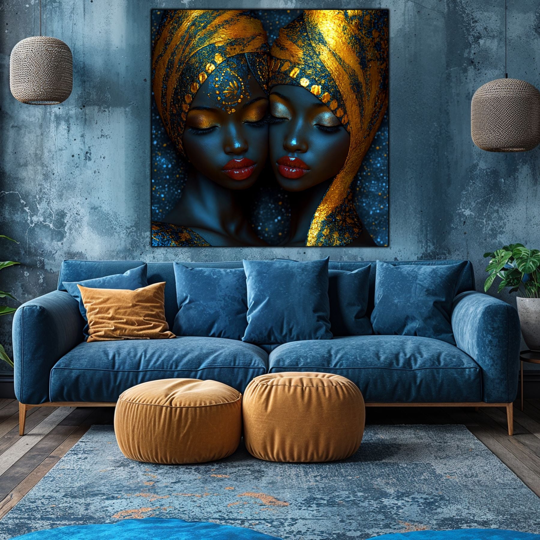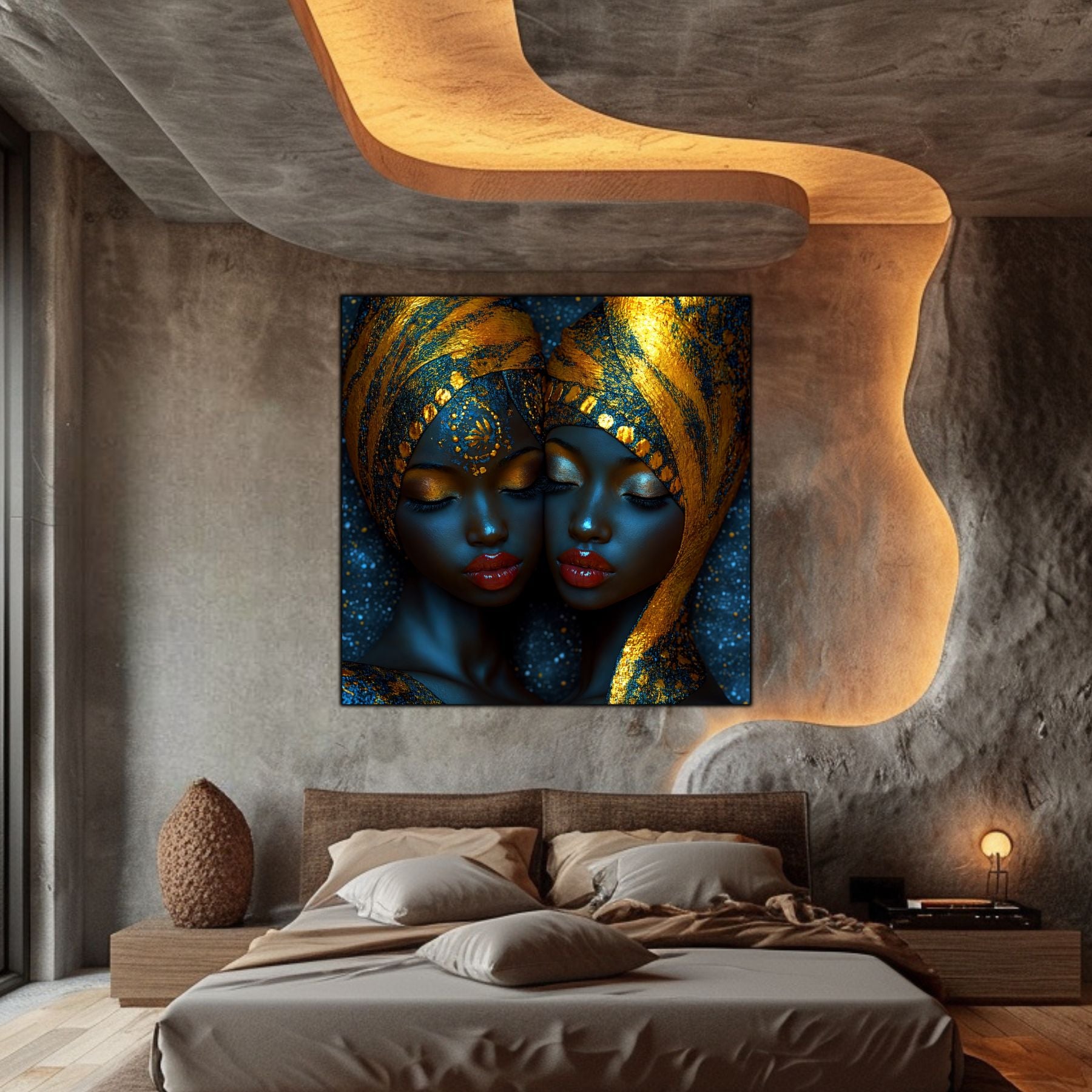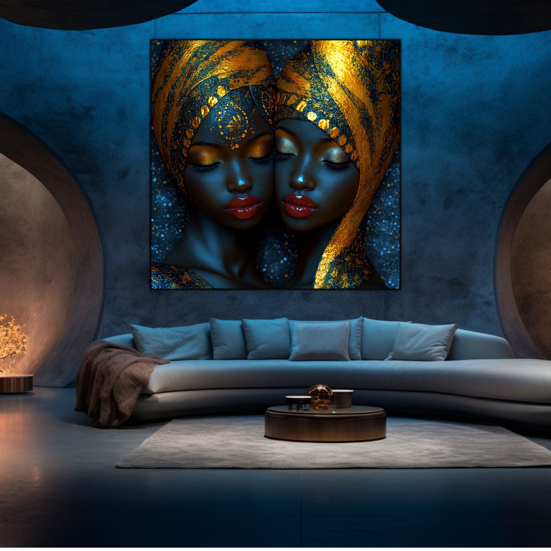 Imaginile prezentate sunt randari digitale realizate pentru a evidentia frumusetea tablourilor. Ele nu respecta proportiile reale in raport cu spatiul, fiind doar o interpretare artistica a modului in care acestea ar putea fi integrate intr-un decor. Va invit sa le „probati” mental pe peretii casei voastre si sa descoperiti cum isi gasesc locul in realitate.