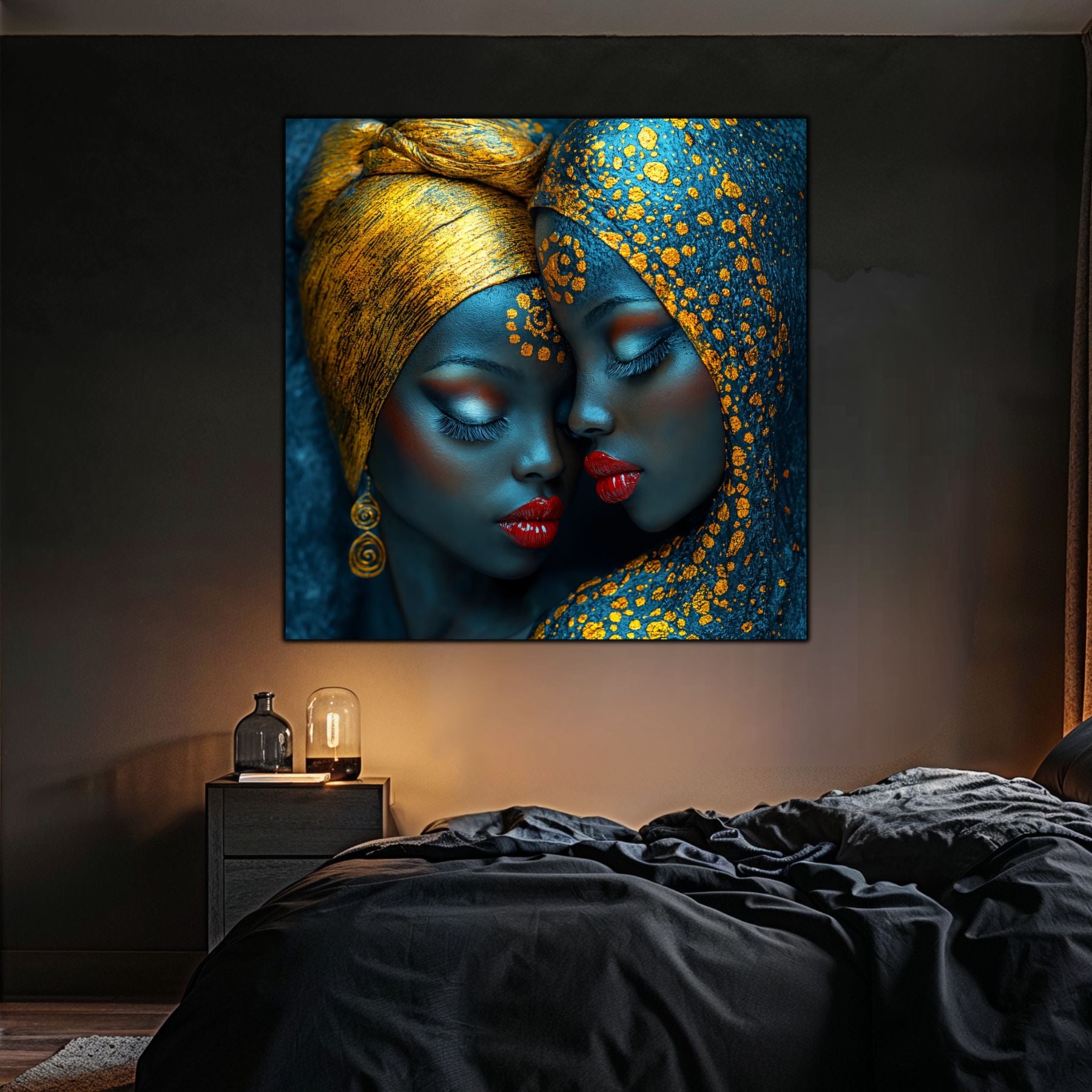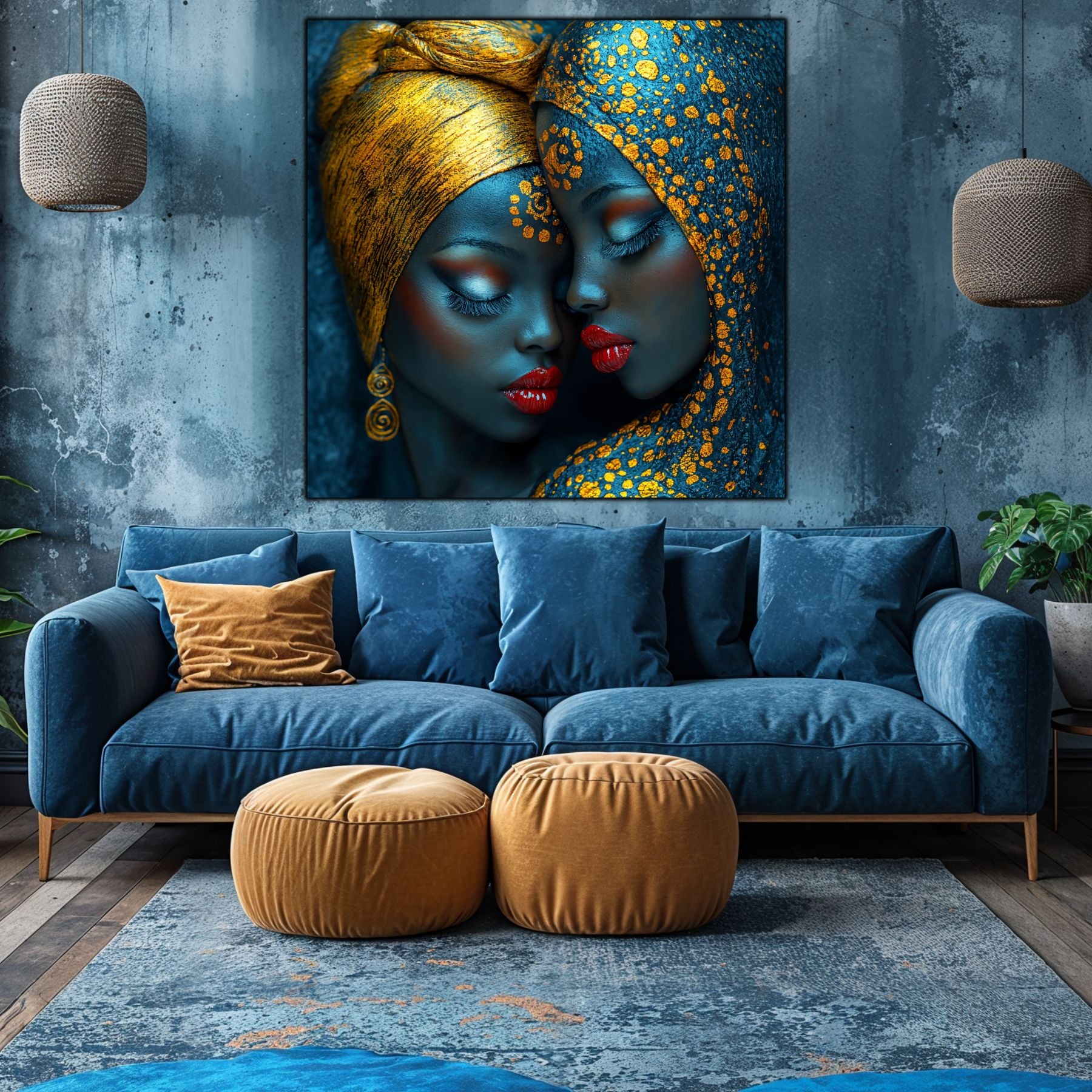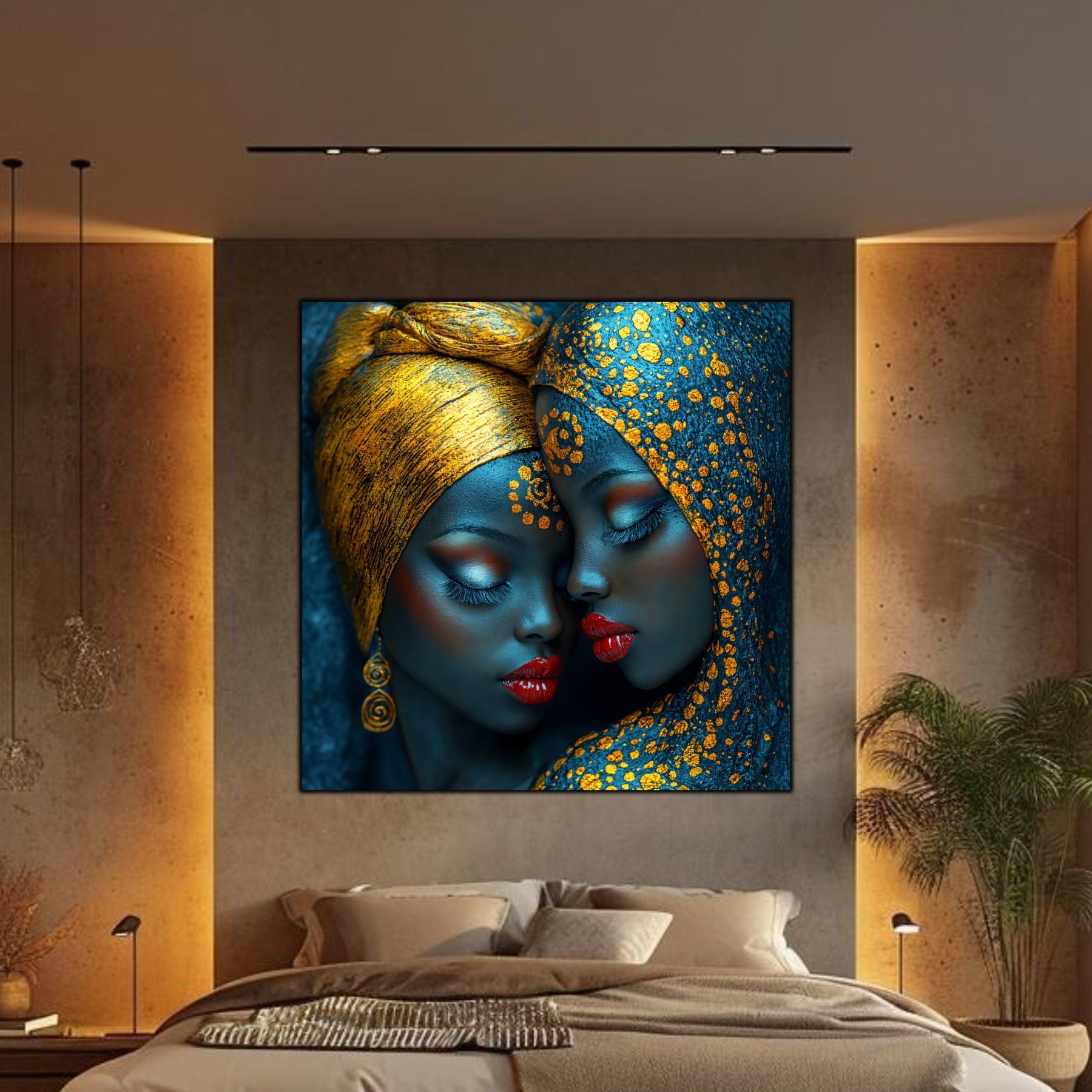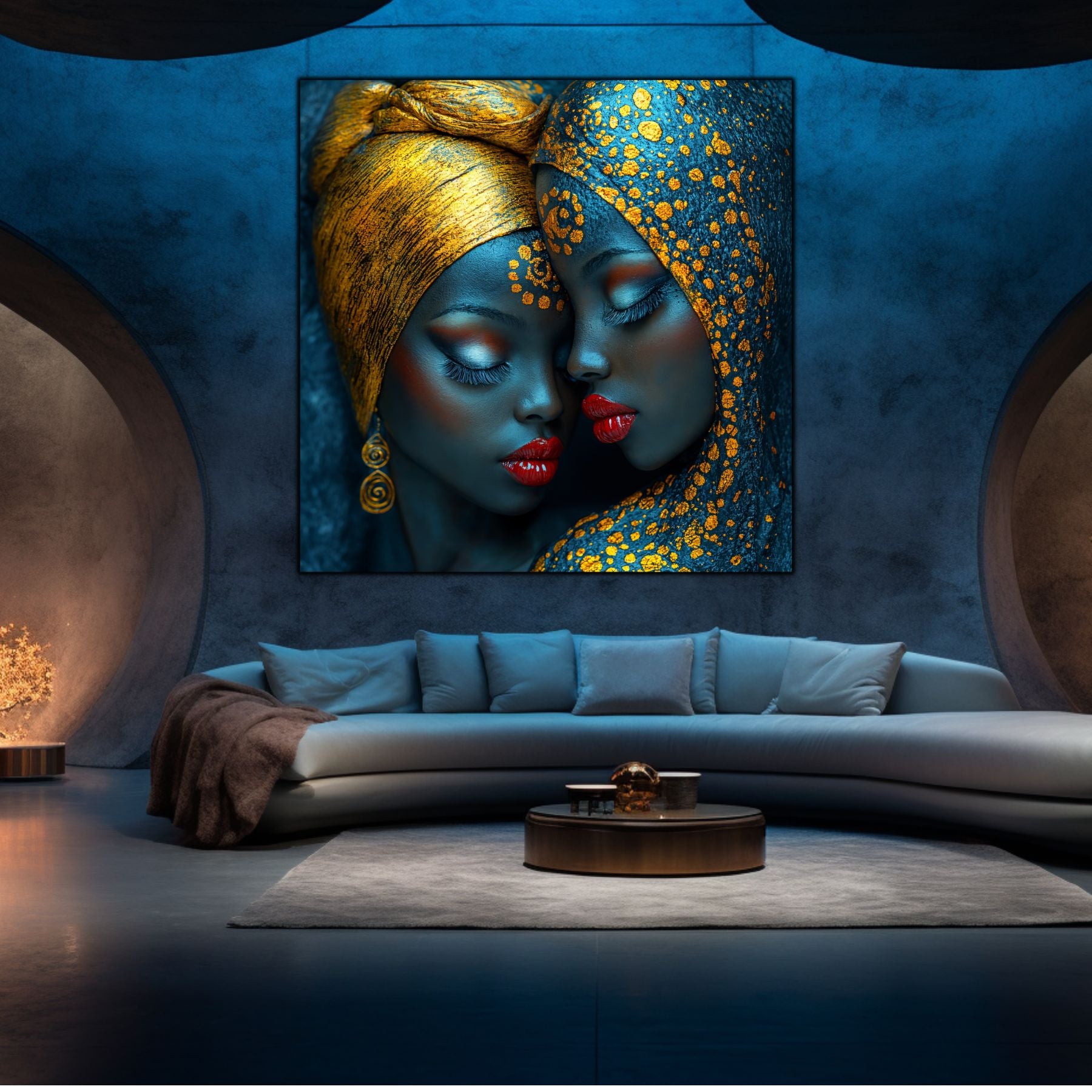 Imaginile prezentate sunt randari digitale realizate pentru a evidentia frumusetea tablourilor. Ele nu respecta proportiile reale in raport cu spatiul, fiind doar o interpretare artistica a modului in care acestea ar putea fi integrate intr-un decor. Va invit sa le „probati” mental pe peretii casei voastre si sa descoperiti cum isi gasesc locul in realitate.
