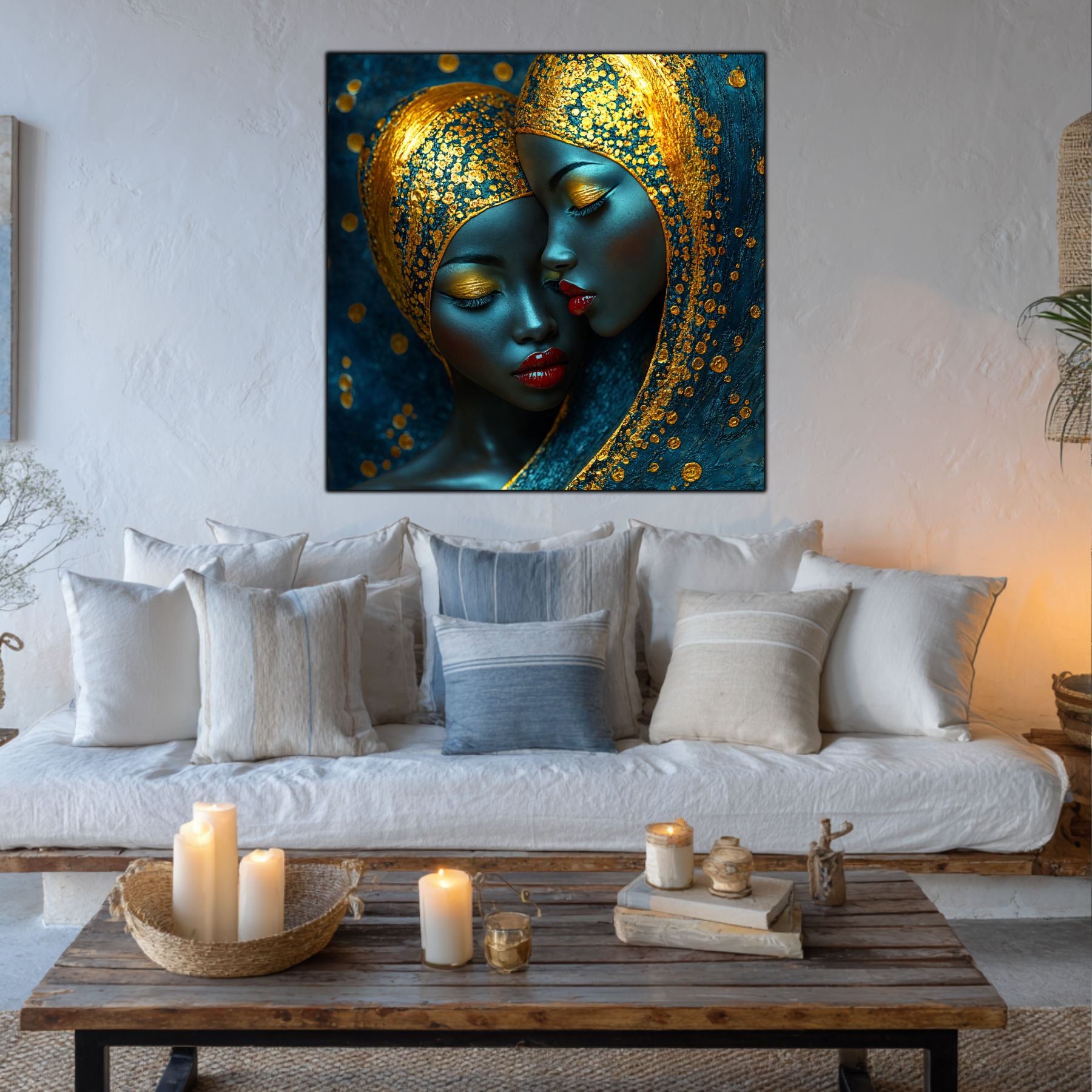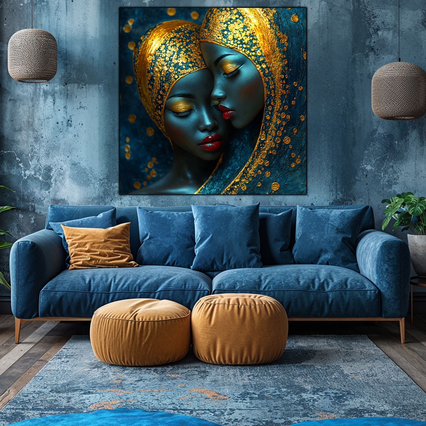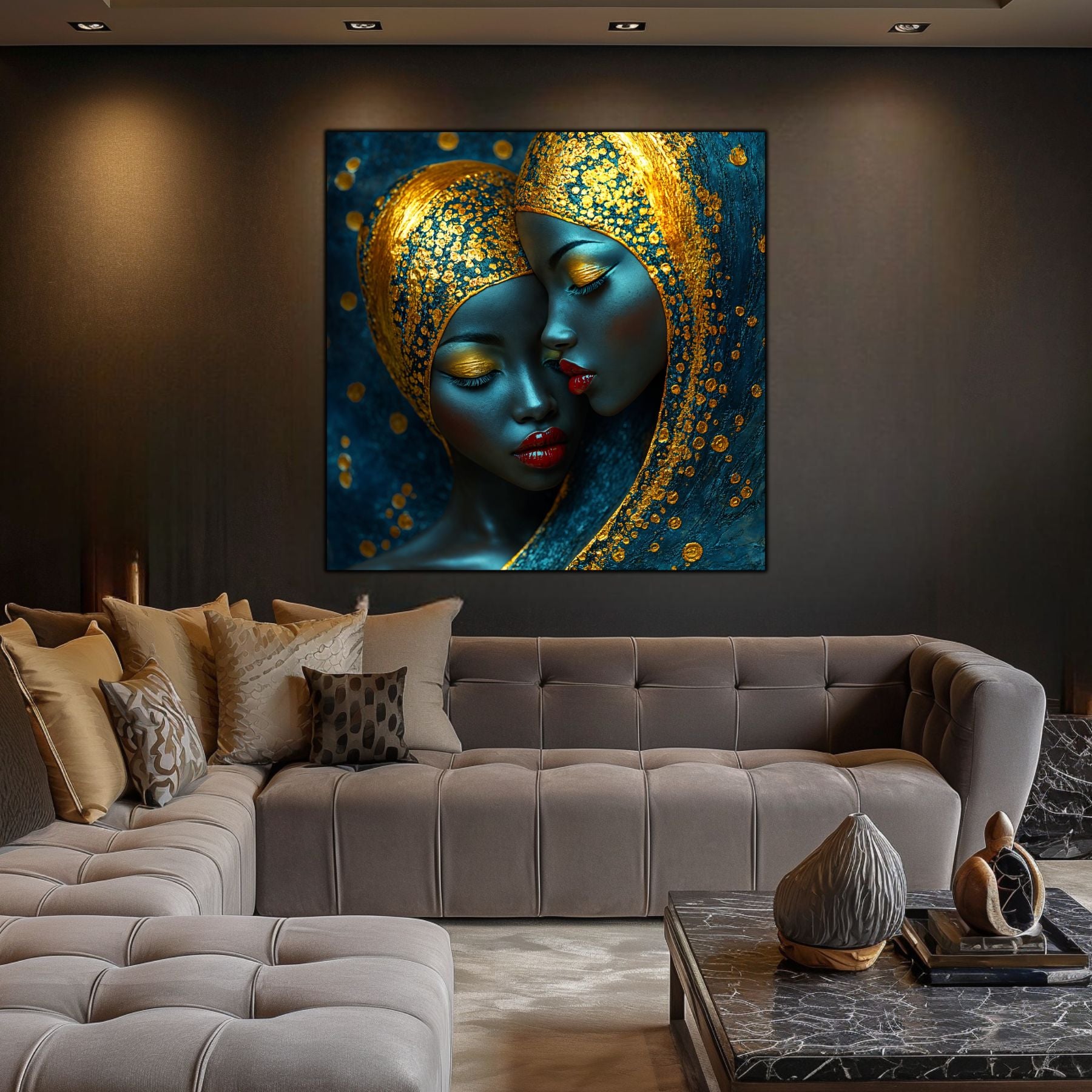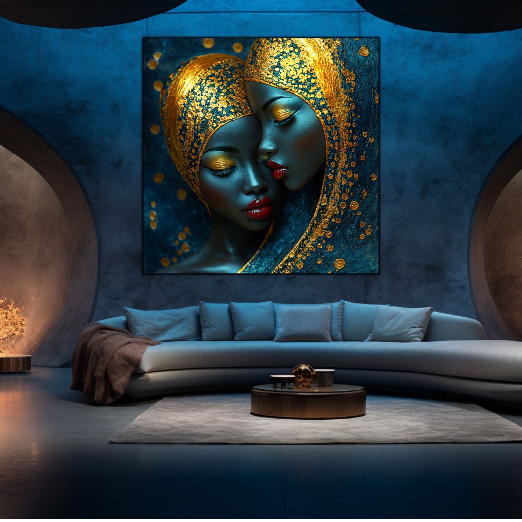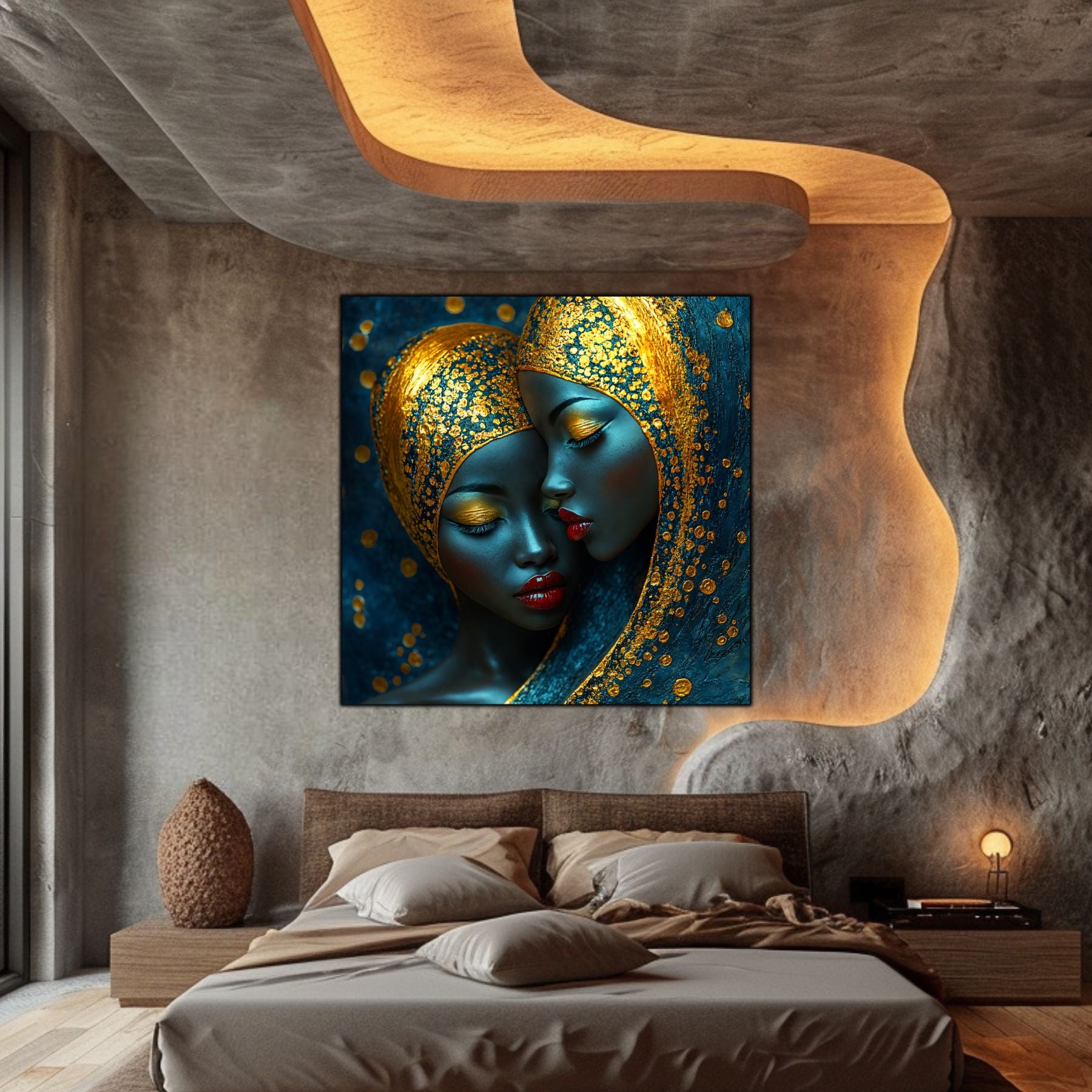 Imaginile prezentate sunt randari digitale realizate pentru a evidentia frumusetea tablourilor. Ele nu respecta proportiile reale in raport cu spatiul, fiind doar o interpretare artistica a modului in care acestea ar putea fi integrate intr-un decor. Va invit sa le „probati” mental pe peretii casei voastre si sa descoperiti cum isi gasesc locul in realitate.