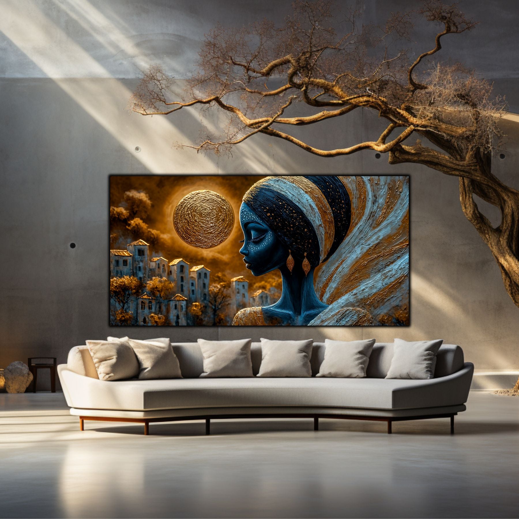 Imaginile prezentate sunt randari digitale realizate pentru a evidentia frumusetea tablourilor. Ele nu respecta proportiile reale in raport cu spatiul, fiind doar o interpretare artistica a modului in care acestea ar putea fi integrate intr-un decor. Va invit sa le „probati” mental pe peretii casei voastre si sa descoperiti cum isi gasesc locul in realitate.