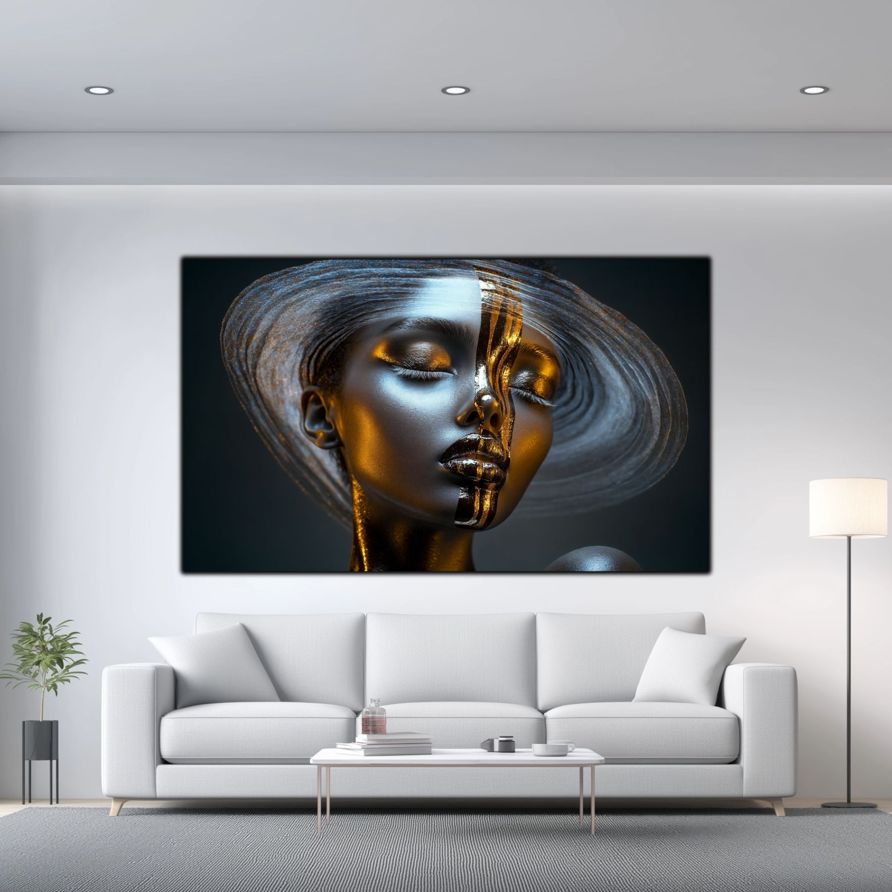 Dark White - Tablou Decorativ Contemporan cu Portret Abstract din Sticla Securizata