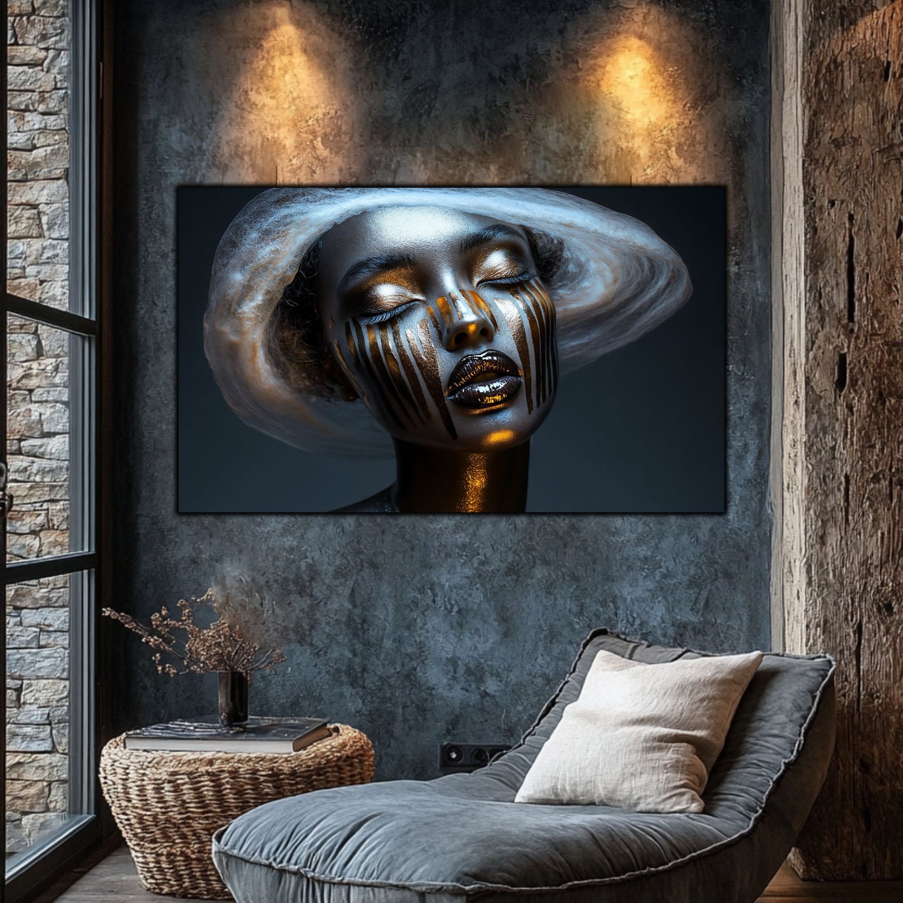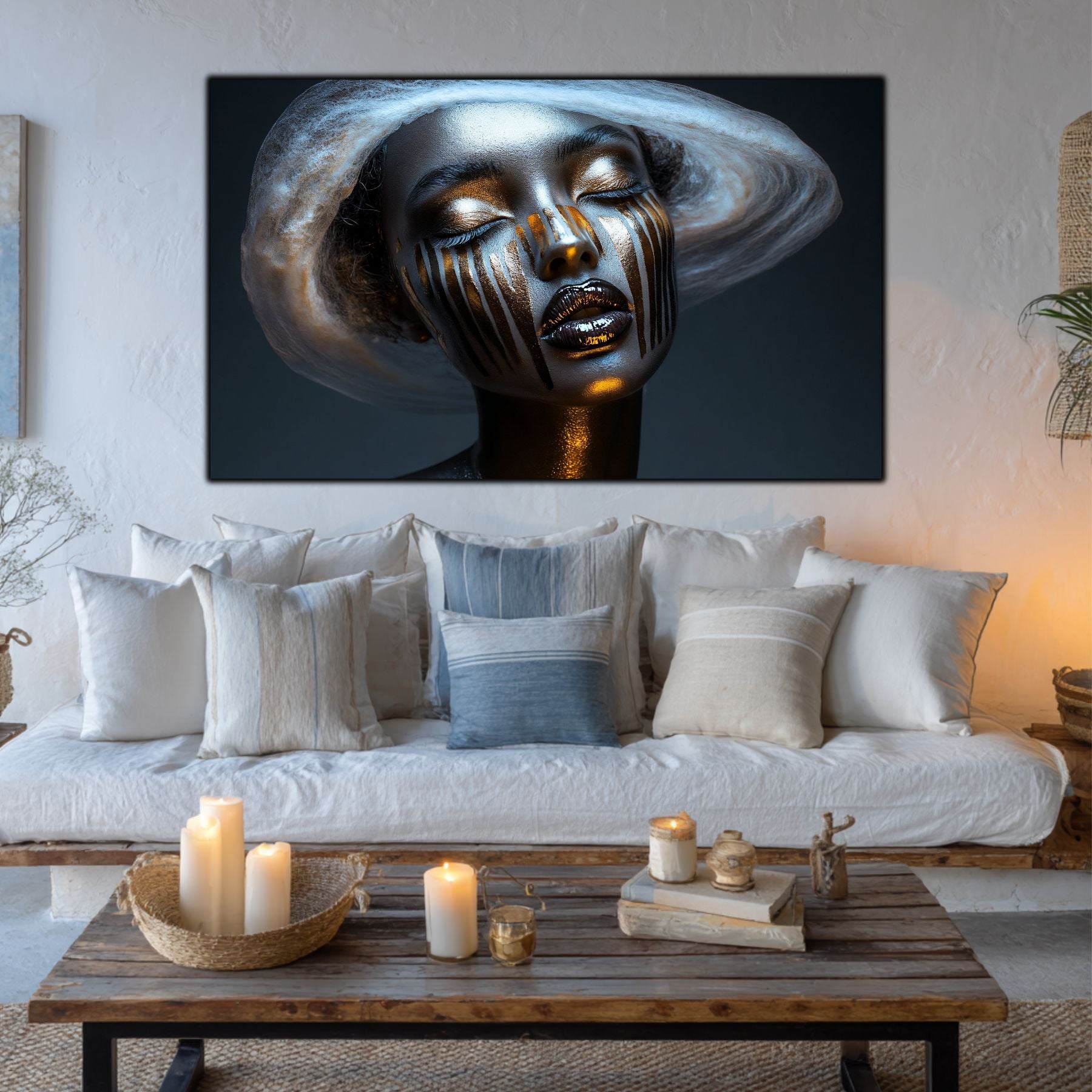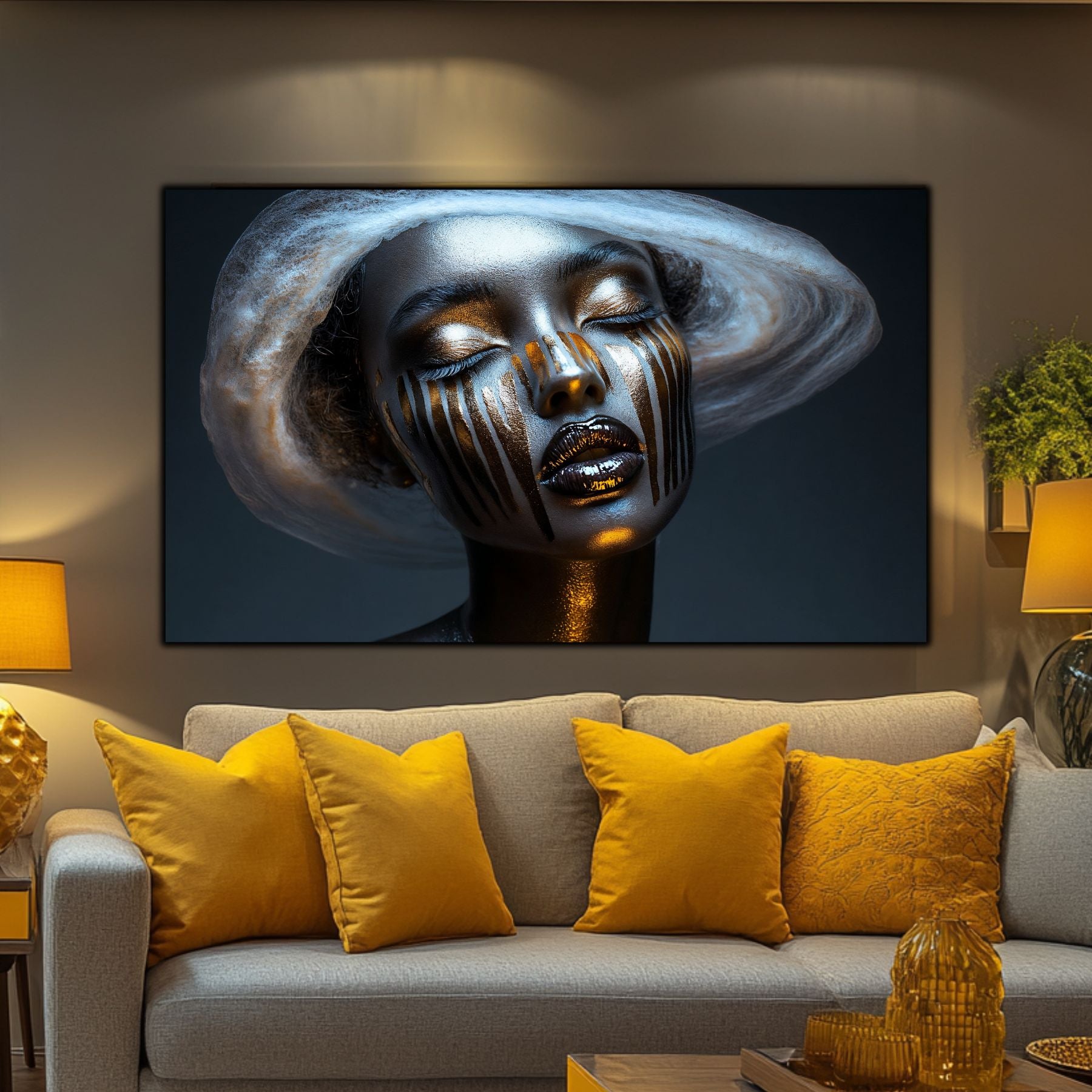 Dark White - Tablou Decorativ Contemporan cu Portret Abstract din Sticla Securizata