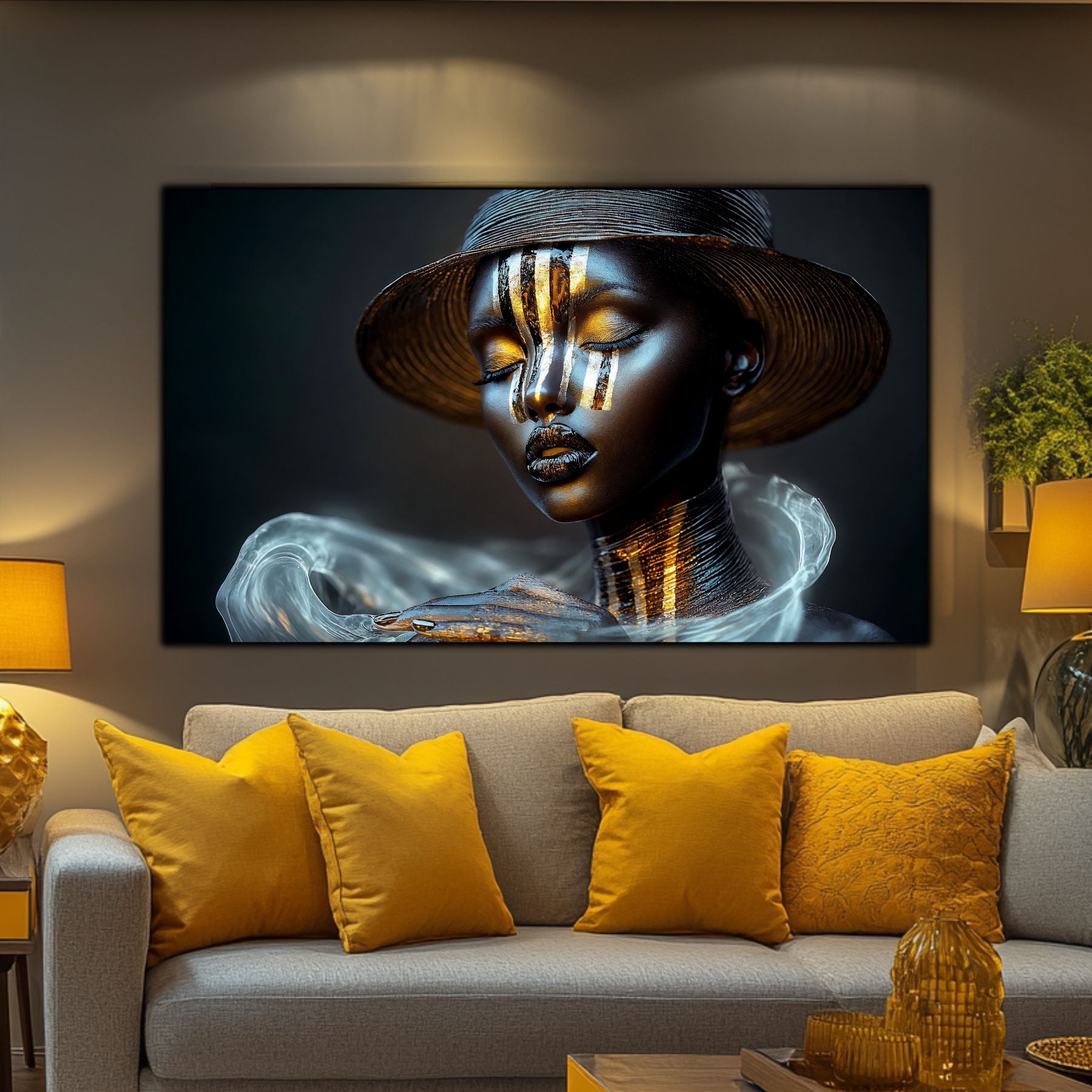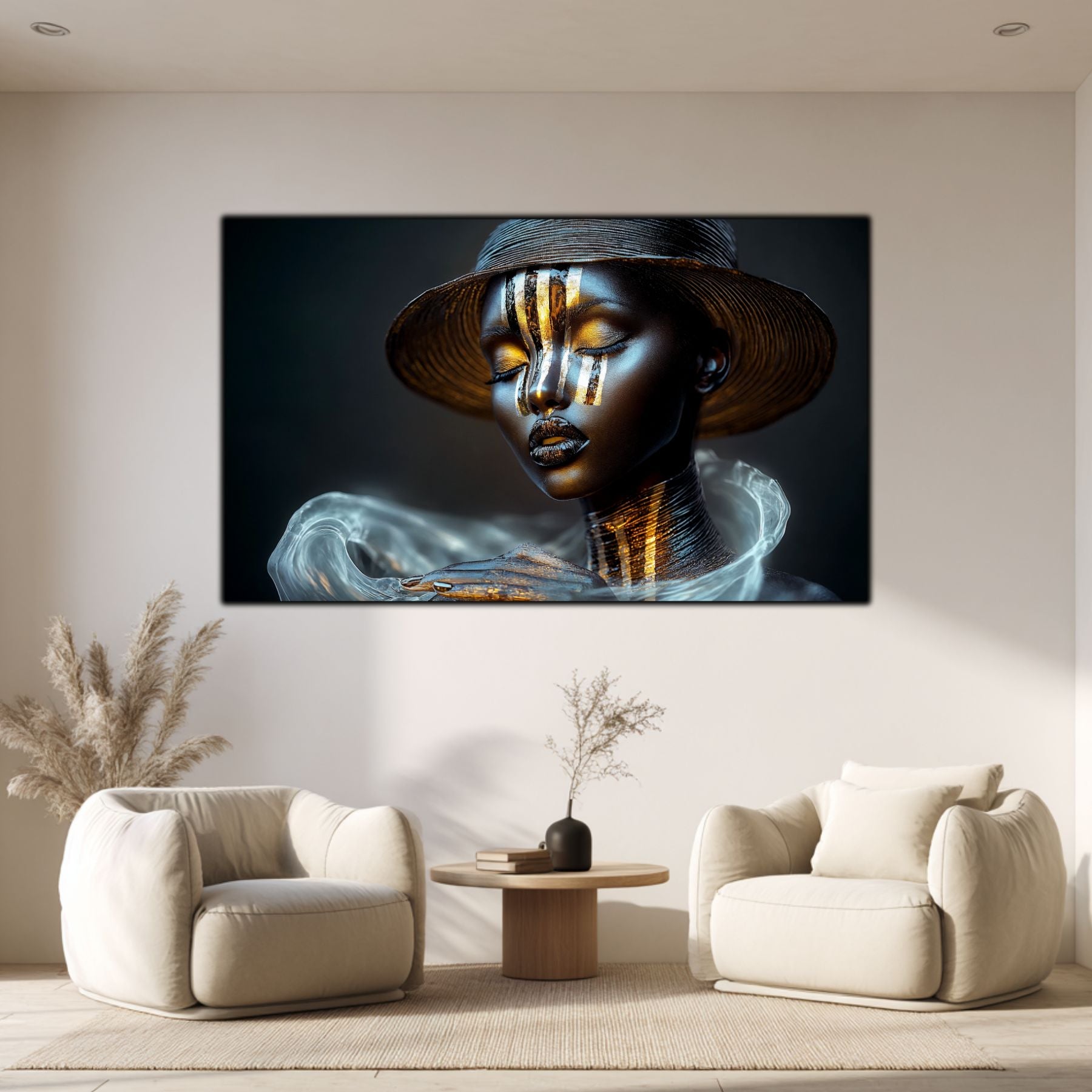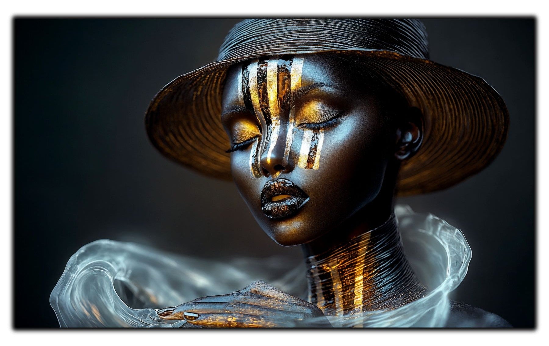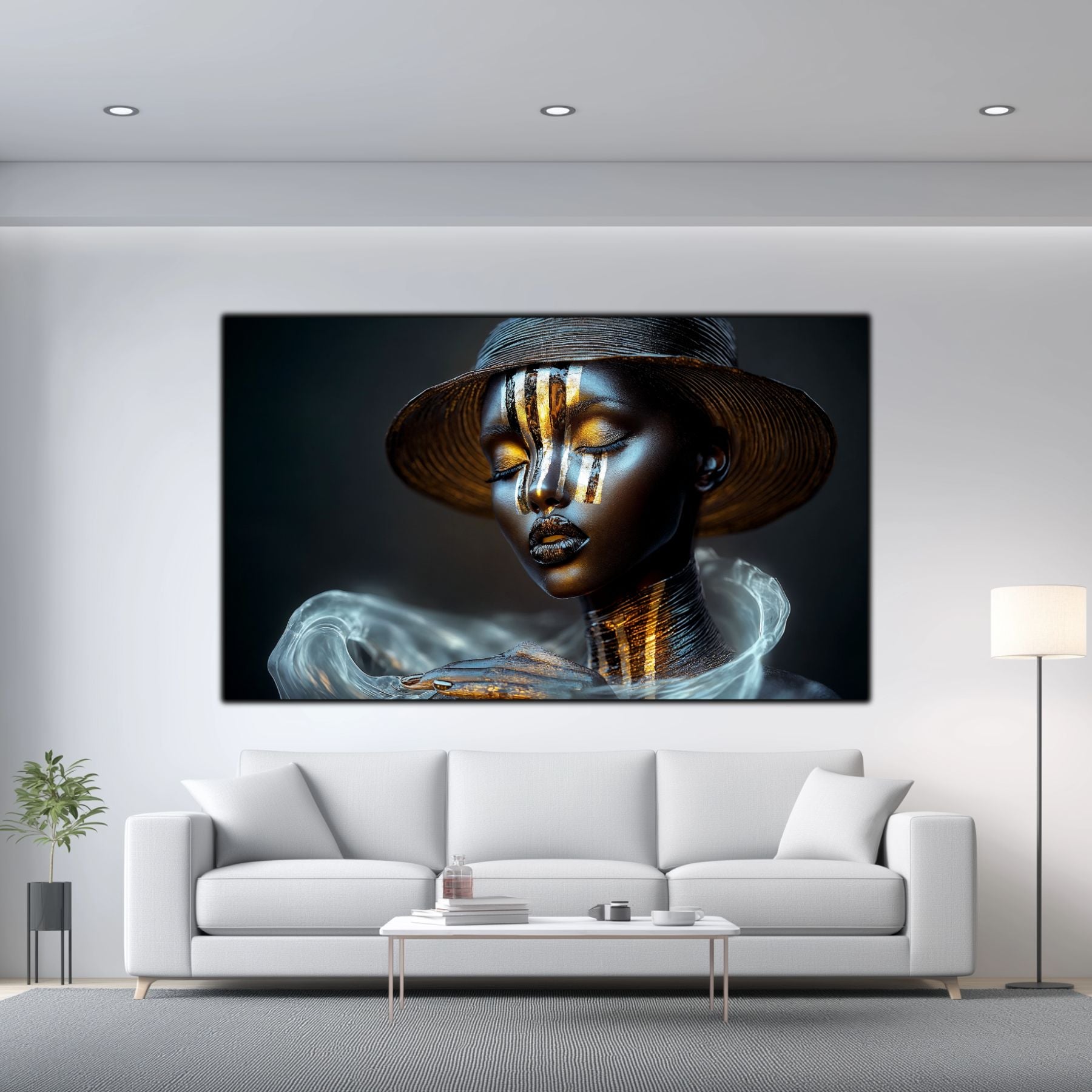 Dark White - Tablou Decorativ Contemporan cu Portret Abstract din Sticla Securizata