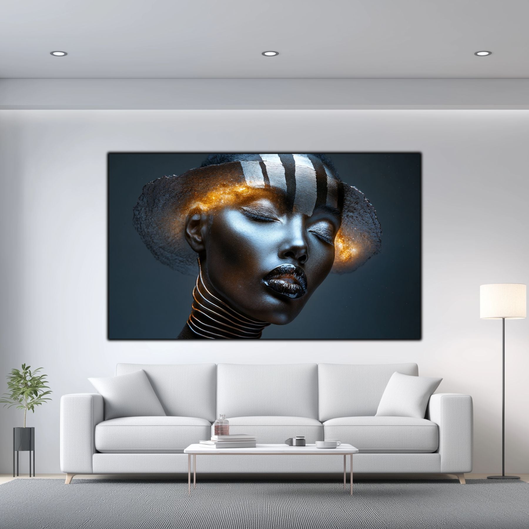 Dark White - Tablou Decorativ Contemporan cu Portret Abstract din Sticla Securizata