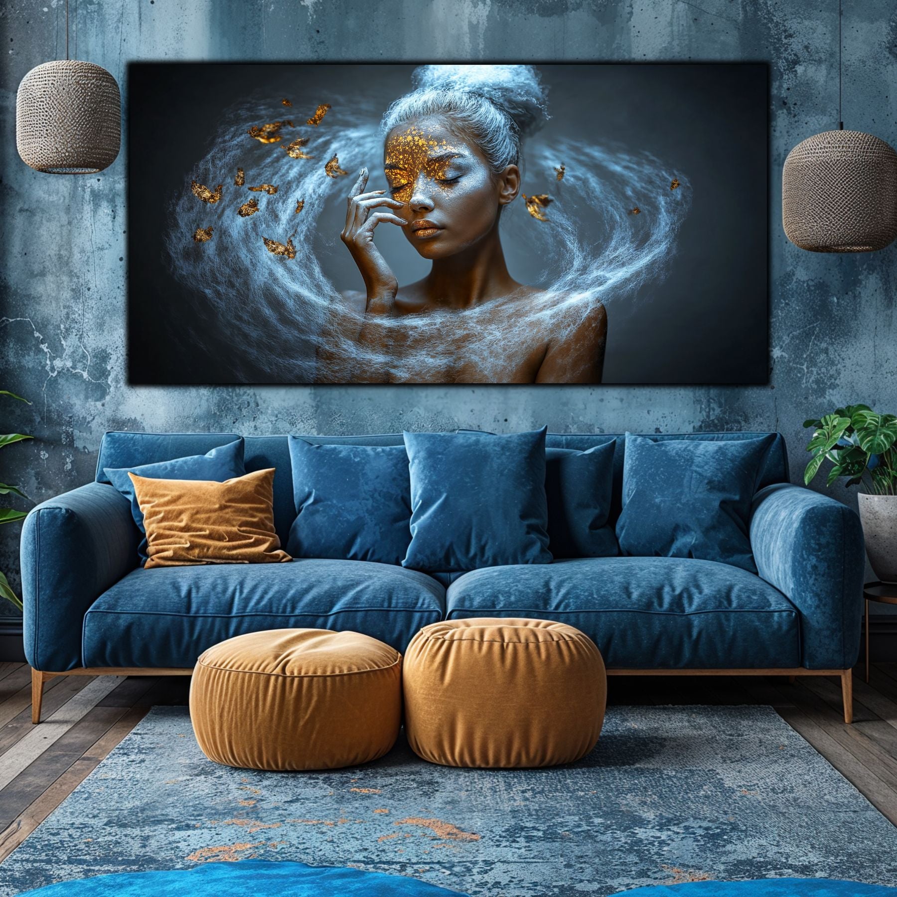 Imaginile prezentate sunt randari digitale realizate pentru a evidentia frumusetea tablourilor. Ele nu respecta proportiile reale in raport cu spatiul, fiind doar o interpretare artistica a modului in care acestea ar putea fi integrate intr-un decor. Va invit sa le „probati” mental pe peretii casei voastre si sa descoperiti cum isi gasesc locul in realitate.