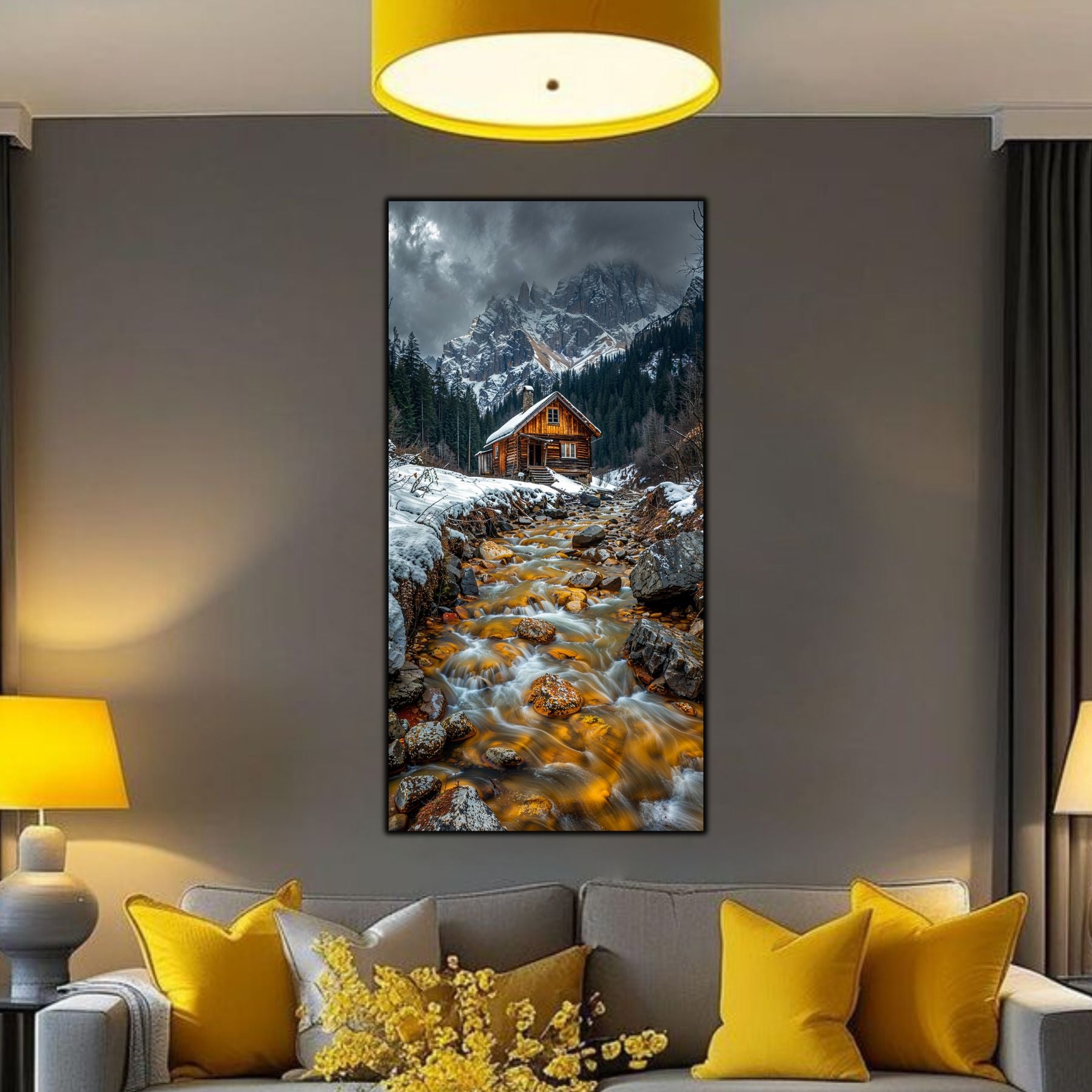 Imaginile prezentate sunt randari digitale realizate pentru a evidentia frumusetea tablourilor. Ele nu respecta proportiile reale in raport cu spatiul, fiind doar o interpretare artistica a modului in care acestea ar putea fi integrate intr-un decor. Va invit sa le „probati” mental pe peretii casei voastre si sa descoperiti cum isi gasesc locul in realitate.