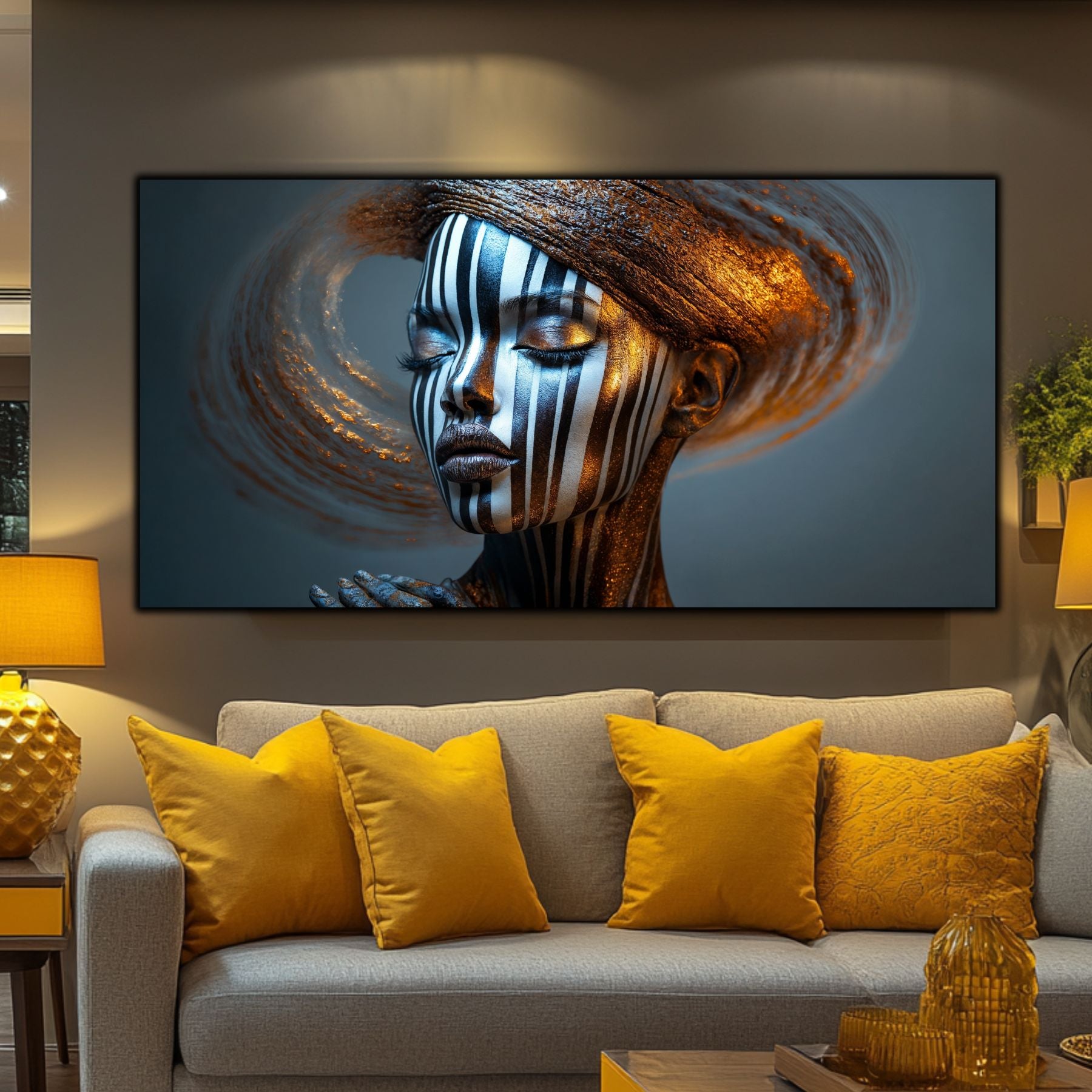 Imaginile prezentate sunt randari digitale realizate pentru a evidentia frumusetea tablourilor. Ele nu respecta proportiile reale in raport cu spatiul, fiind doar o interpretare artistica a modului in care acestea ar putea fi integrate intr-un decor. Va invit sa le „probati” mental pe peretii casei voastre si sa descoperiti cum isi gasesc locul in realitate.