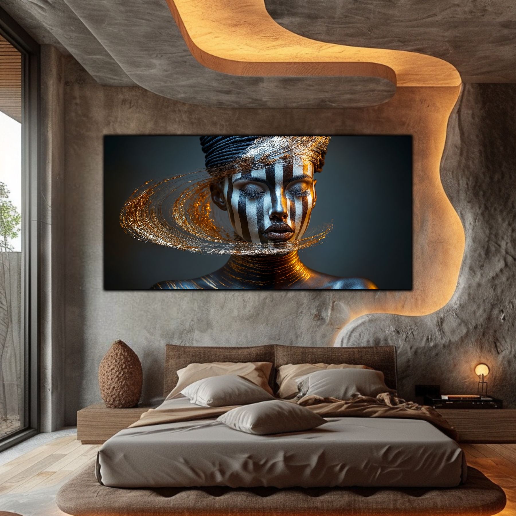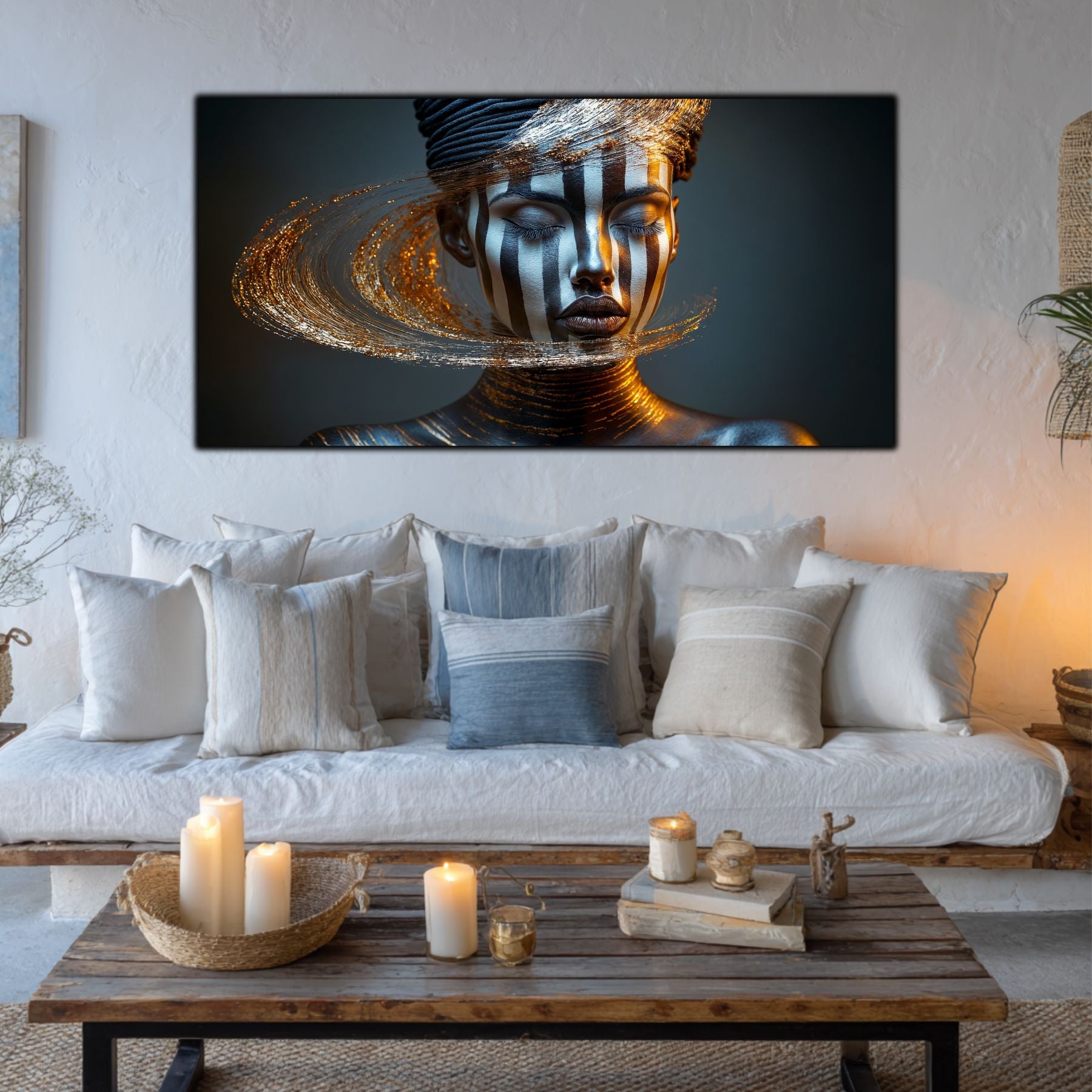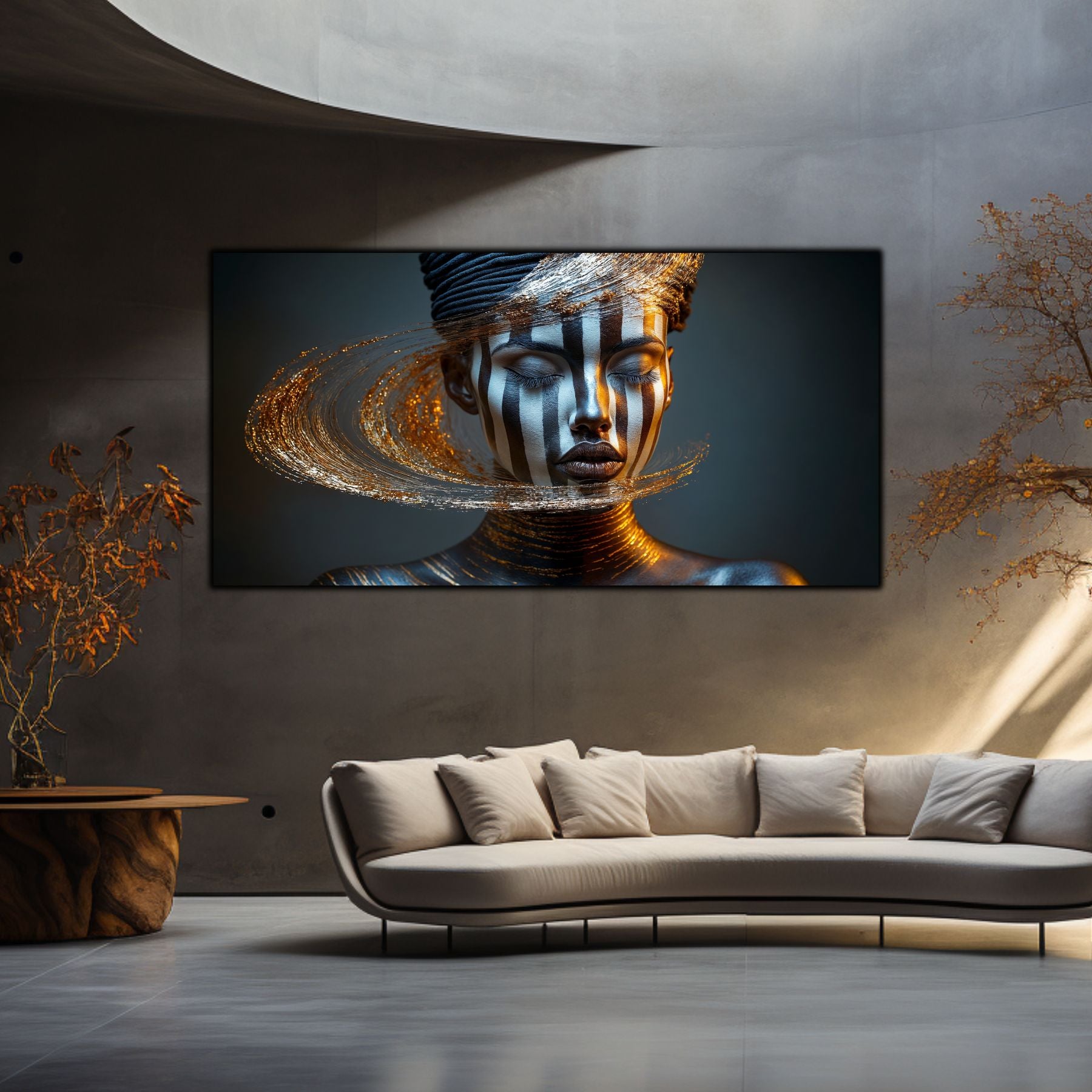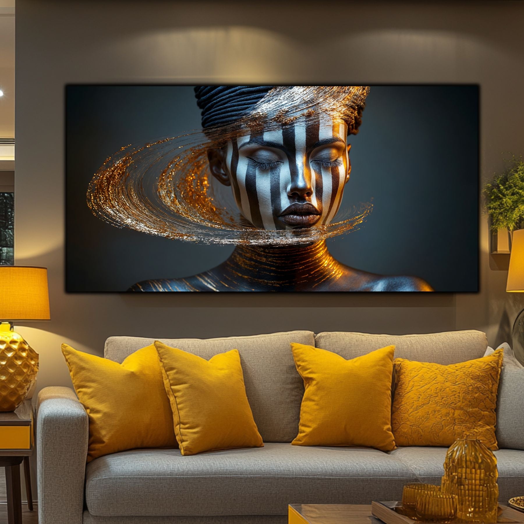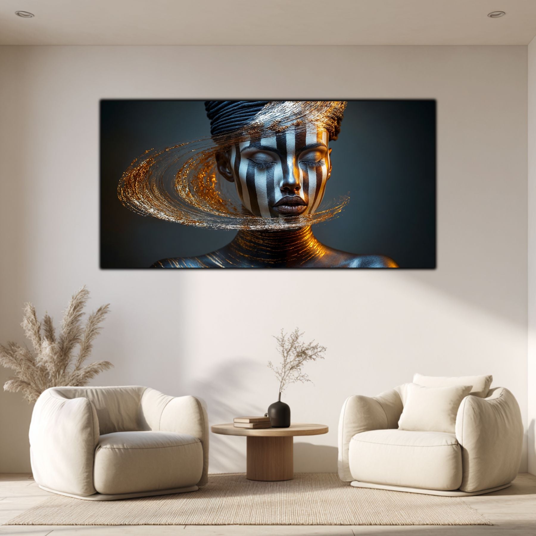 Imaginile prezentate sunt randari digitale realizate pentru a evidentia frumusetea tablourilor. Ele nu respecta proportiile reale in raport cu spatiul, fiind doar o interpretare artistica a modului in care acestea ar putea fi integrate intr-un decor. Va invit sa le „probati” mental pe peretii casei voastre si sa descoperiti cum isi gasesc locul in realitate.