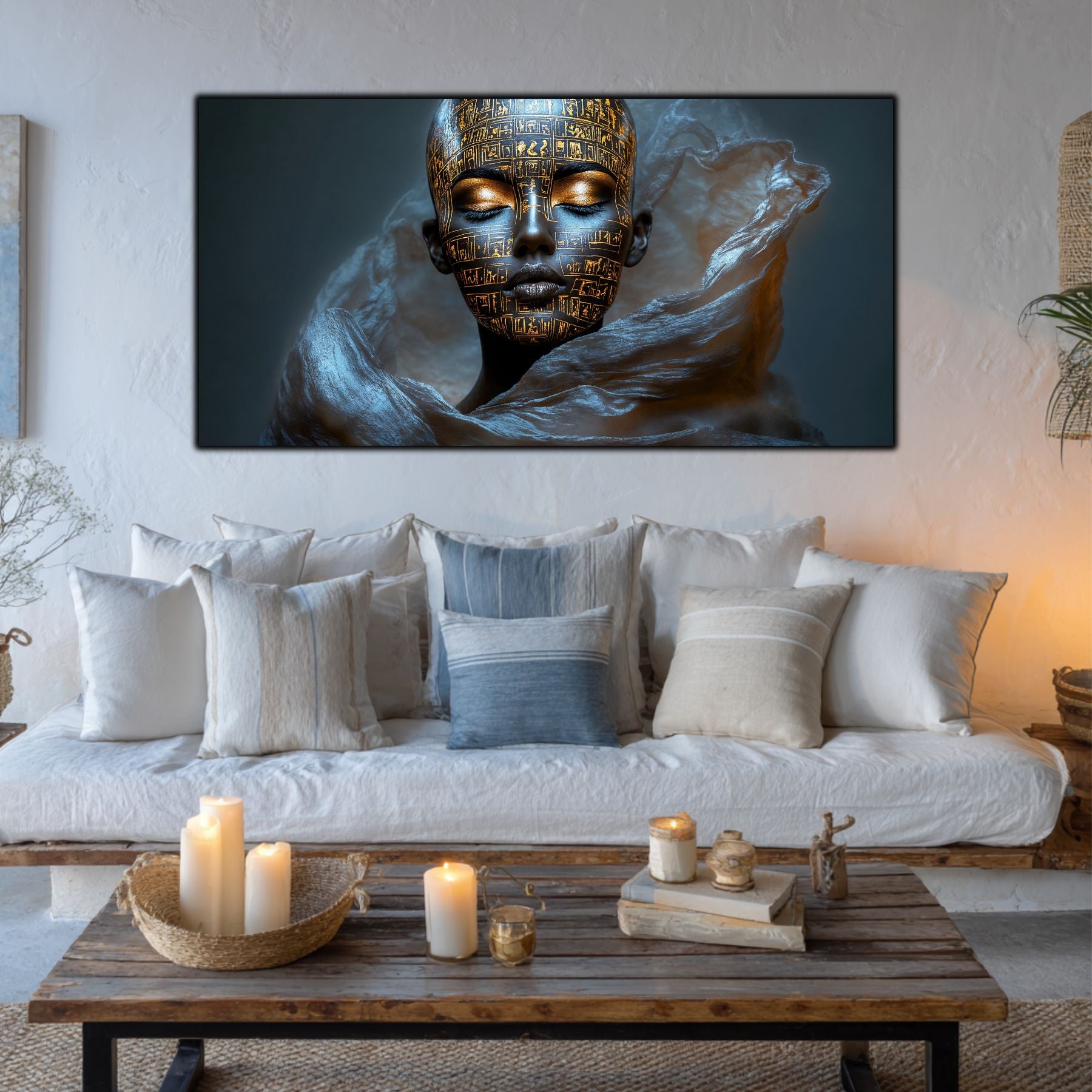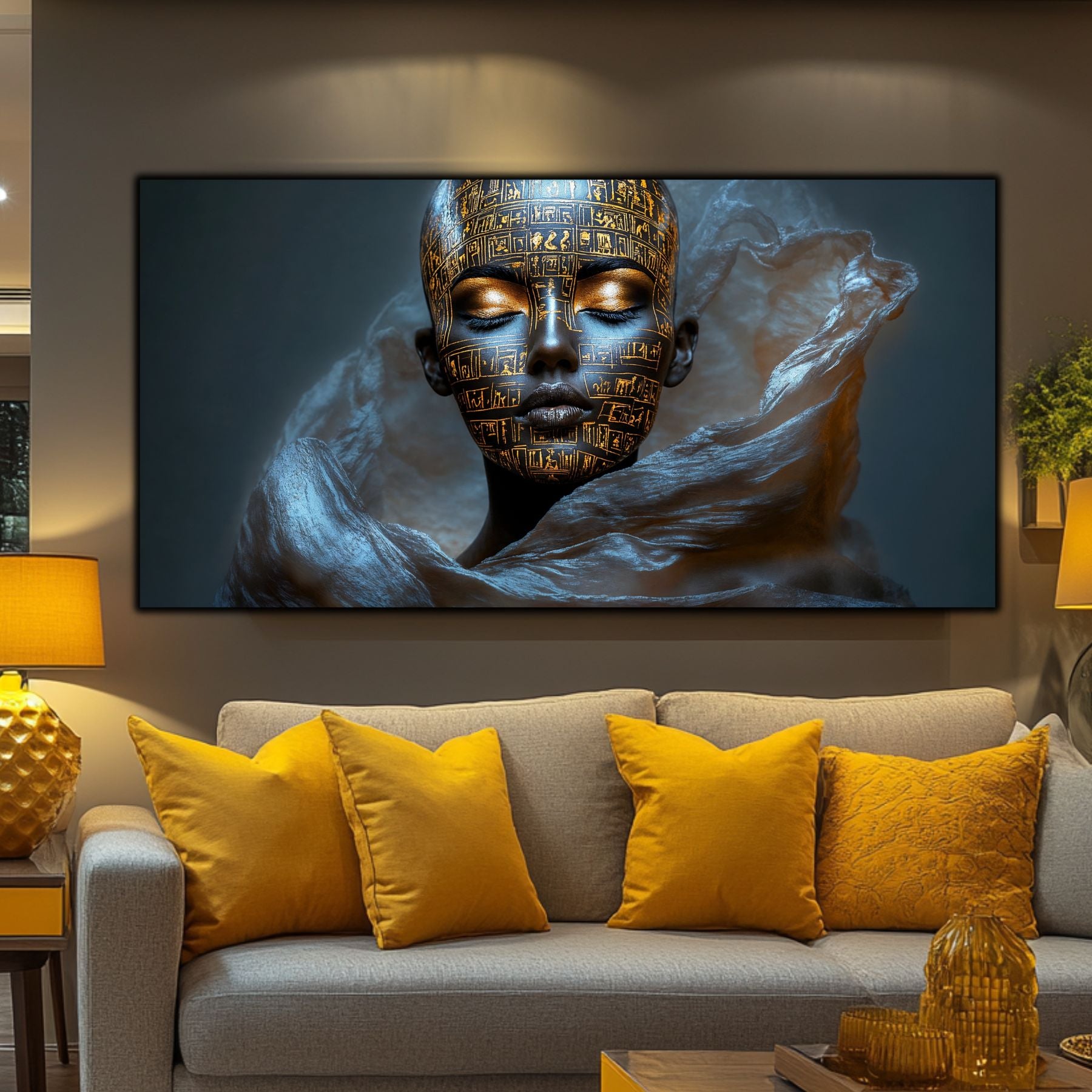 Imaginile prezentate sunt randari digitale realizate pentru a evidentia frumusetea tablourilor. Ele nu respecta proportiile reale in raport cu spatiul, fiind doar o interpretare artistica a modului in care acestea ar putea fi integrate intr-un decor. Va invit sa le „probati” mental pe peretii casei voastre si sa descoperiti cum isi gasesc locul in realitate.