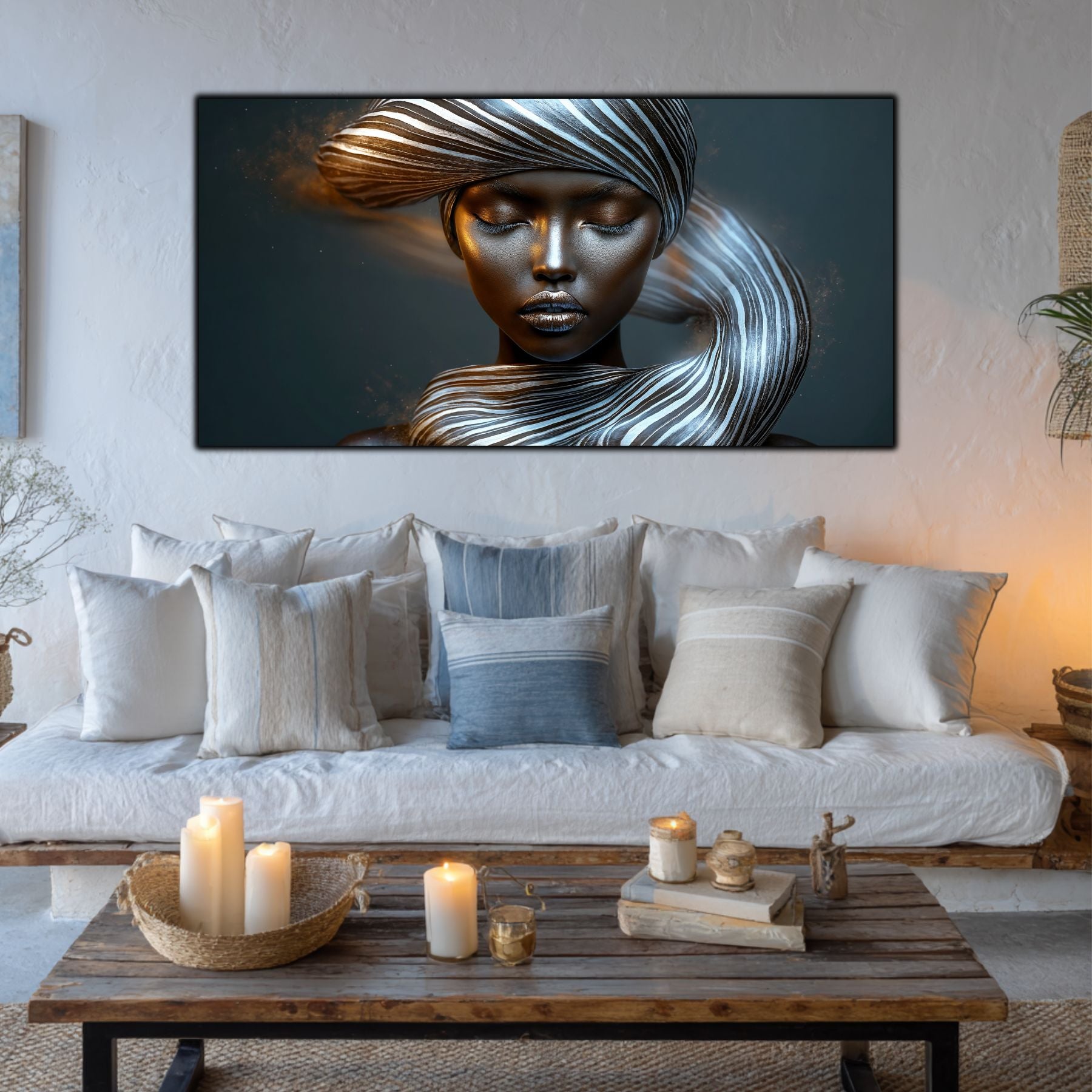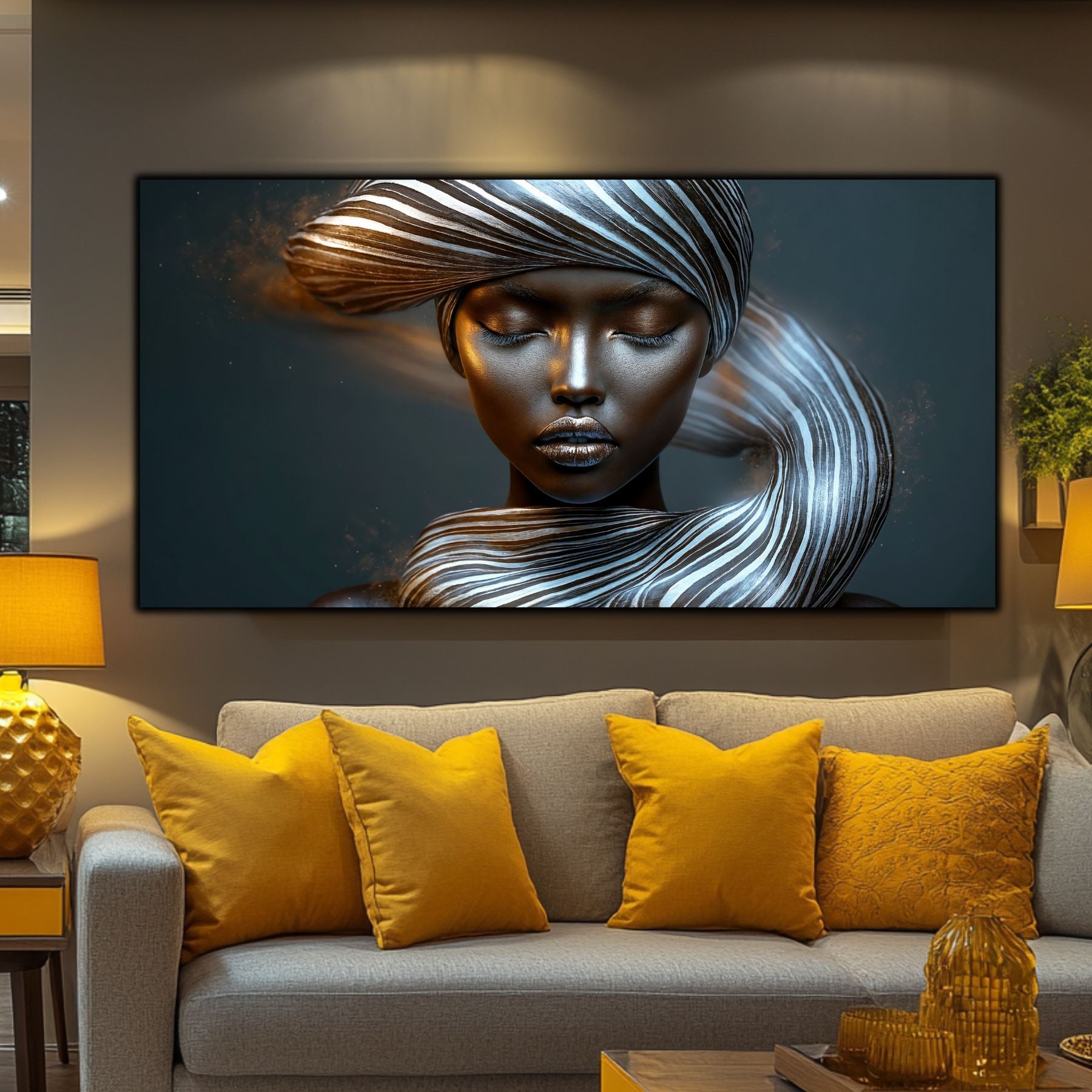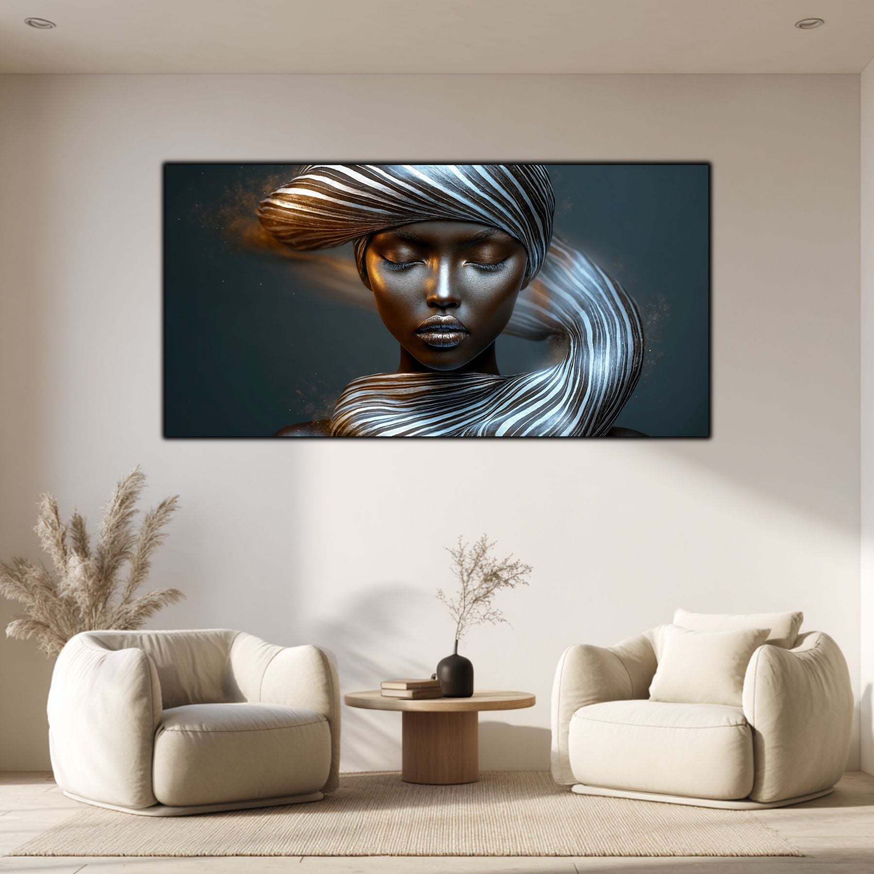 Imaginile prezentate sunt randari digitale realizate pentru a evidentia frumusetea tablourilor. Ele nu respecta proportiile reale in raport cu spatiul, fiind doar o interpretare artistica a modului in care acestea ar putea fi integrate intr-un decor. Va invit sa le „probati” mental pe peretii casei voastre si sa descoperiti cum isi gasesc locul in realitate.