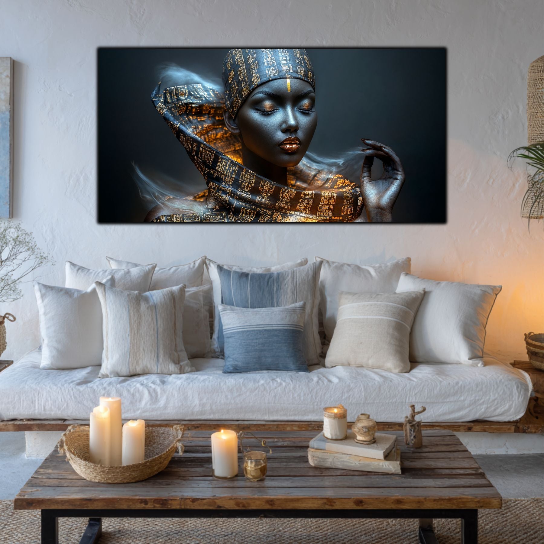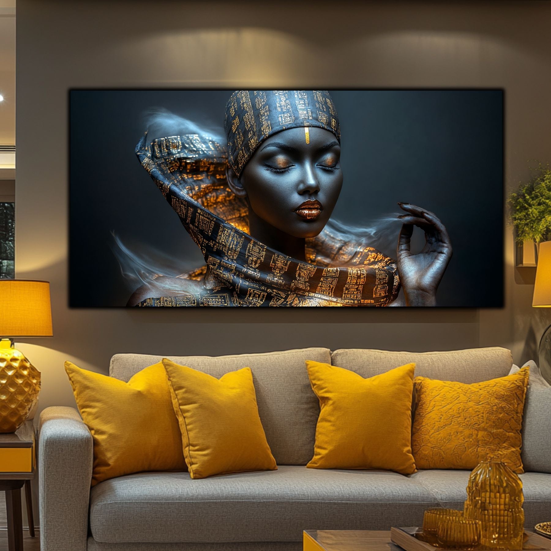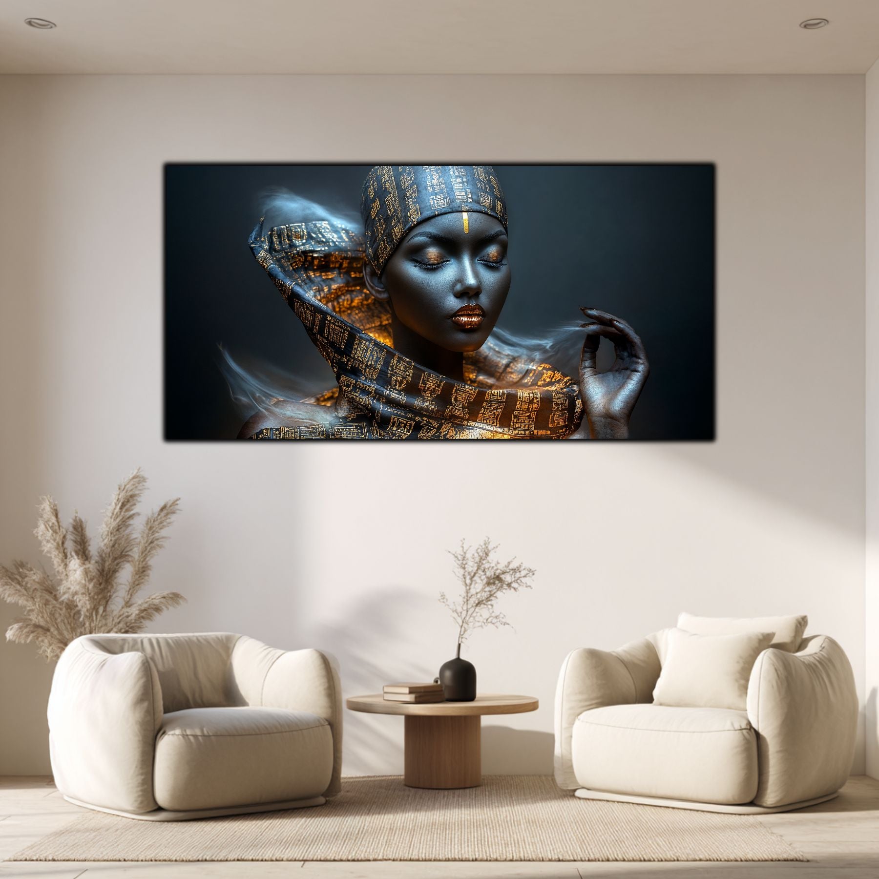 Imaginile prezentate sunt randari digitale realizate pentru a evidentia frumusetea tablourilor. Ele nu respecta proportiile reale in raport cu spatiul, fiind doar o interpretare artistica a modului in care acestea ar putea fi integrate intr-un decor. Va invit sa le „probati” mental pe peretii casei voastre si sa descoperiti cum isi gasesc locul in realitate.