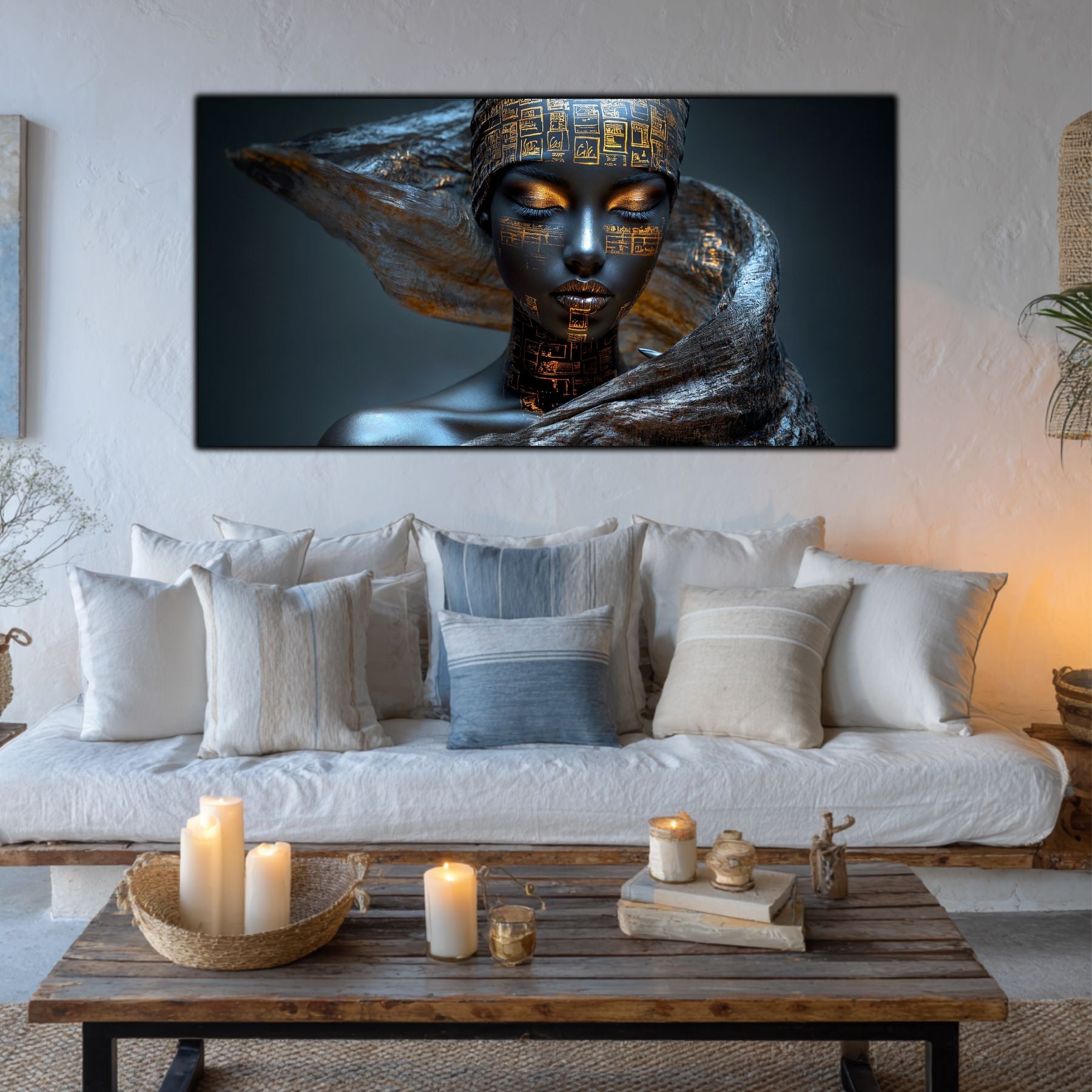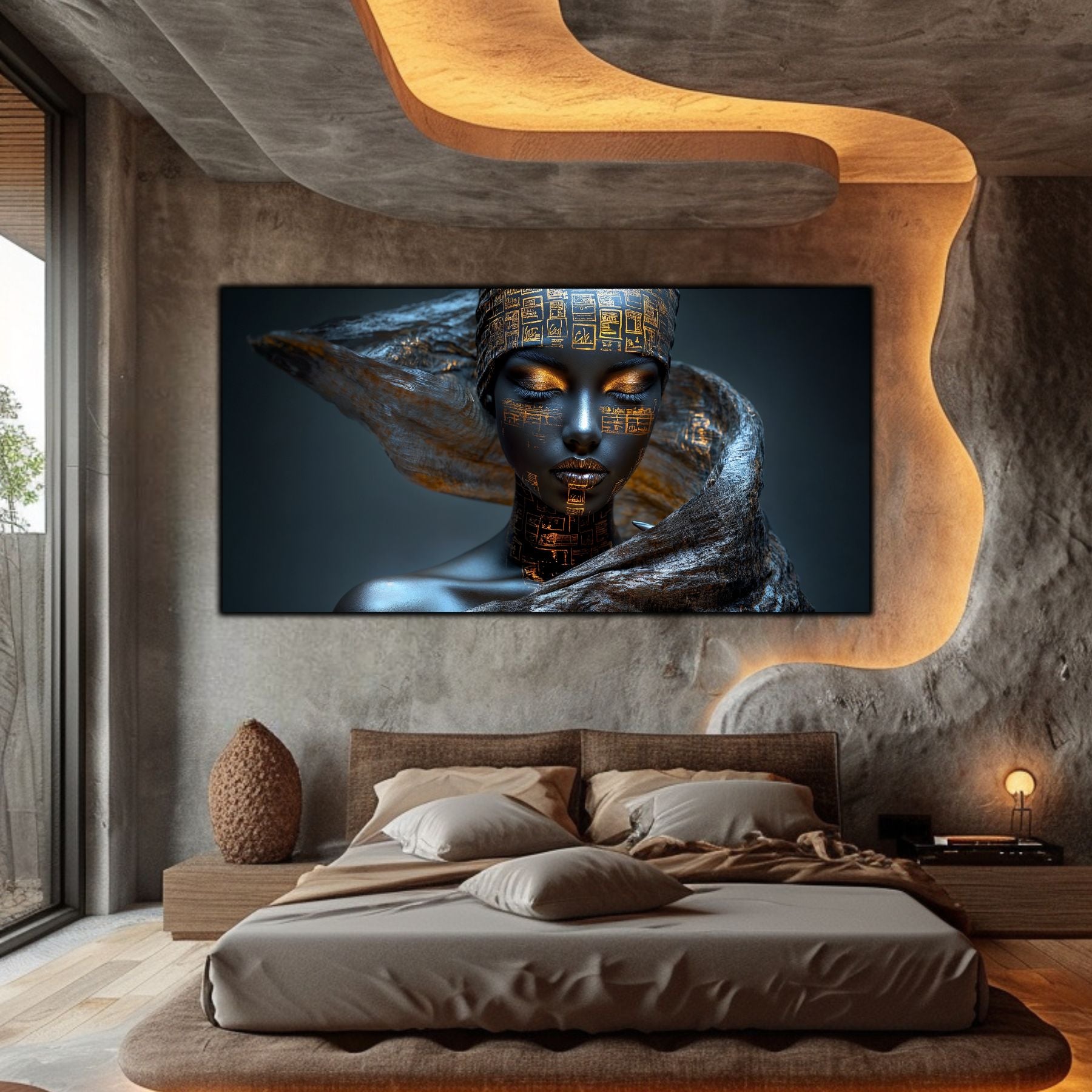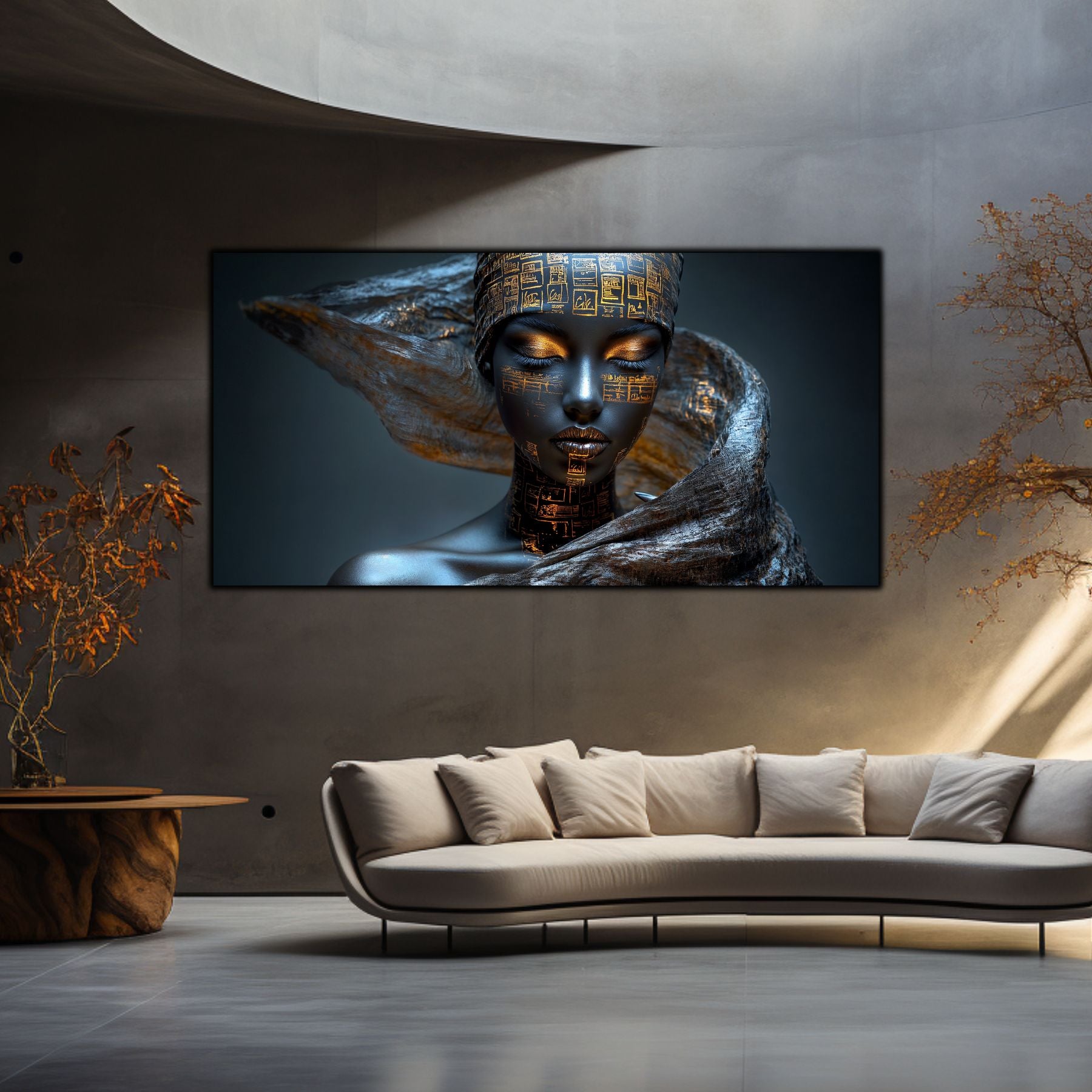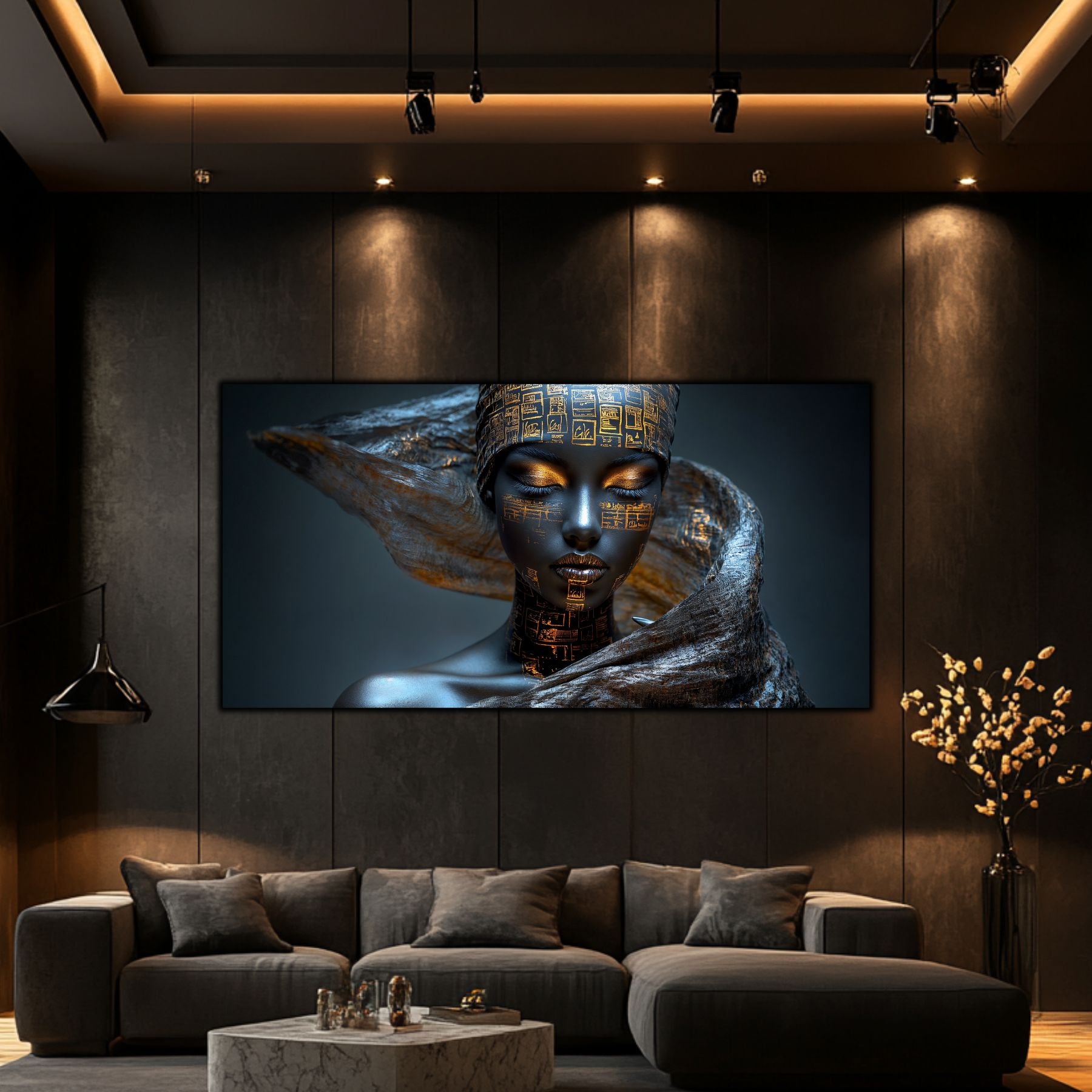 Tablou modern pe sticlă, din colecția „Dark StarDust”. Negru cosmic, accente aurii și mister astral pentru un decor luxury exclusivist.