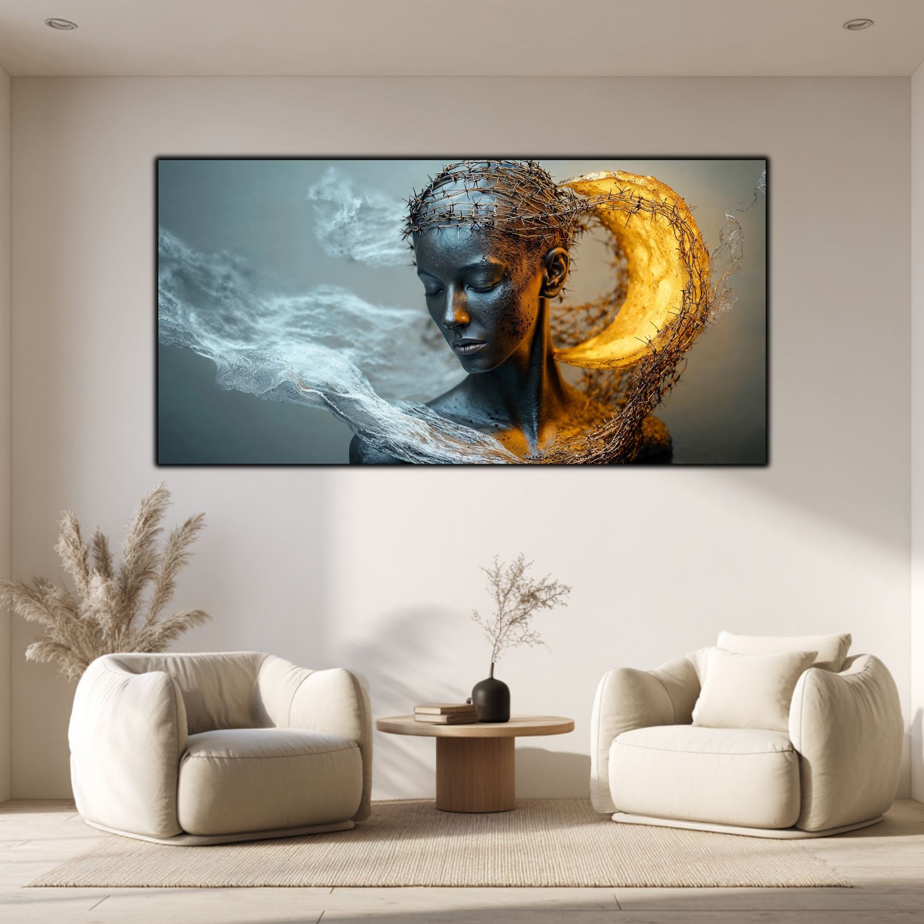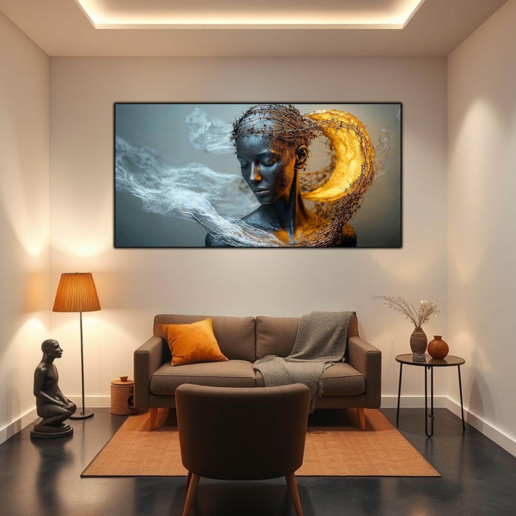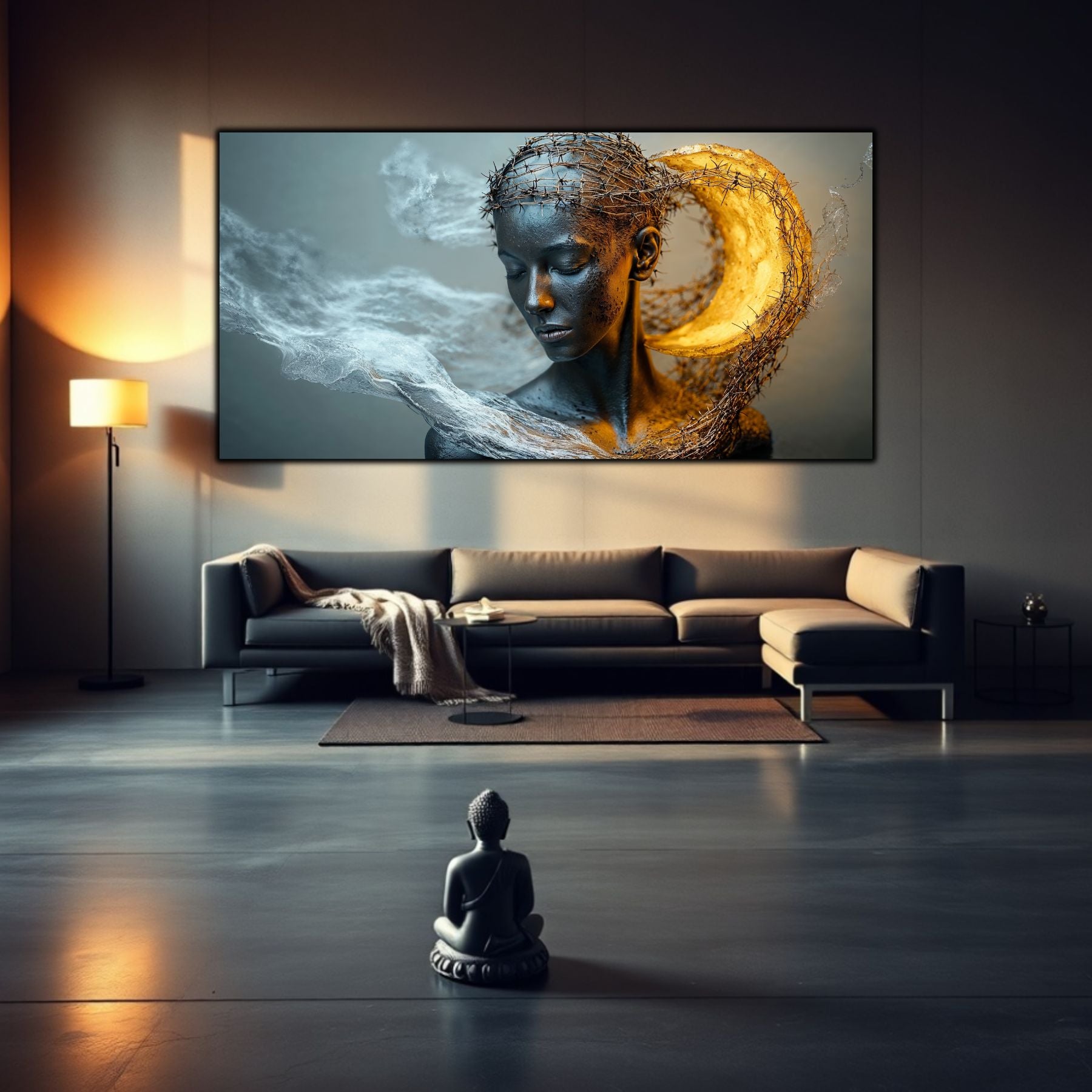 Imaginile prezentate sunt randari digitale realizate pentru a evidentia frumusetea tablourilor. Ele nu respecta proportiile reale in raport cu spatiul, fiind doar o interpretare artistica a modului in care acestea ar putea fi integrate intr-un decor. Va invit sa le „probati” mental pe peretii casei voastre si sa descoperiti cum isi gasesc locul in realitate.