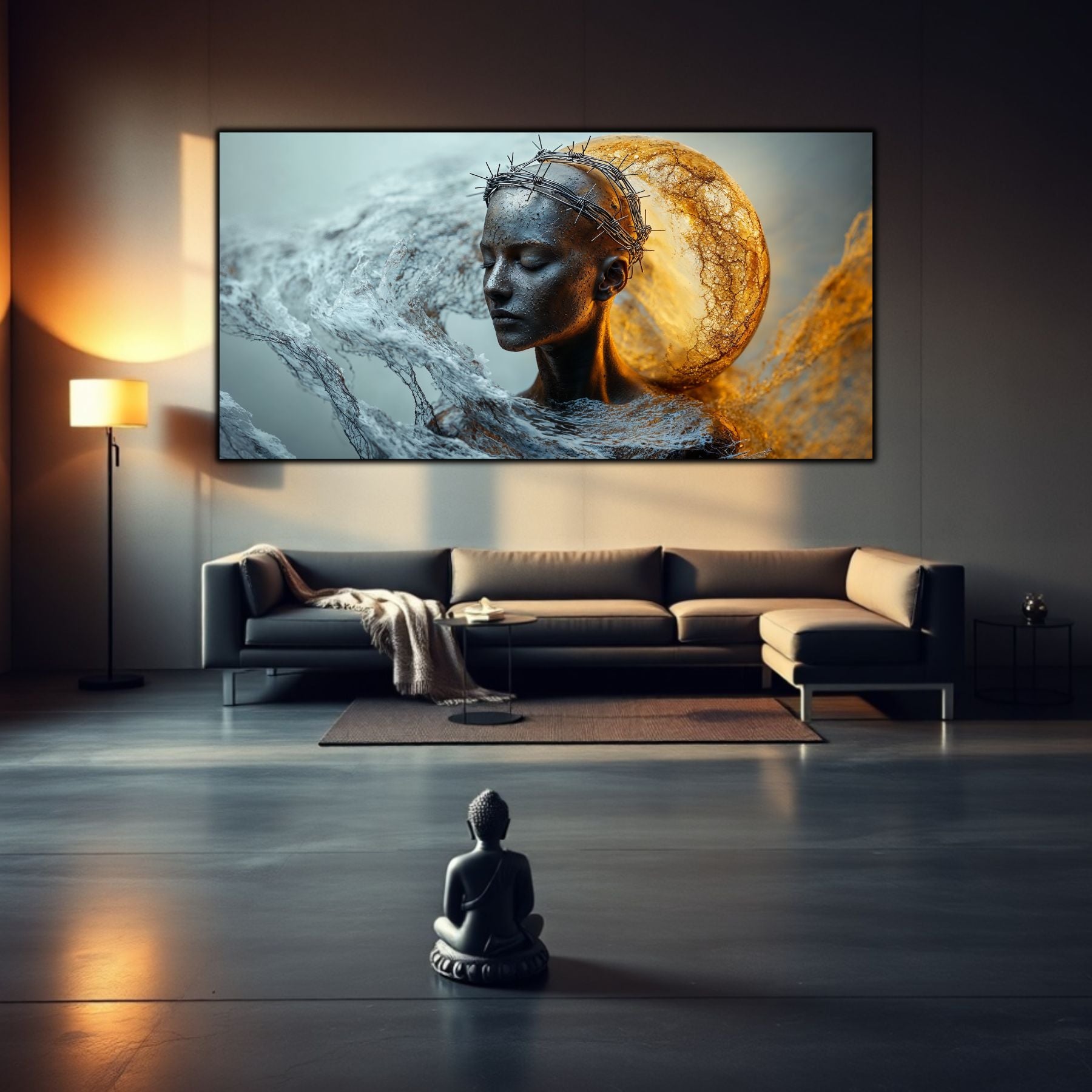 Imaginile prezentate sunt randari digitale realizate pentru a evidentia frumusetea tablourilor. Ele nu respecta proportiile reale in raport cu spatiul, fiind doar o interpretare artistica a modului in care acestea ar putea fi integrate intr-un decor. Va invit sa le „probati” mental pe peretii casei voastre si sa descoperiti cum isi gasesc locul in realitate.