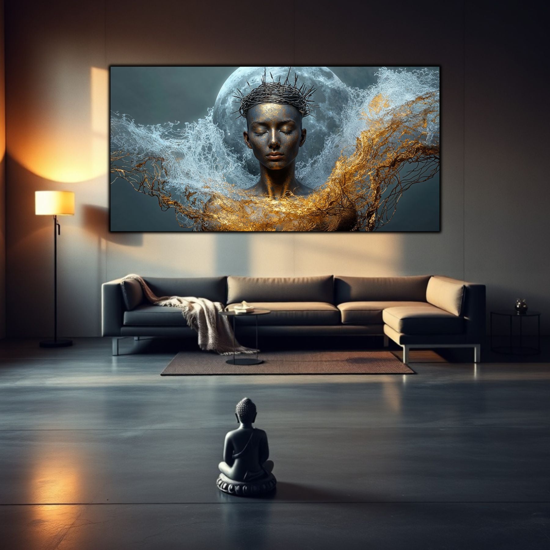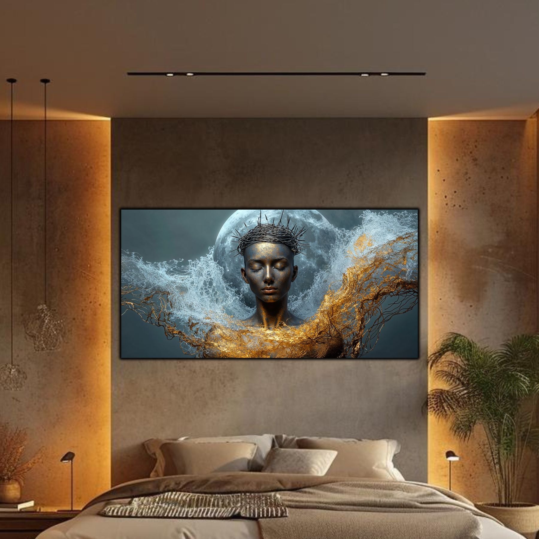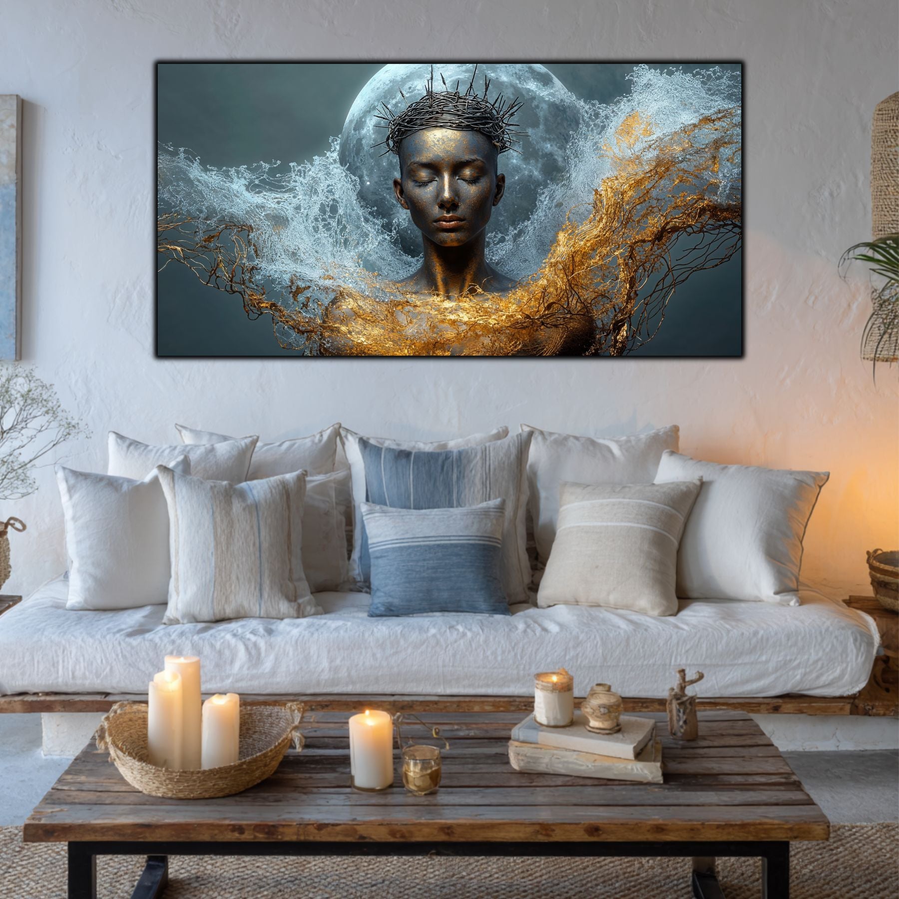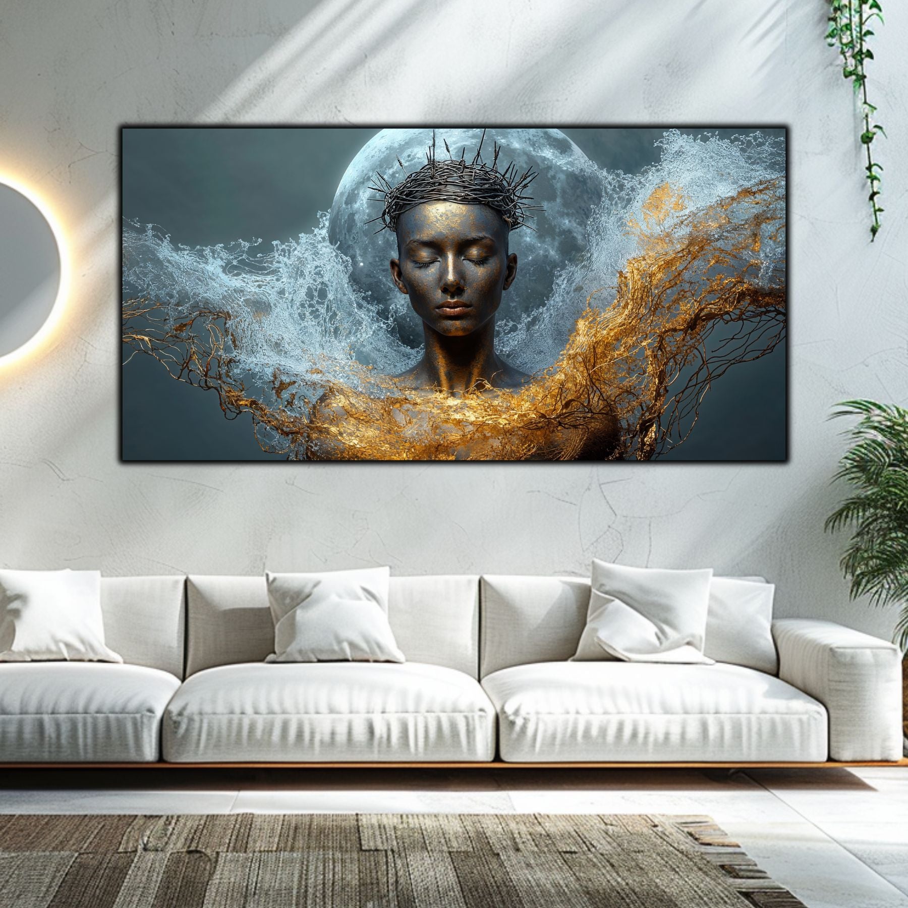 Imaginile prezentate sunt randari digitale realizate pentru a evidentia frumusetea tablourilor. Ele nu respecta proportiile reale in raport cu spatiul, fiind doar o interpretare artistica a modului in care acestea ar putea fi integrate intr-un decor. Va invit sa le „probati” mental pe peretii casei voastre si sa descoperiti cum isi gasesc locul in realitate.