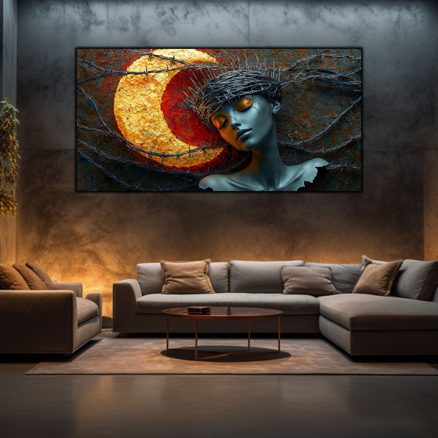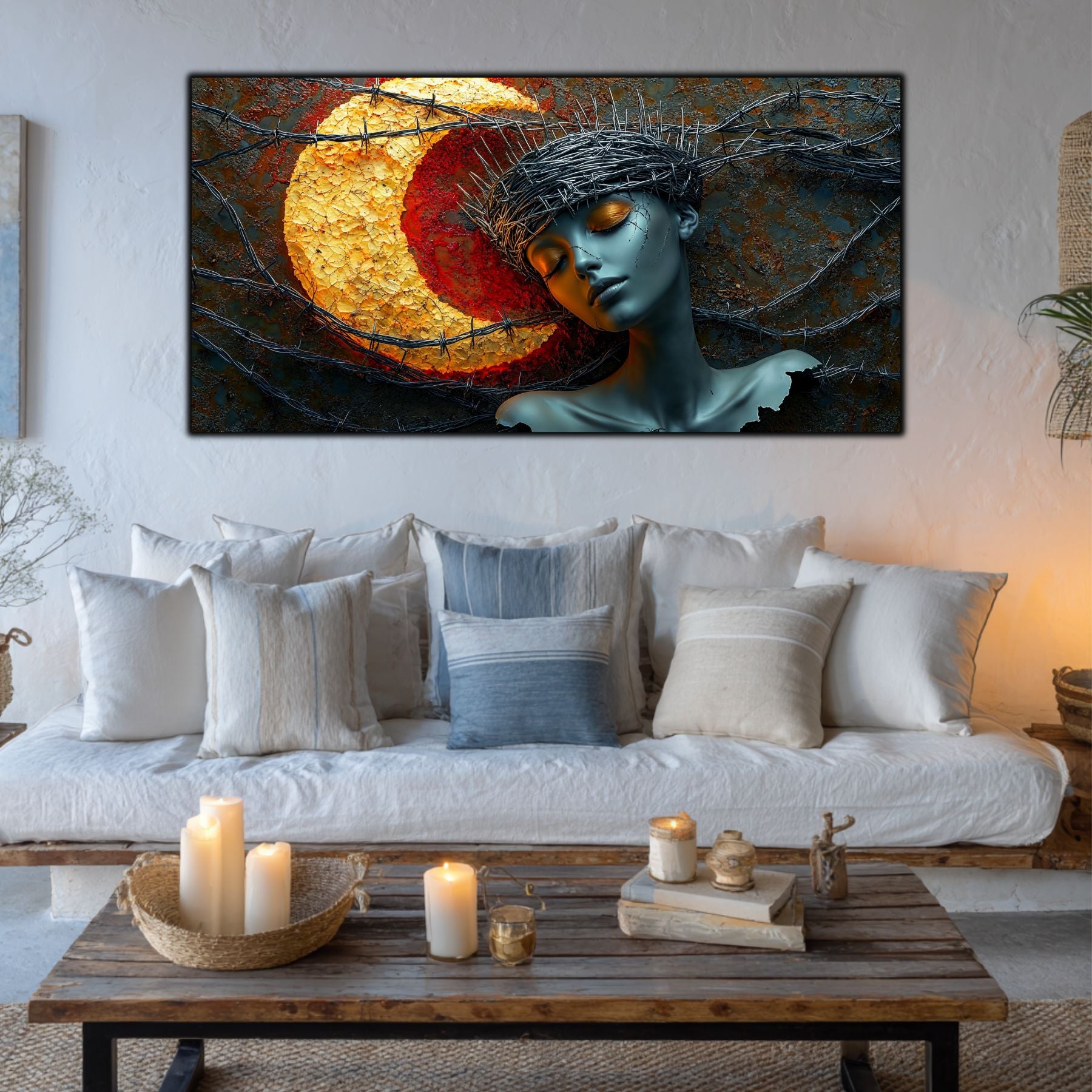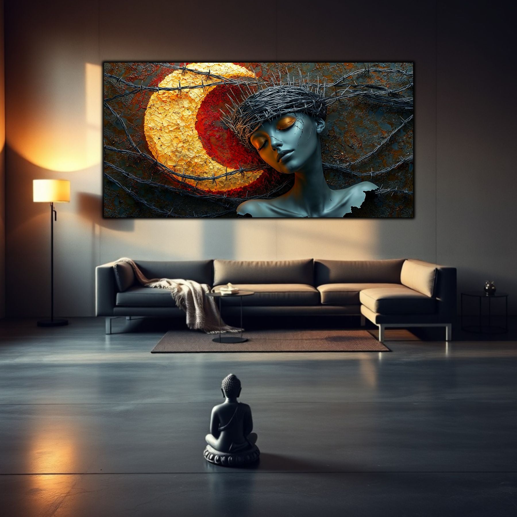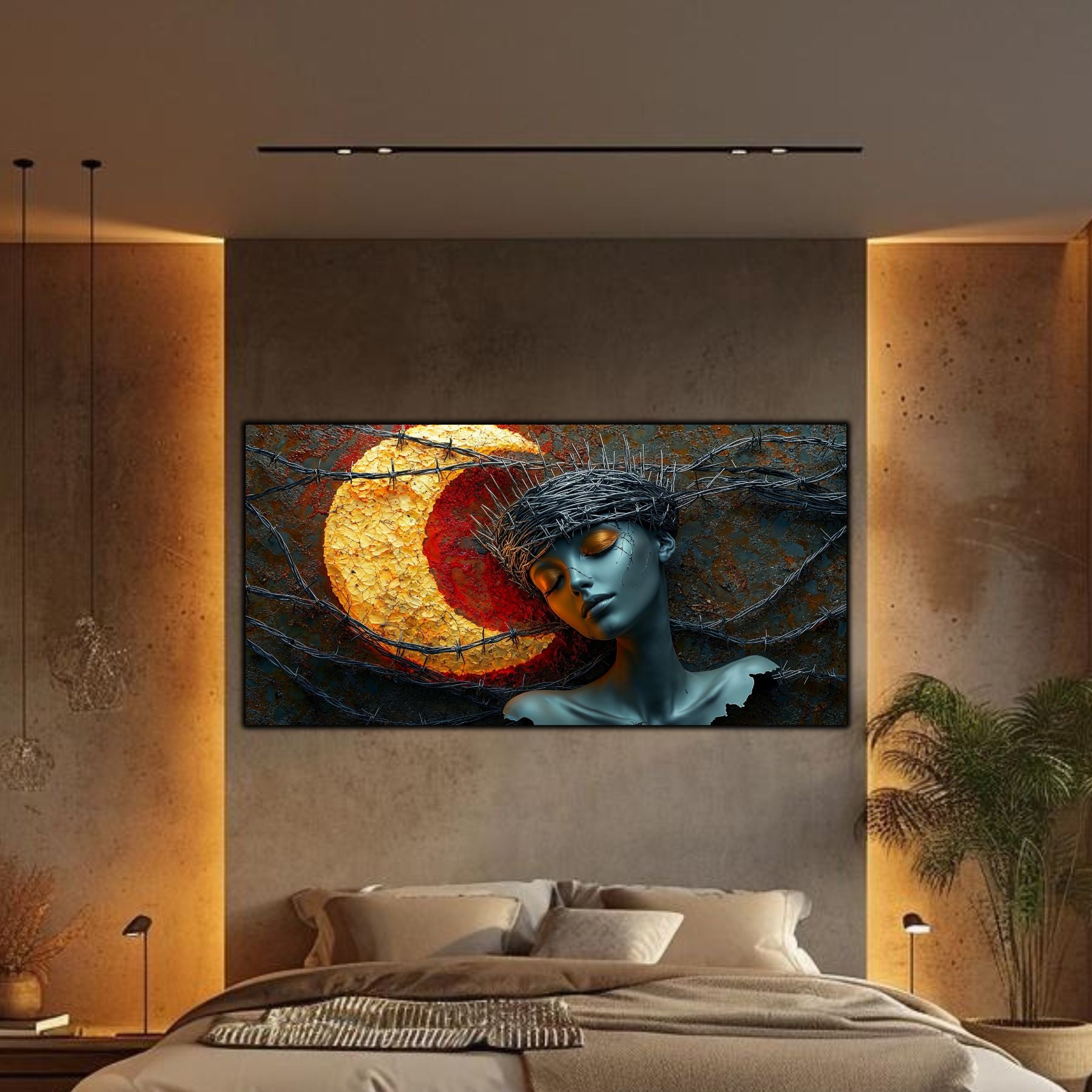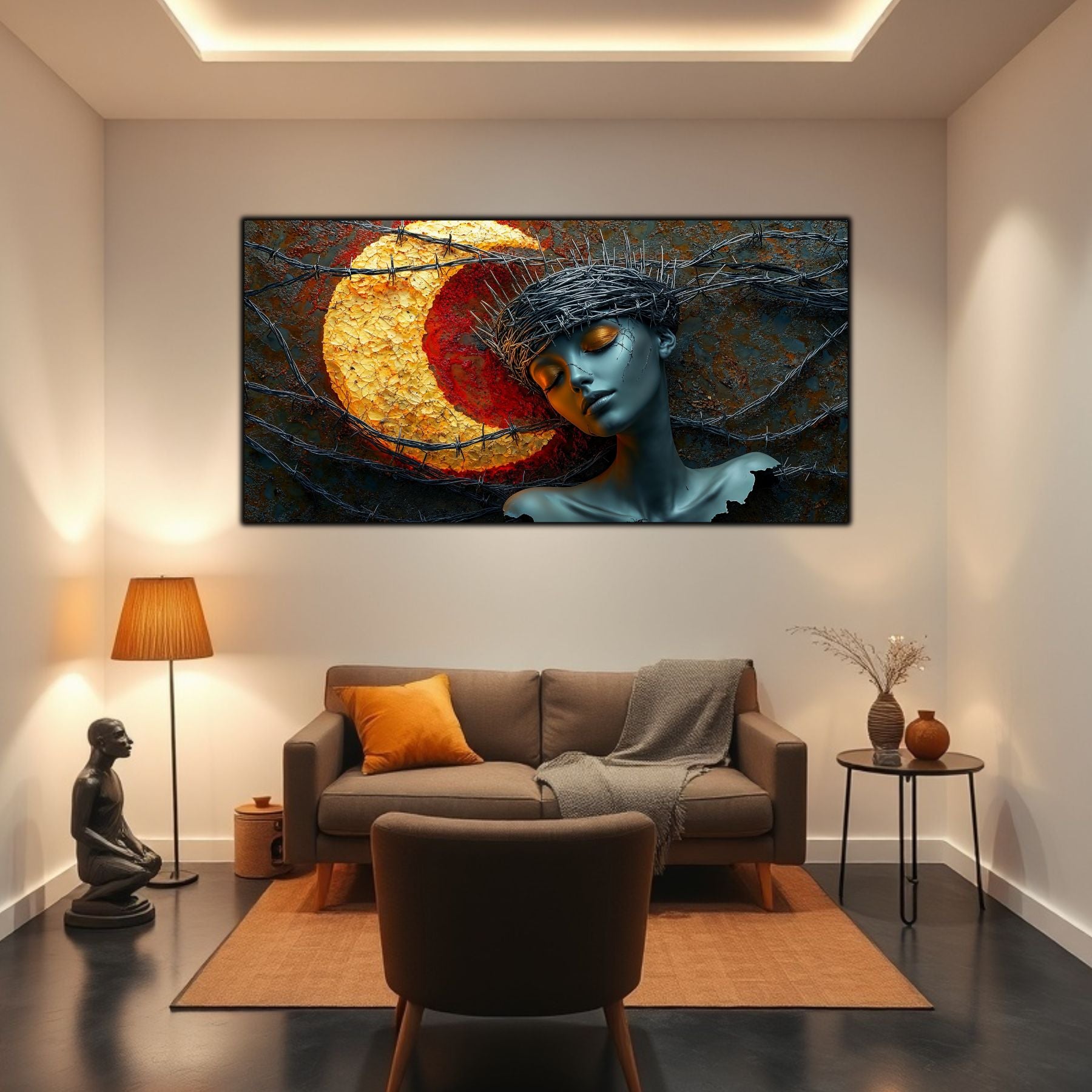 Imaginile prezentate sunt randari digitale realizate pentru a evidentia frumusetea tablourilor. Ele nu respecta proportiile reale in raport cu spatiul, fiind doar o interpretare artistica a modului in care acestea ar putea fi integrate intr-un decor. Va invit sa le „probati” mental pe peretii casei voastre si sa descoperiti cum isi gasesc locul in realitate.