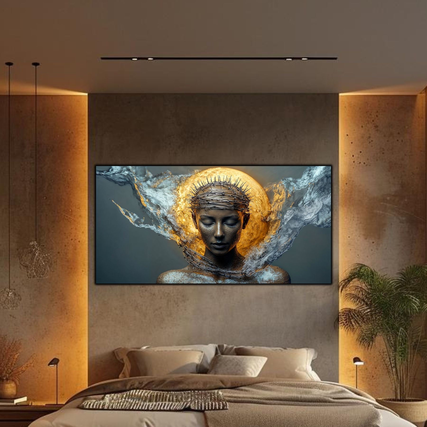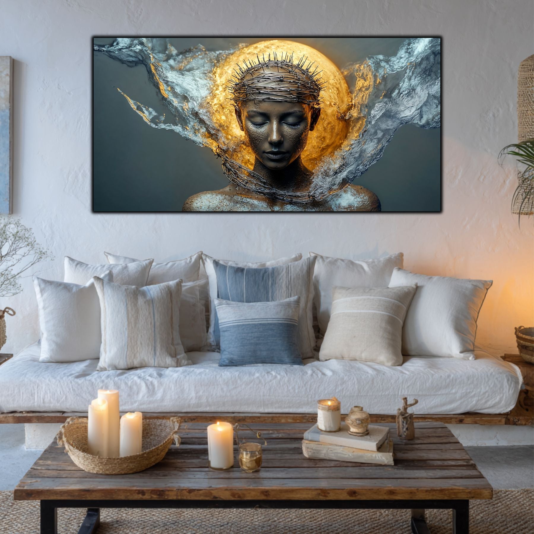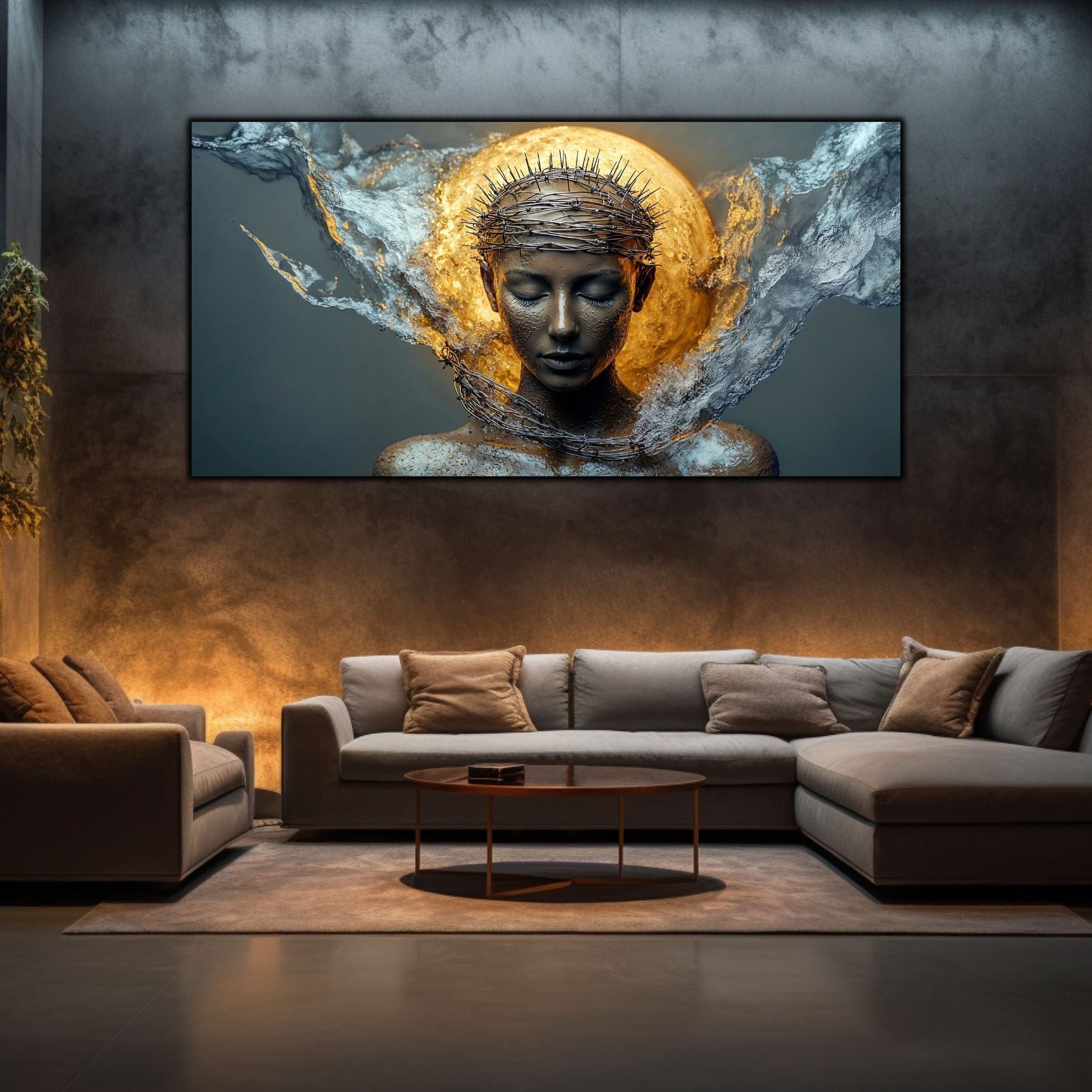 Imaginile prezentate sunt randari digitale realizate pentru a evidentia frumusetea tablourilor. Ele nu respecta proportiile reale in raport cu spatiul, fiind doar o interpretare artistica a modului in care acestea ar putea fi integrate intr-un decor. Va invit sa le „probati” mental pe peretii casei voastre si sa descoperiti cum isi gasesc locul in realitate.