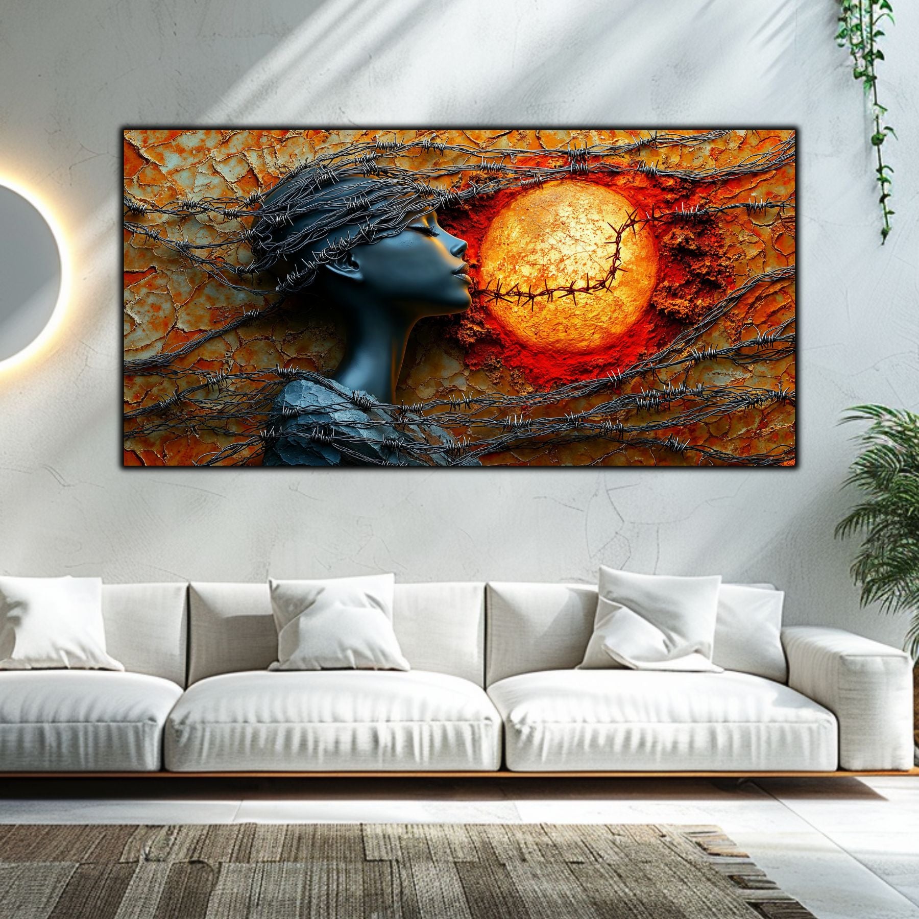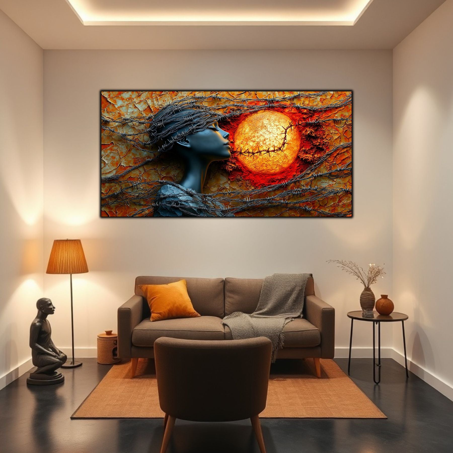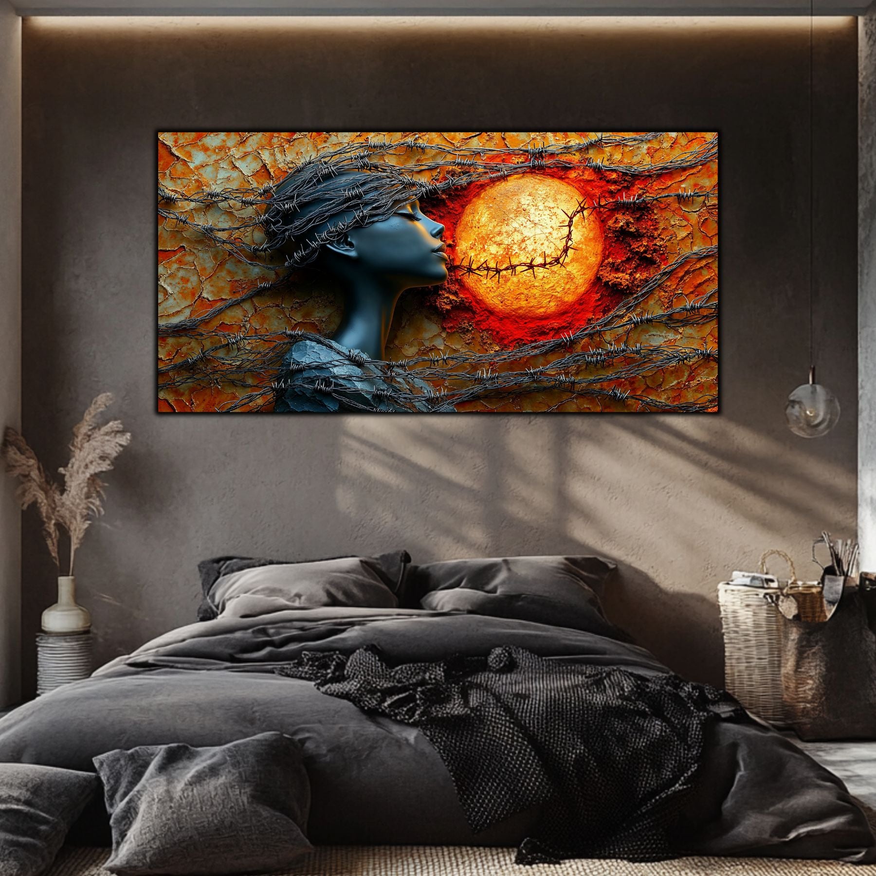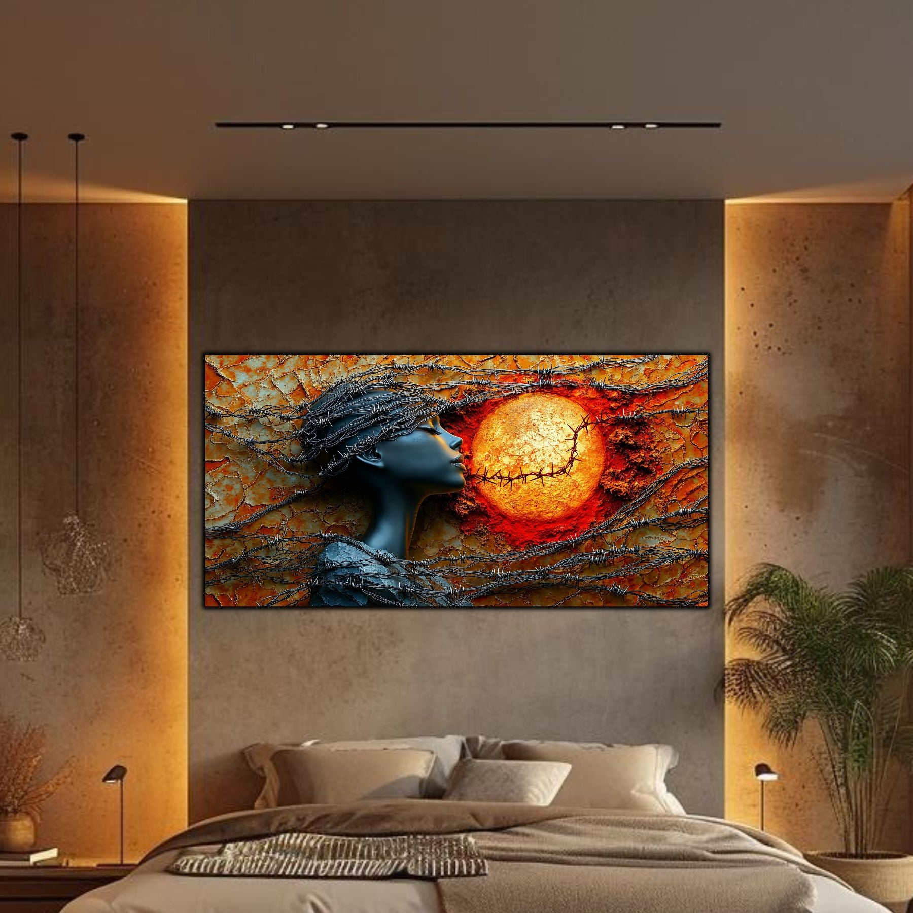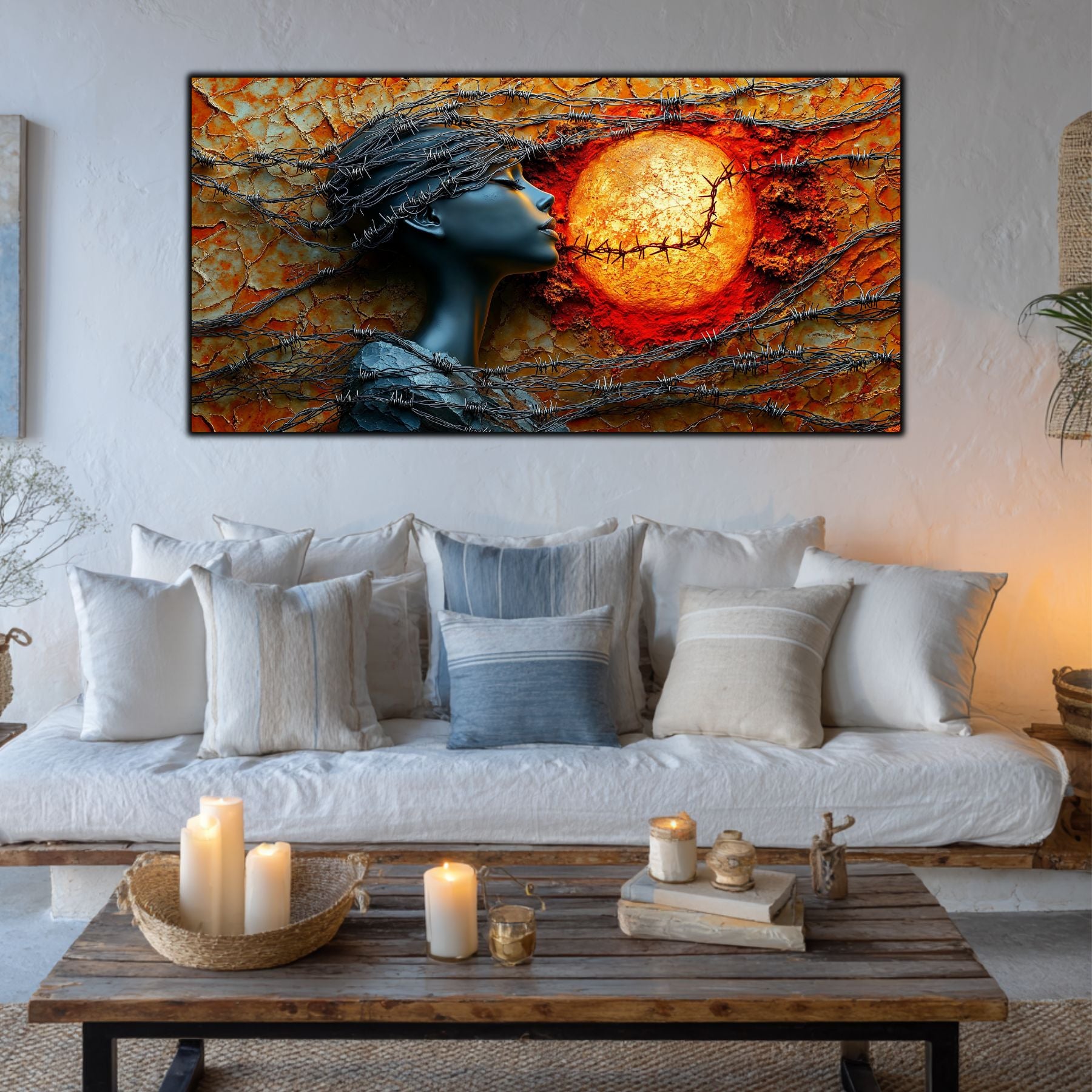 Imaginile prezentate sunt randari digitale realizate pentru a evidentia frumusetea tablourilor. Ele nu respecta proportiile reale in raport cu spatiul, fiind doar o interpretare artistica a modului in care acestea ar putea fi integrate intr-un decor. Va invit sa le „probati” mental pe peretii casei voastre si sa descoperiti cum isi gasesc locul in realitate.
