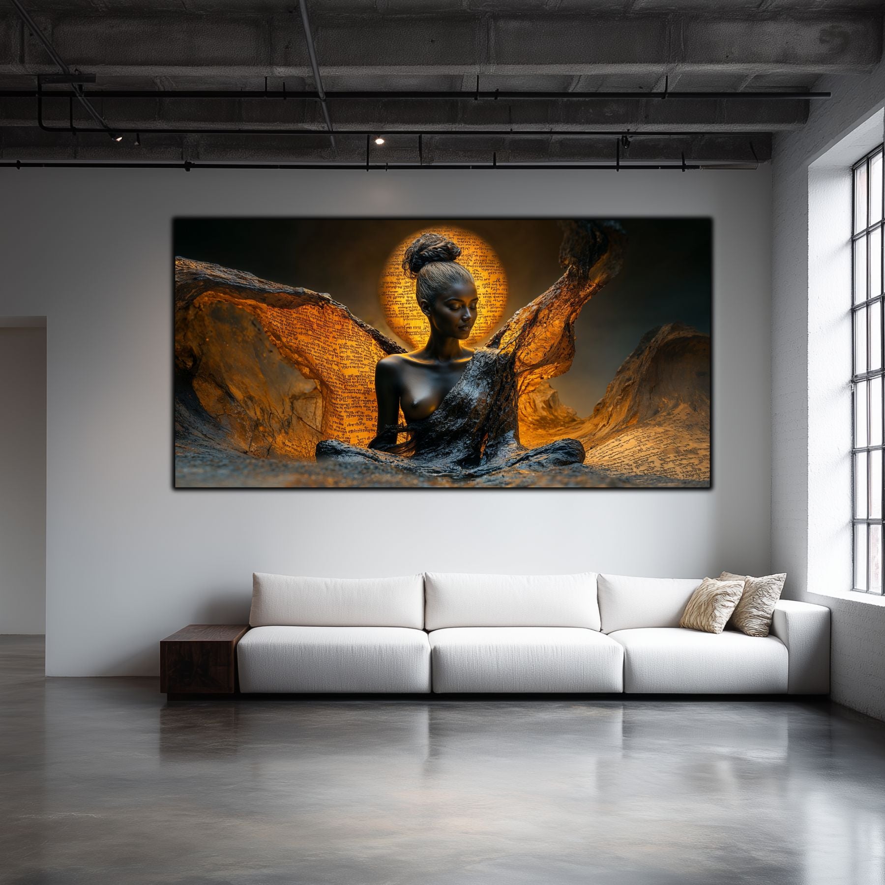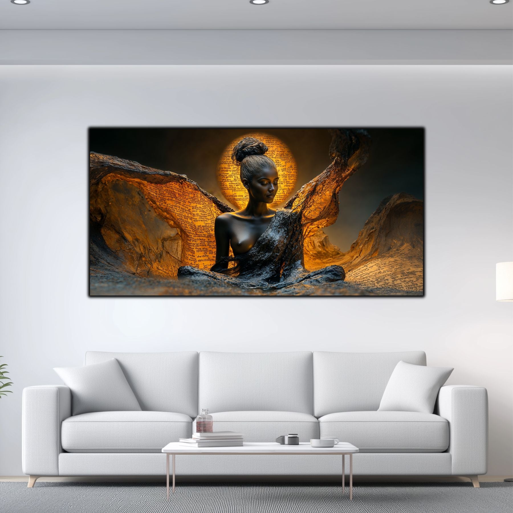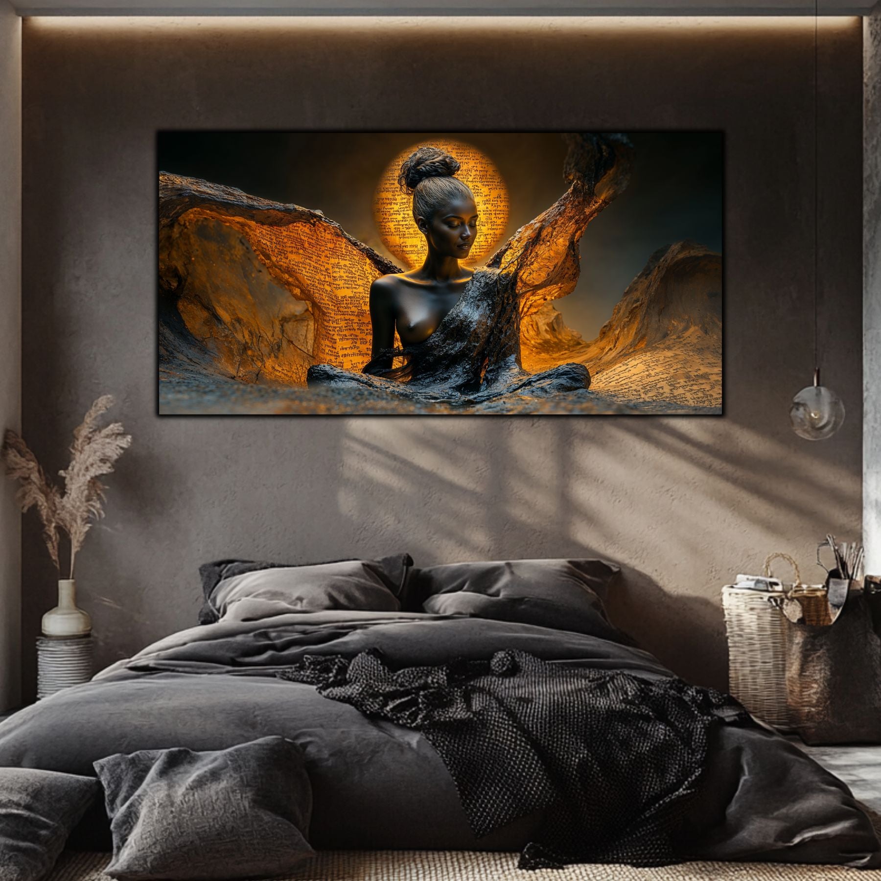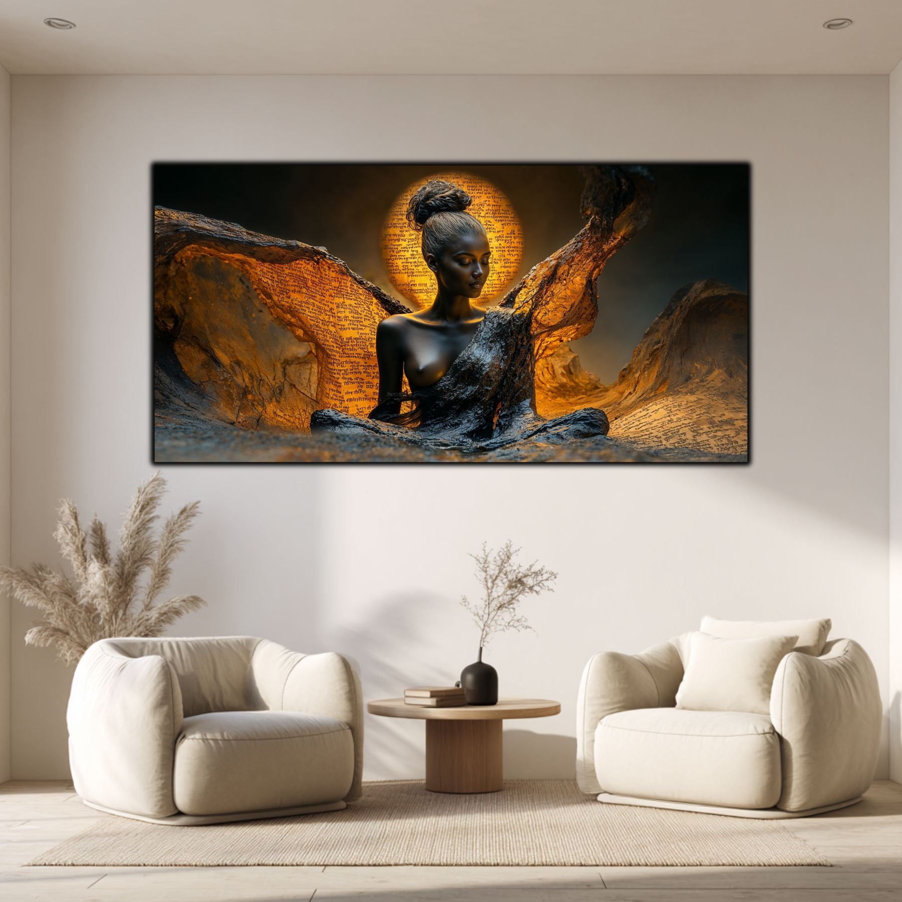 Imaginile prezentate sunt randari digitale realizate pentru a evidentia frumusetea tablourilor. Ele nu respecta proportiile reale in raport cu spatiul, fiind doar o interpretare artistica a modului in care acestea ar putea fi integrate intr-un decor. Va invit sa le „probati” mental pe peretii casei voastre si sa descoperiti cum isi gasesc locul in realitate.